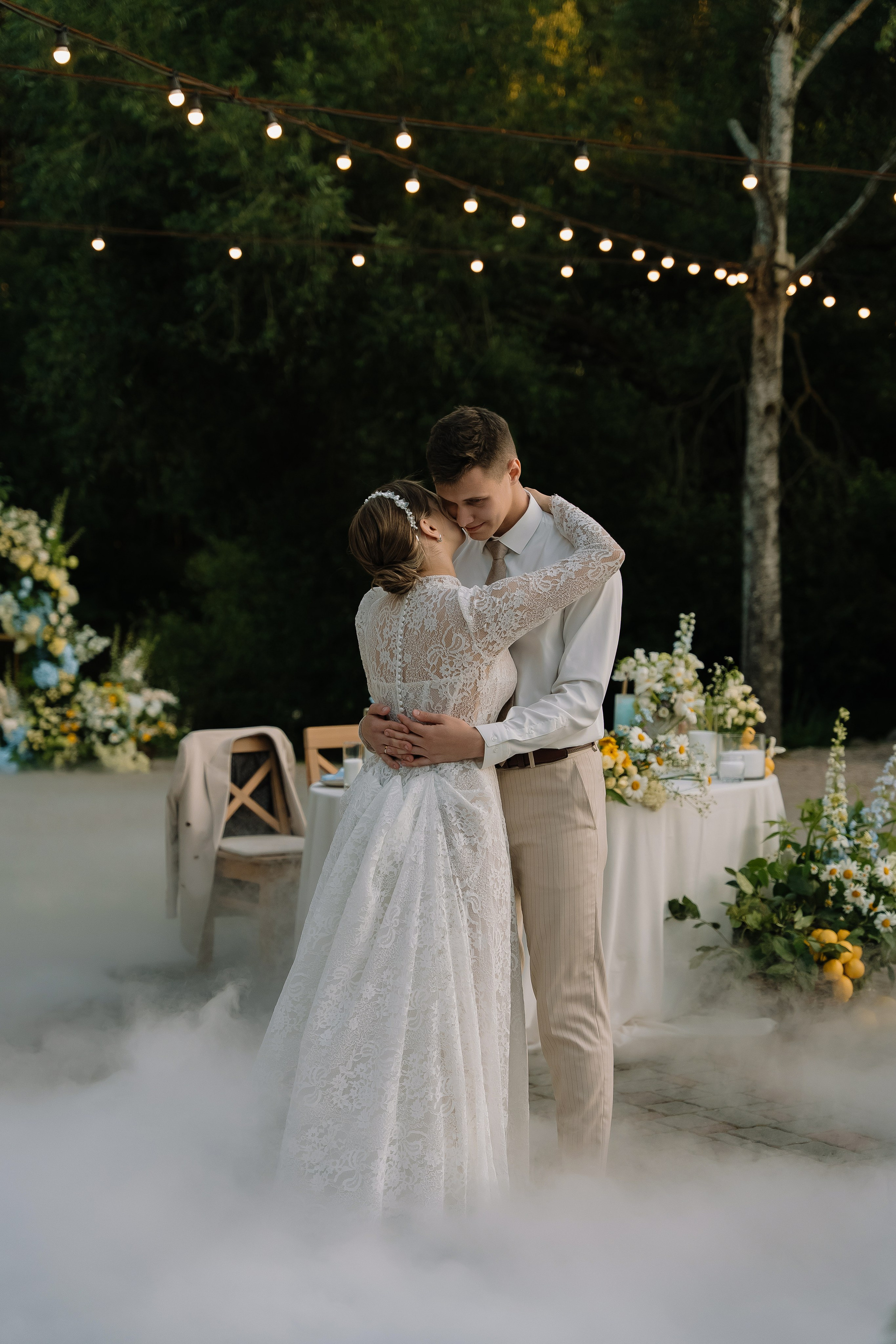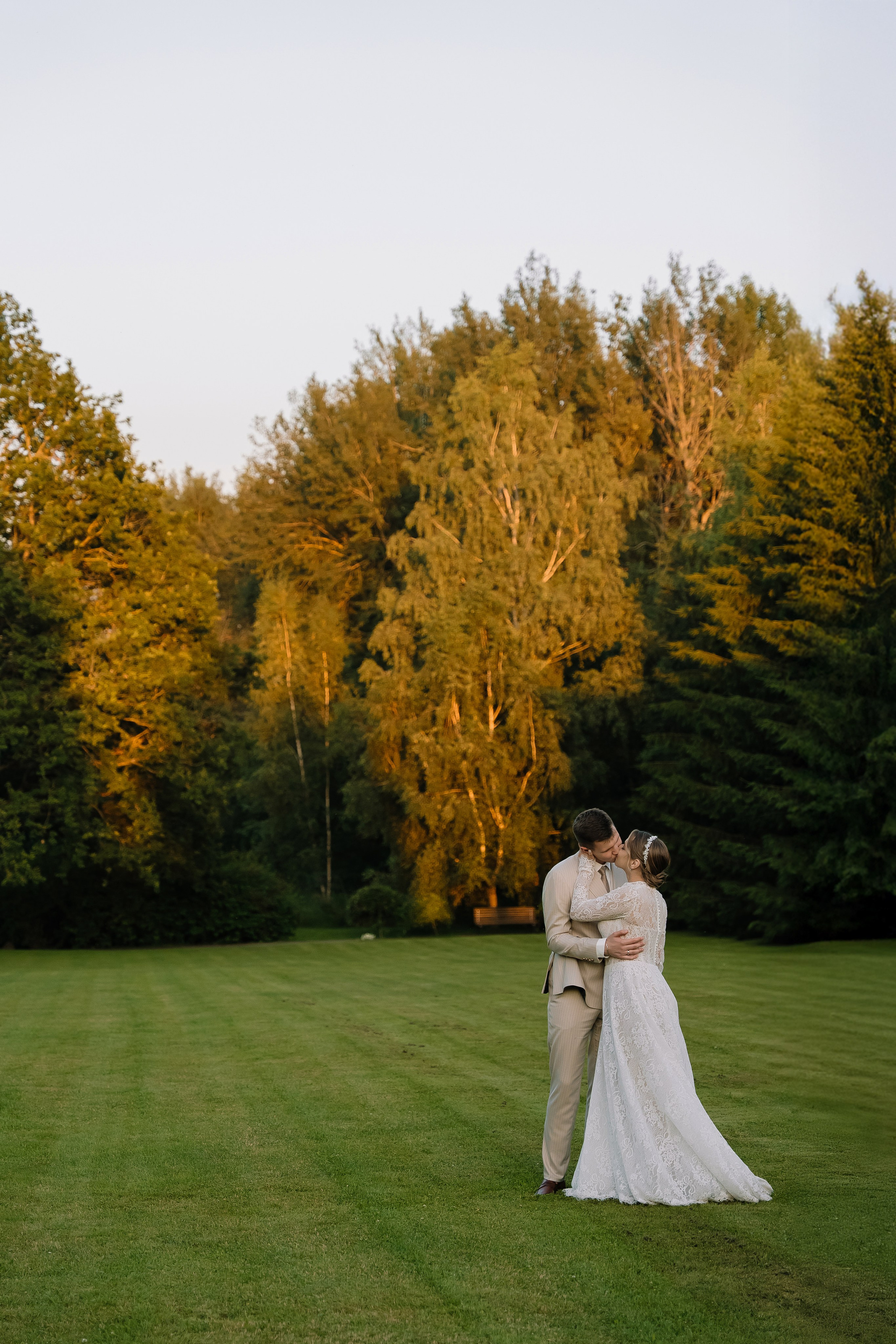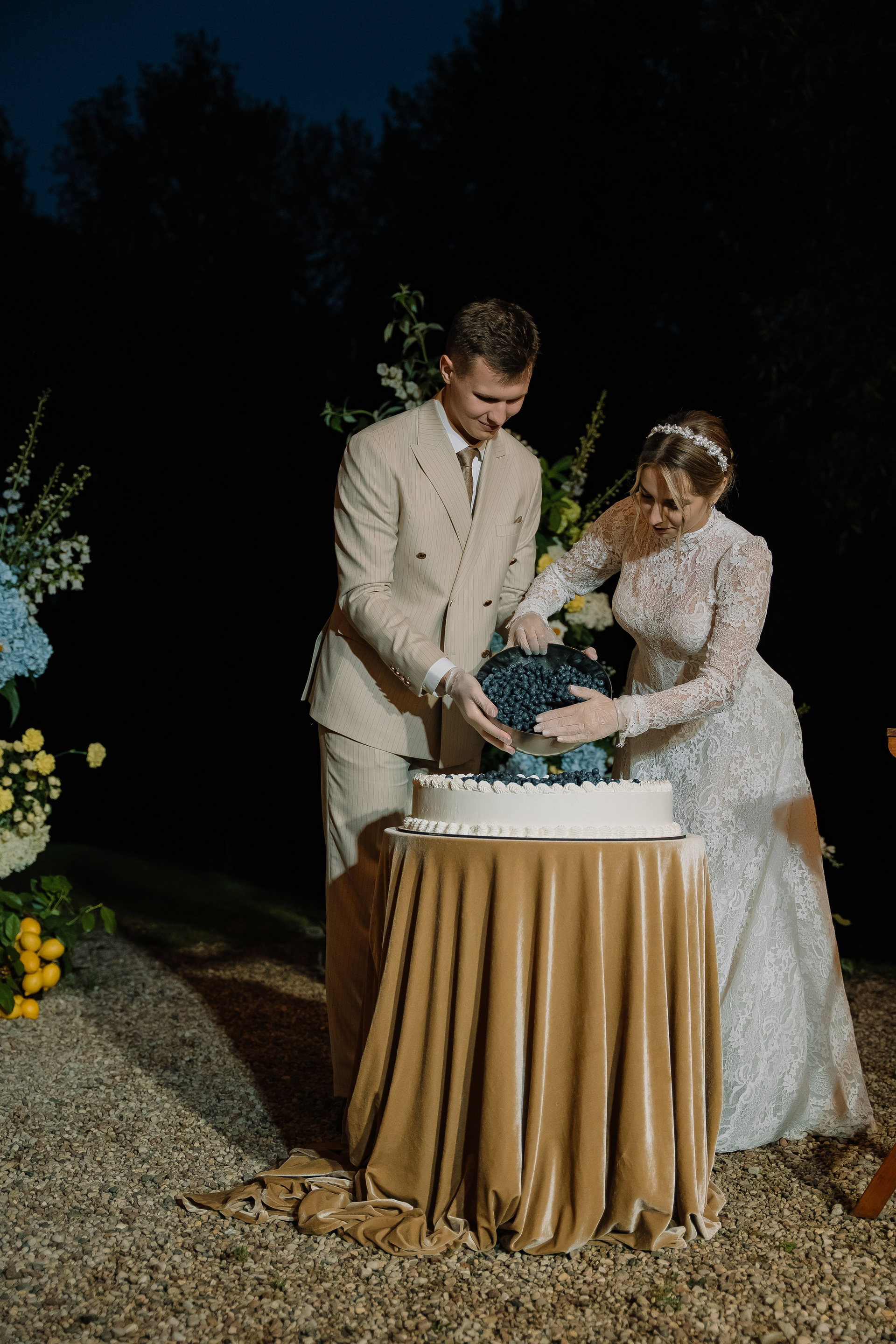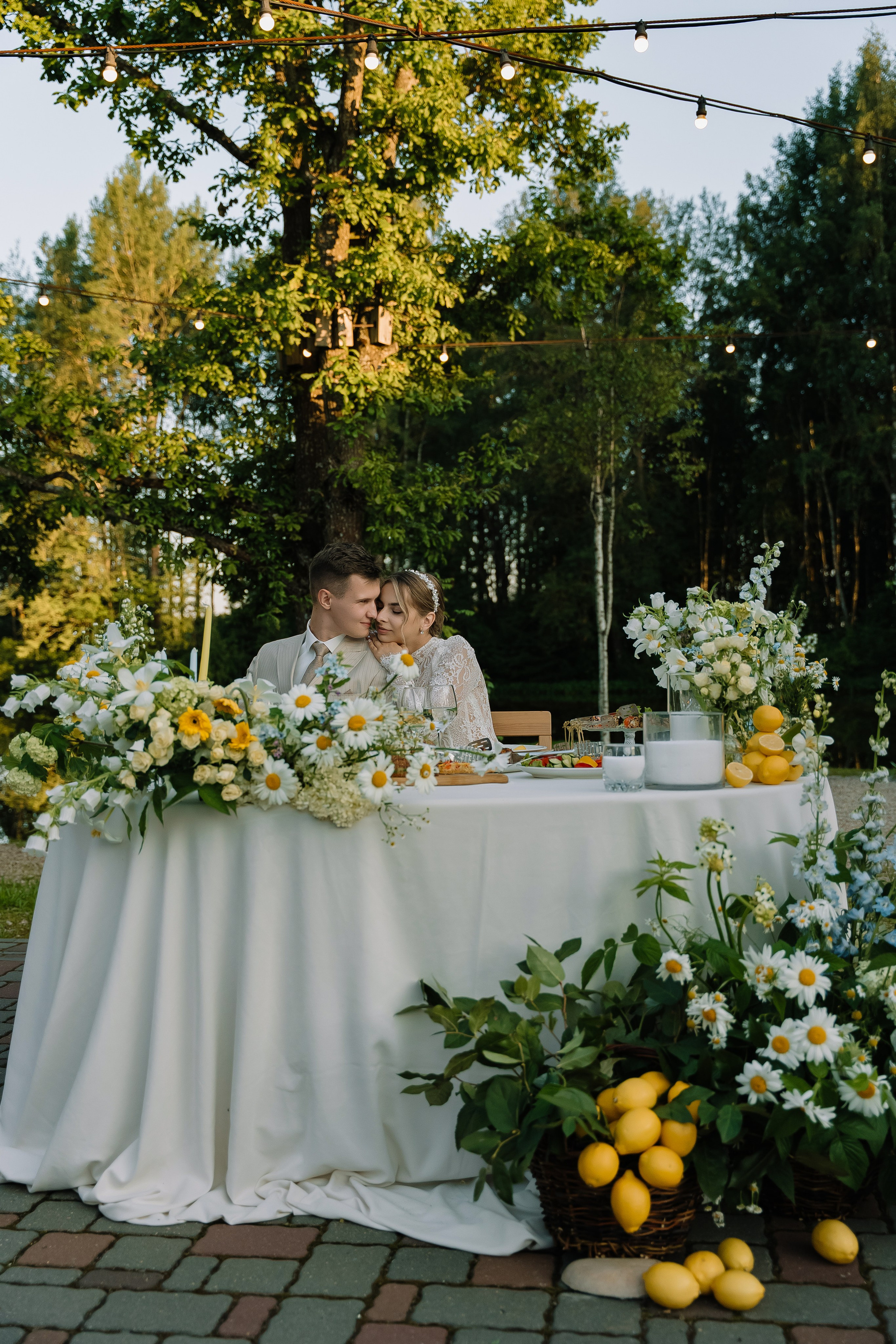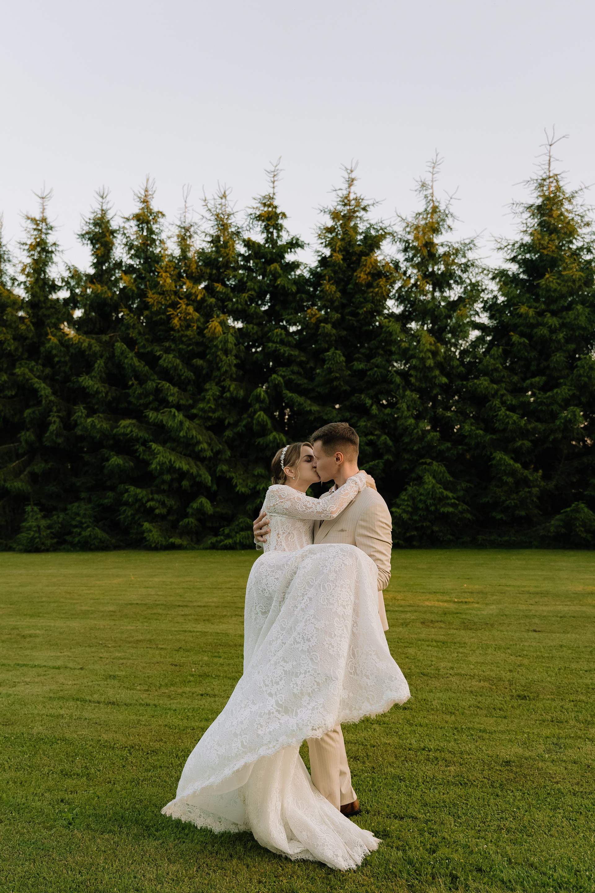 Свадьба под открытым небом в середине июля — это всегда одновременно романтично и рискованно. Перед торжеством пара переживали за погоду: неоднократно обсуждали сценарии на случай дождя или сильной жары. Однако, всё сложилось идеально.