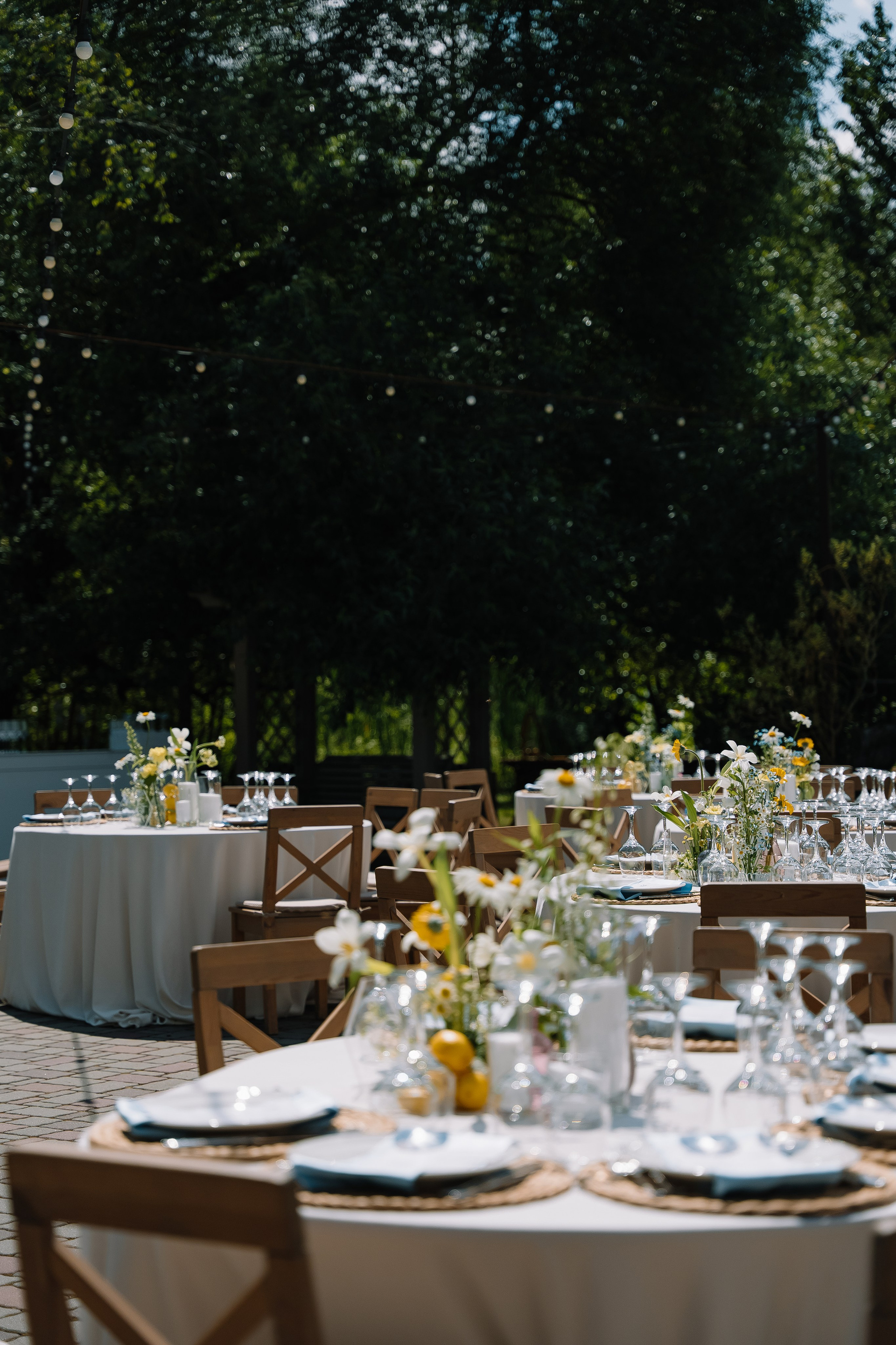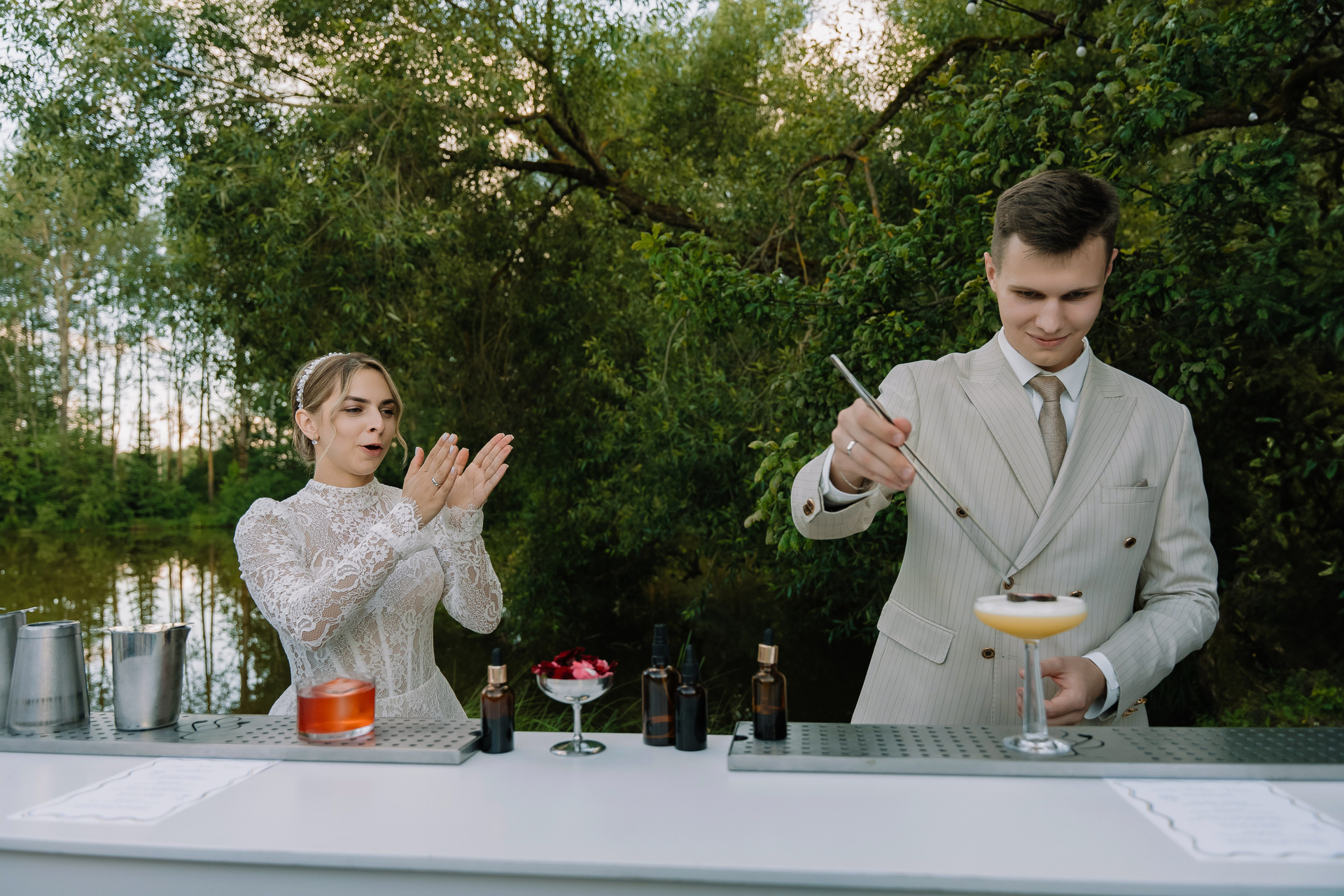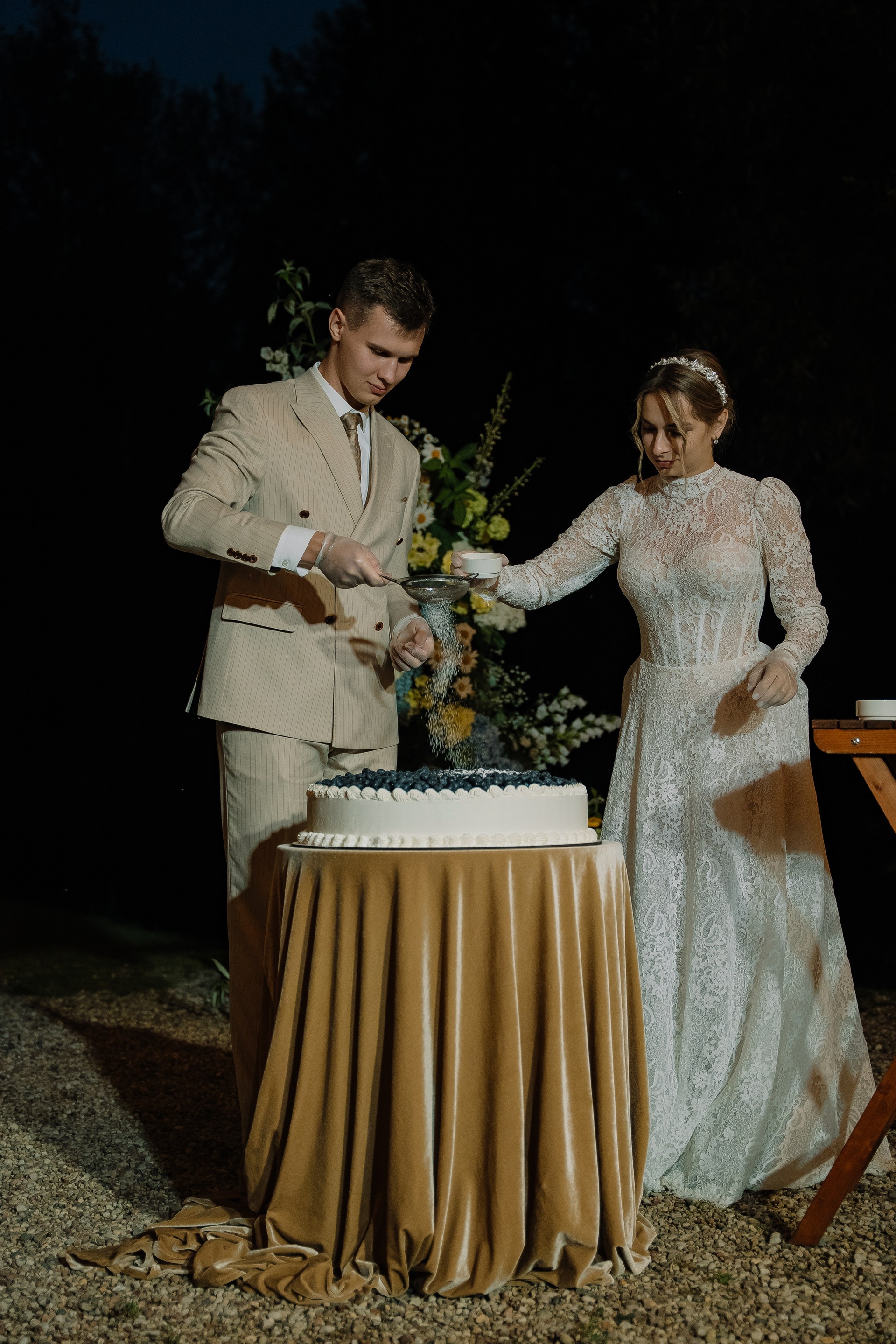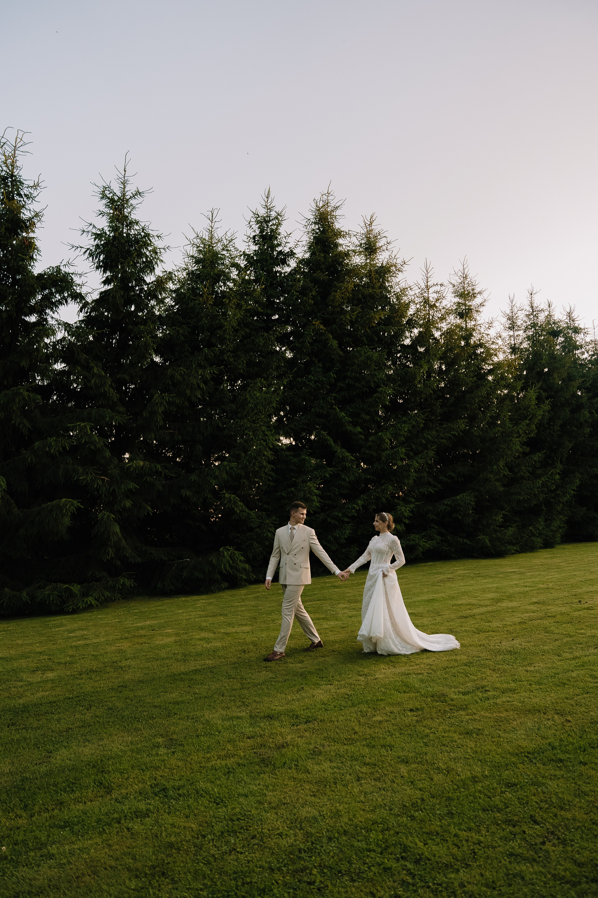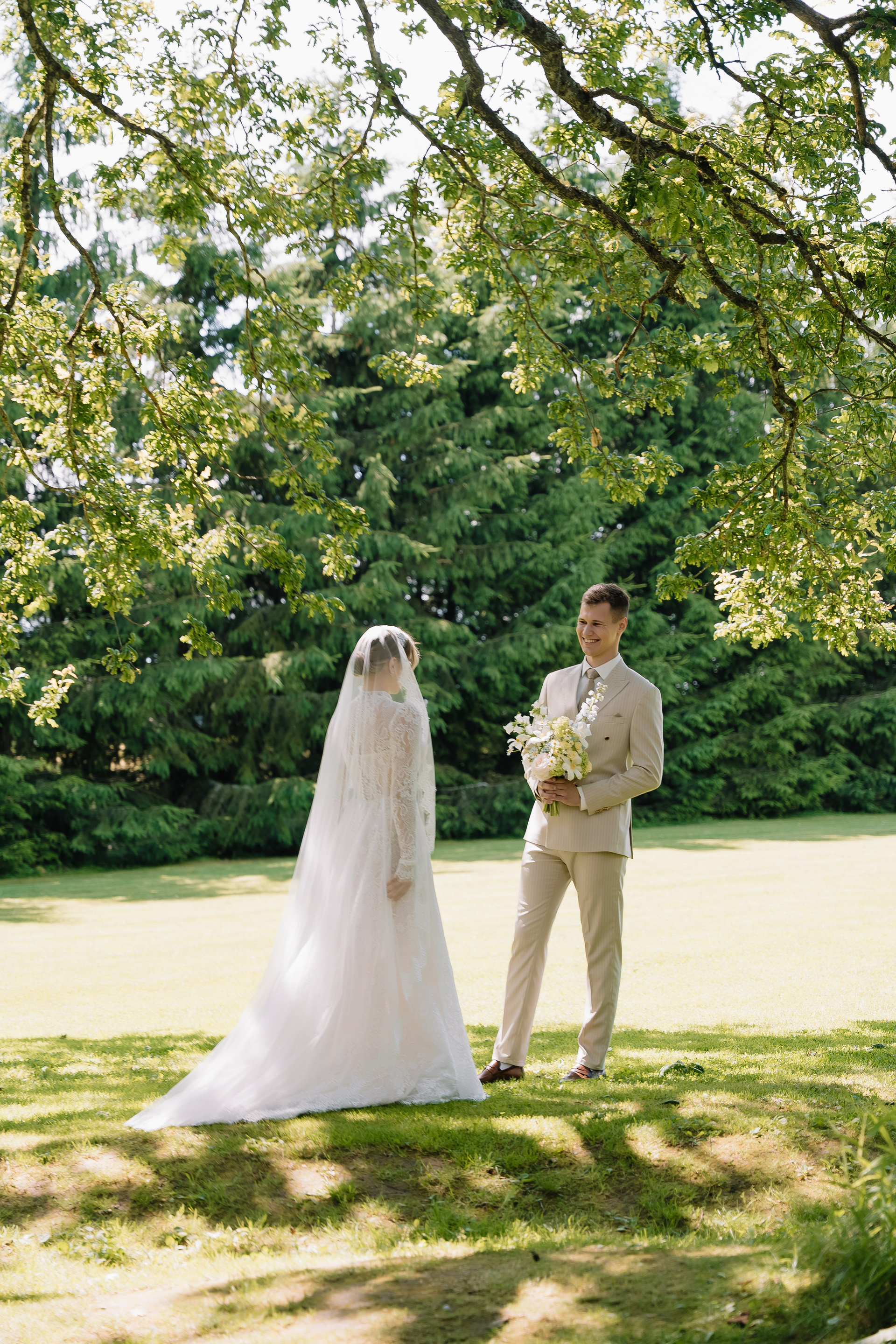 Свадьба под открытым небом в середине июля — это всегда одновременно романтично и рискованно. Перед торжеством пара переживали за погоду: неоднократно обсуждали сценарии на случай дождя или сильной жары. Однако, всё сложилось идеально.