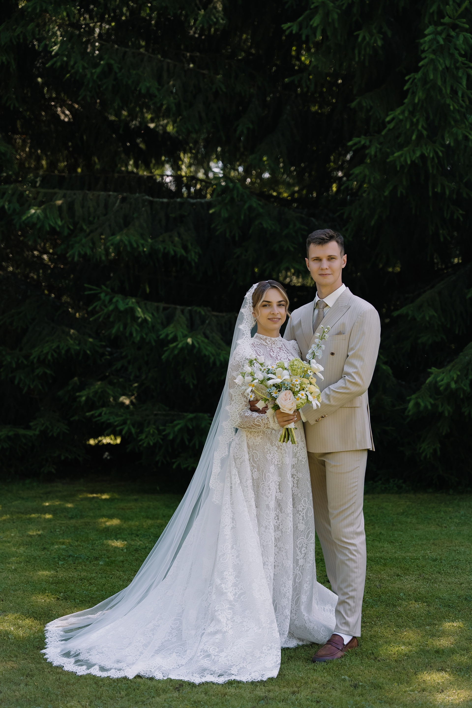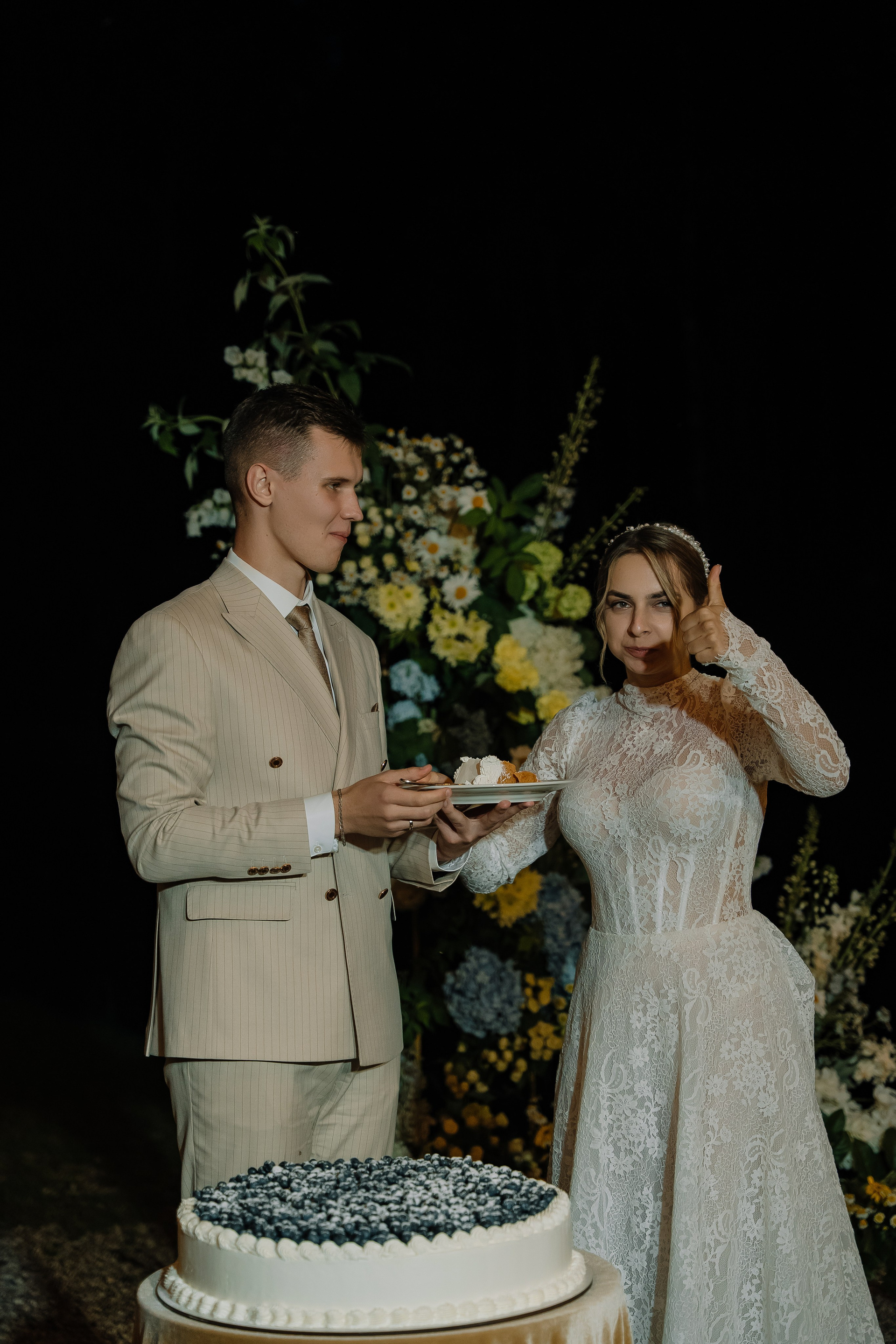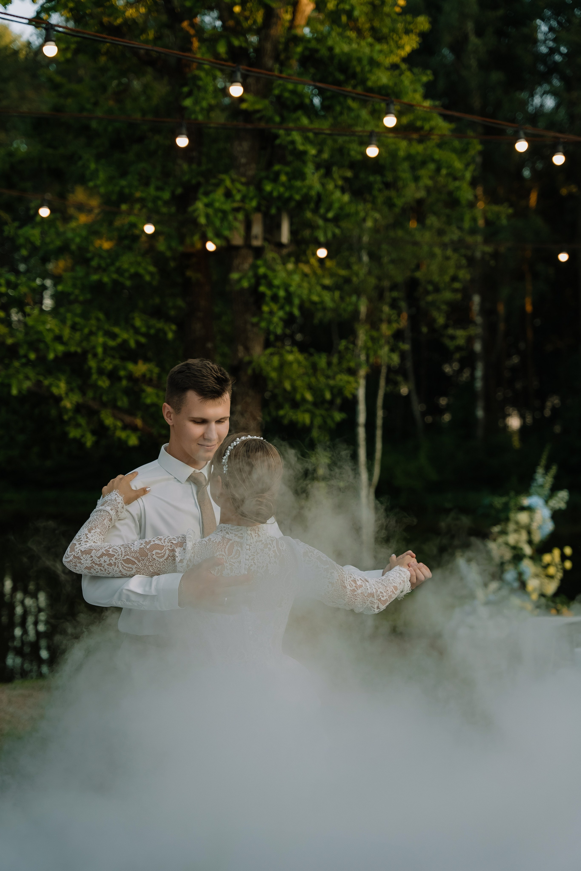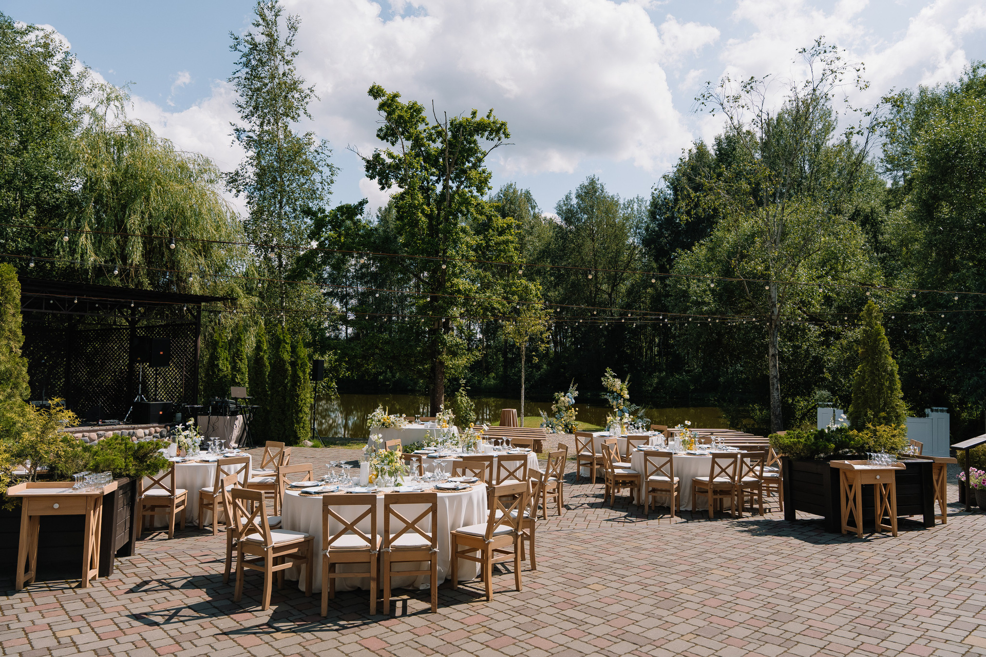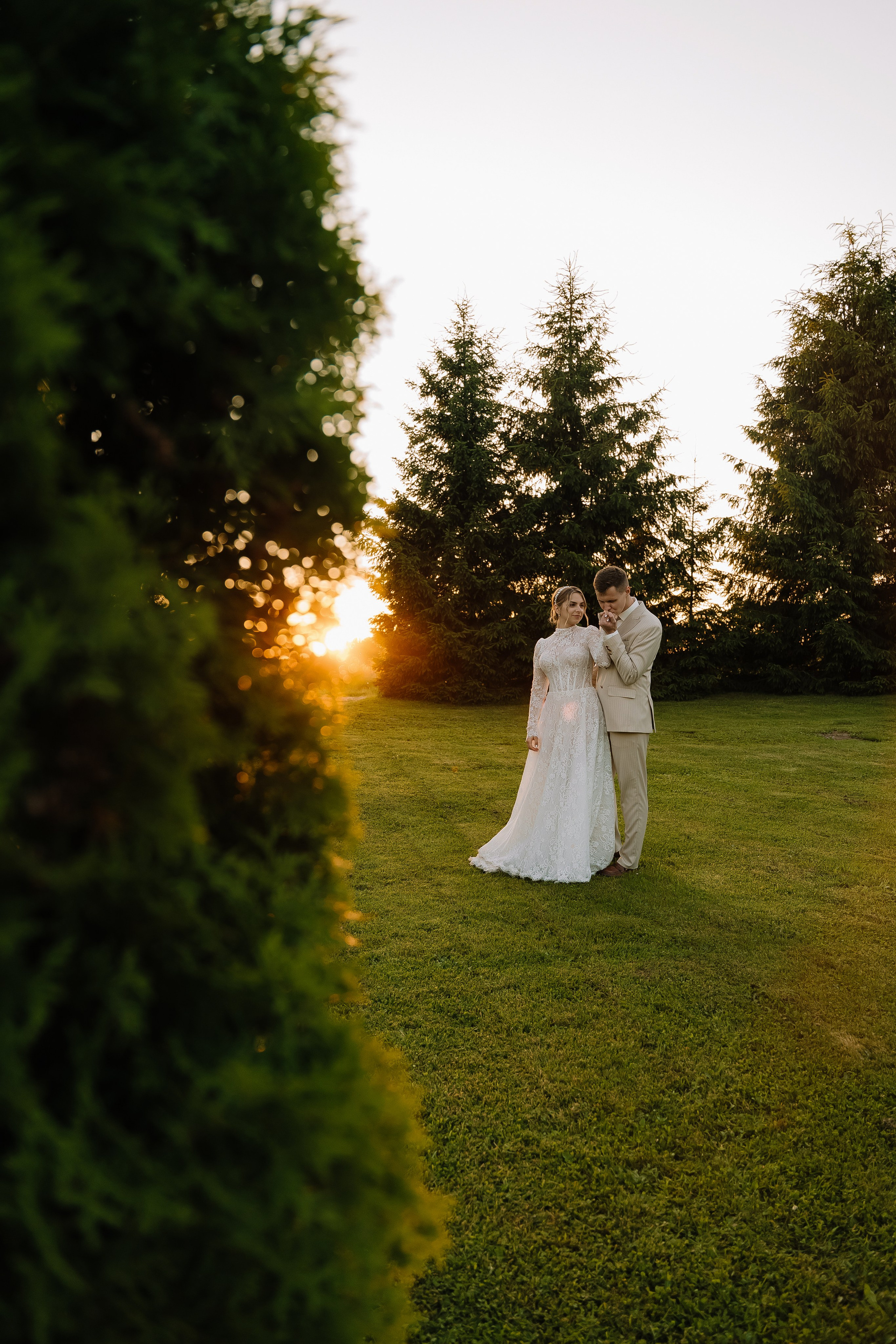 Свадьба под открытым небом в середине июля — это всегда одновременно романтично и рискованно. Перед торжеством пара переживали за погоду: неоднократно обсуждали сценарии на случай дождя или сильной жары. Однако, всё сложилось идеально.