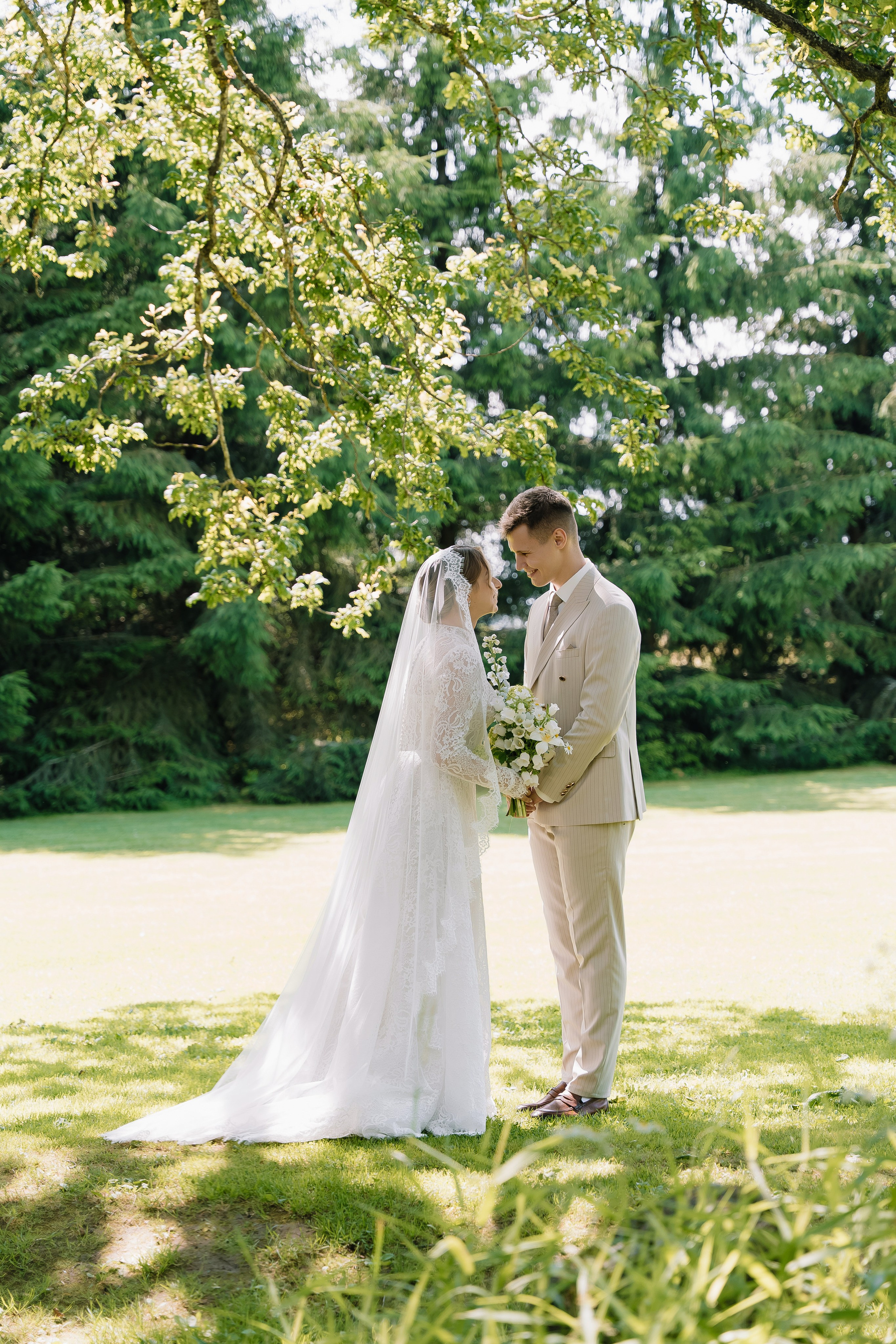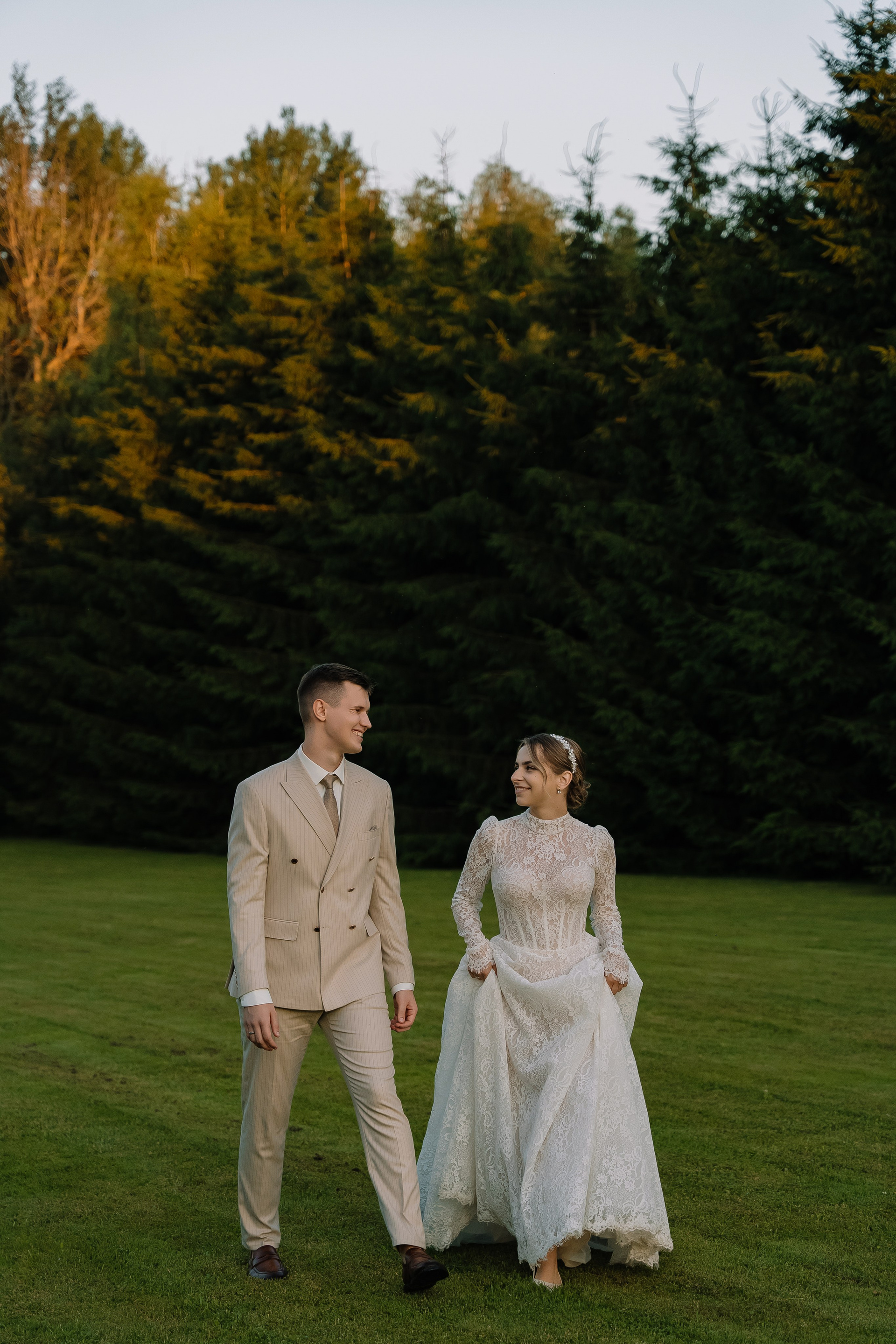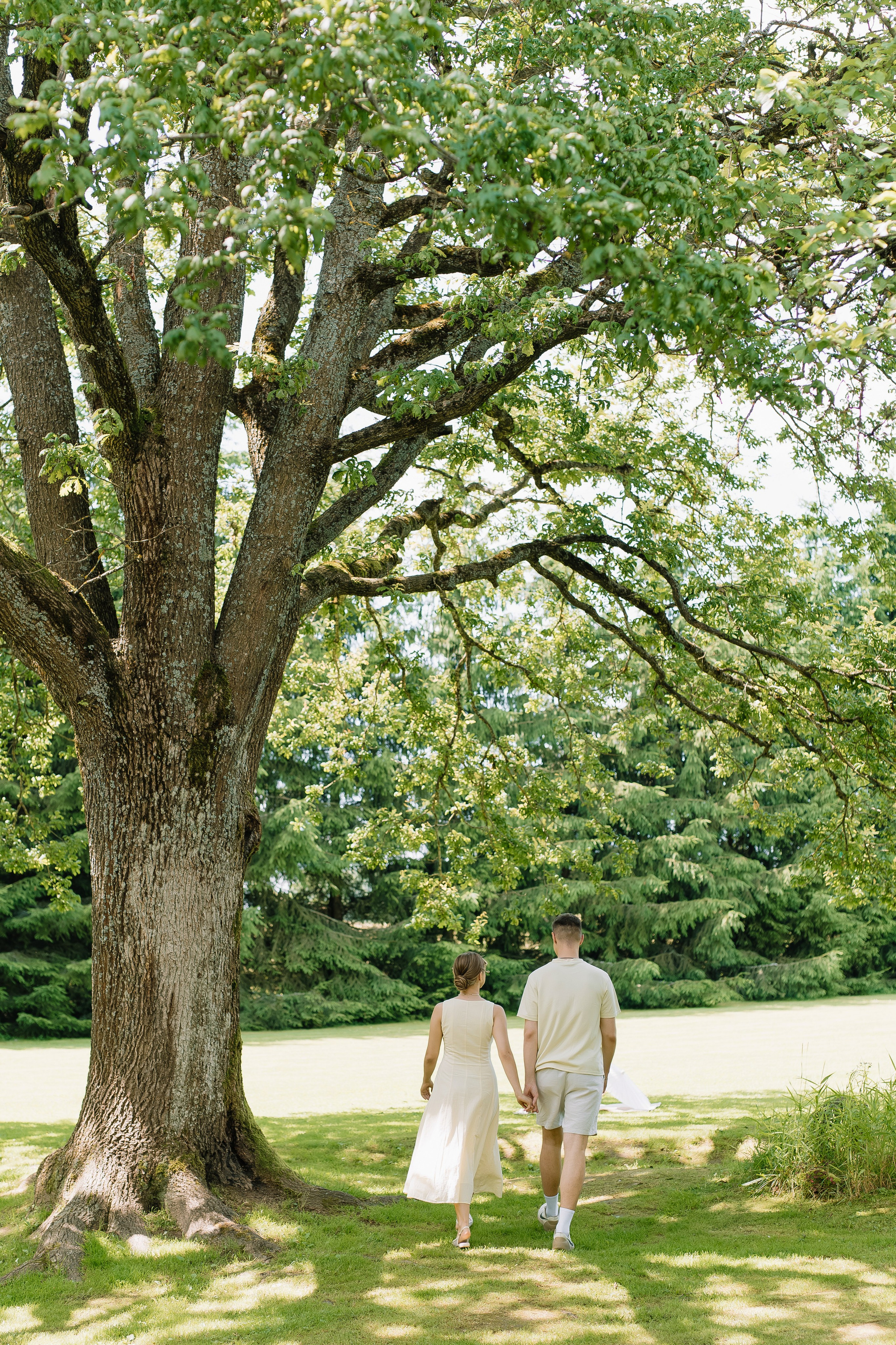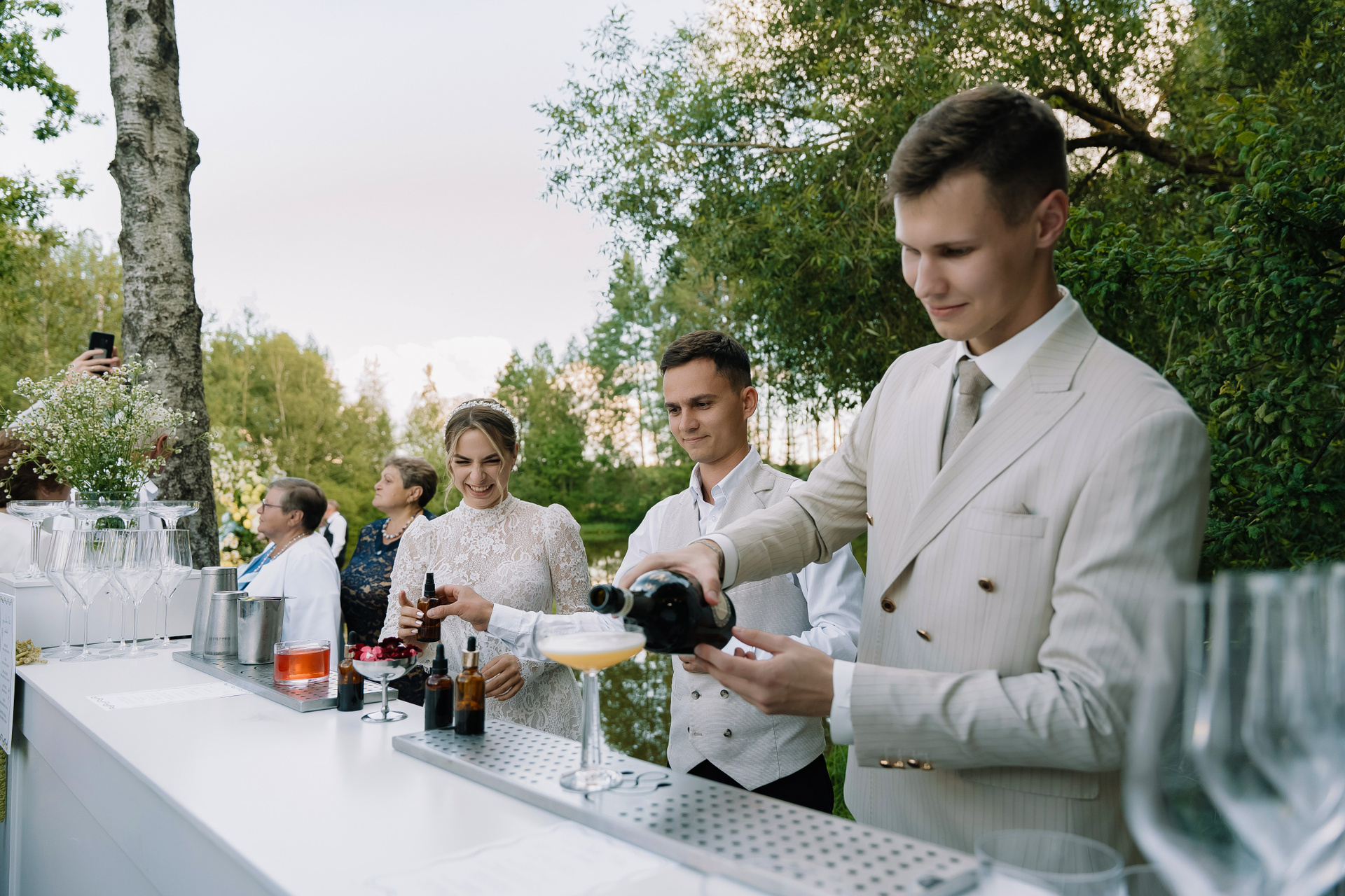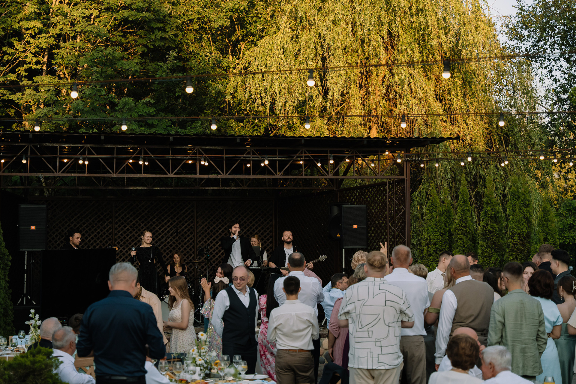 Свадьба под открытым небом в середине июля — это всегда одновременно романтично и рискованно. Перед торжеством пара переживали за погоду: неоднократно обсуждали сценарии на случай дождя или сильной жары. Однако, всё сложилось идеально.