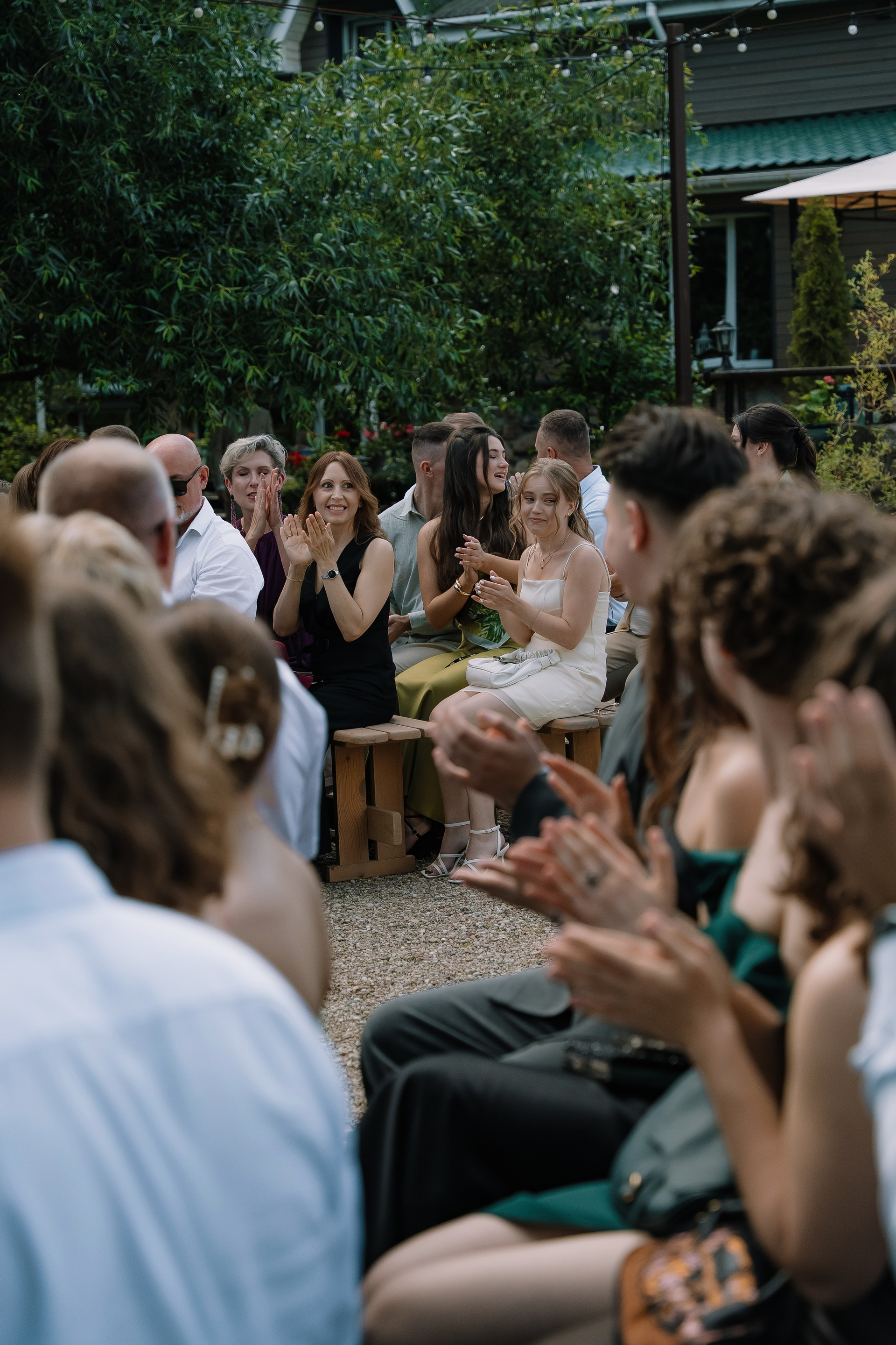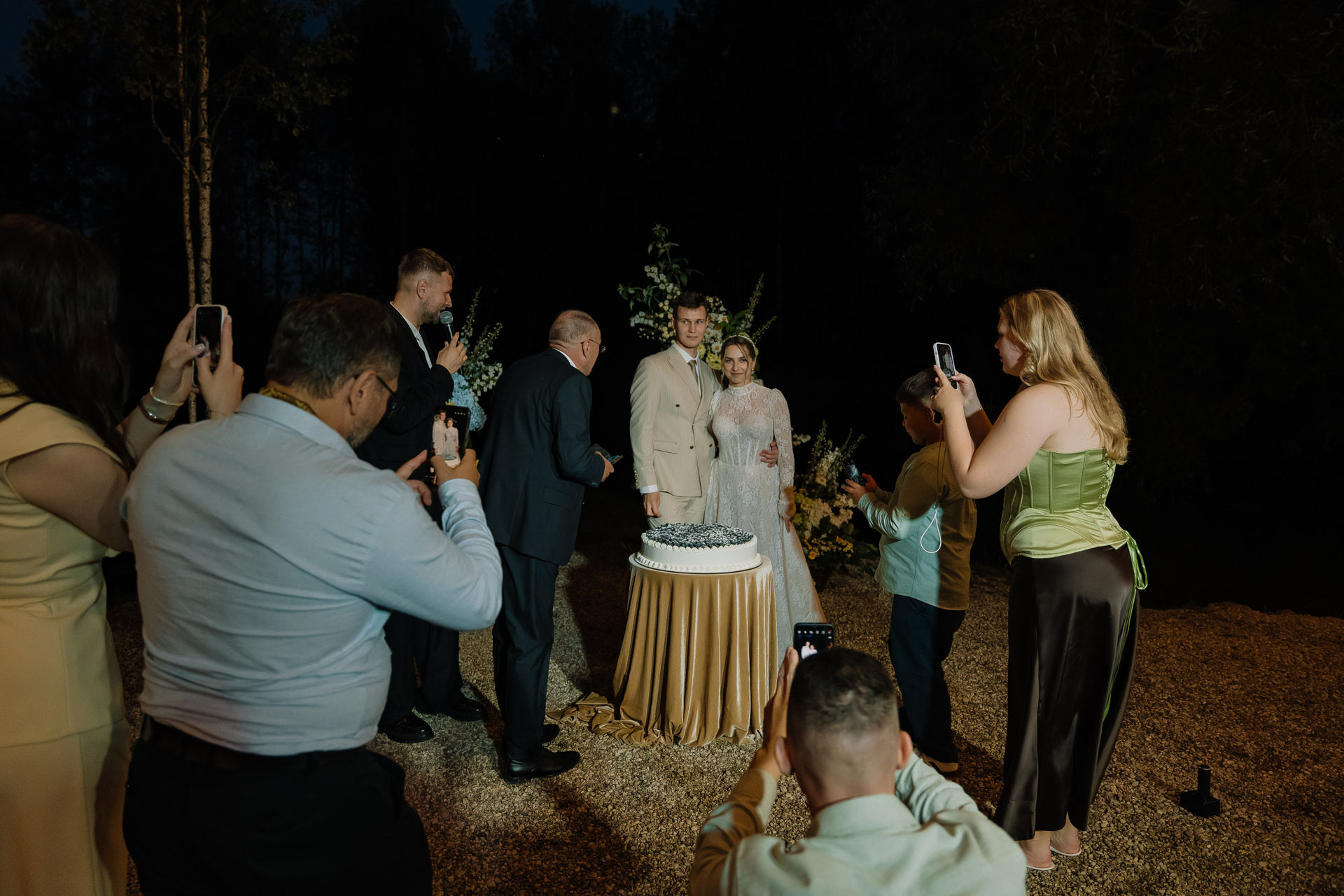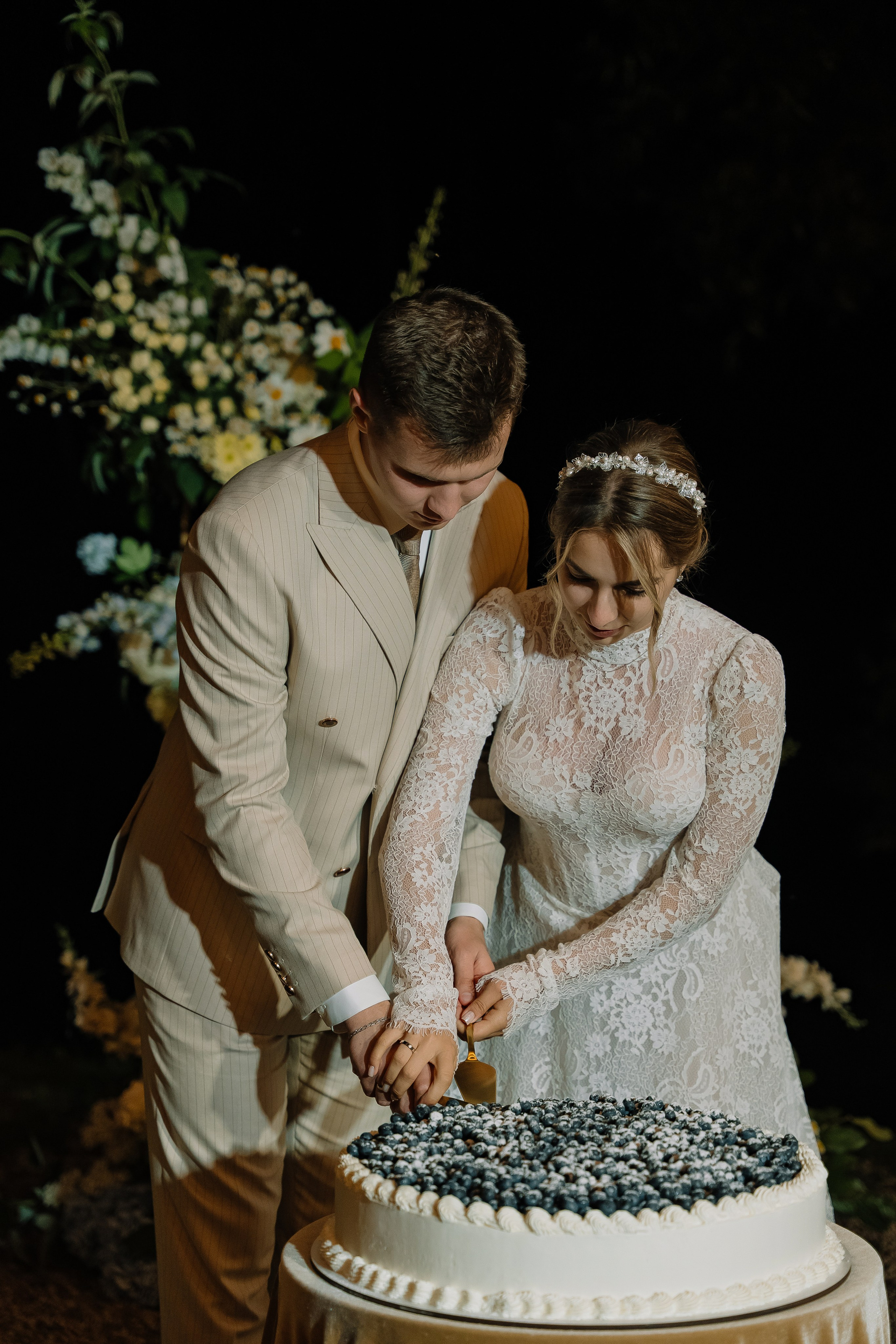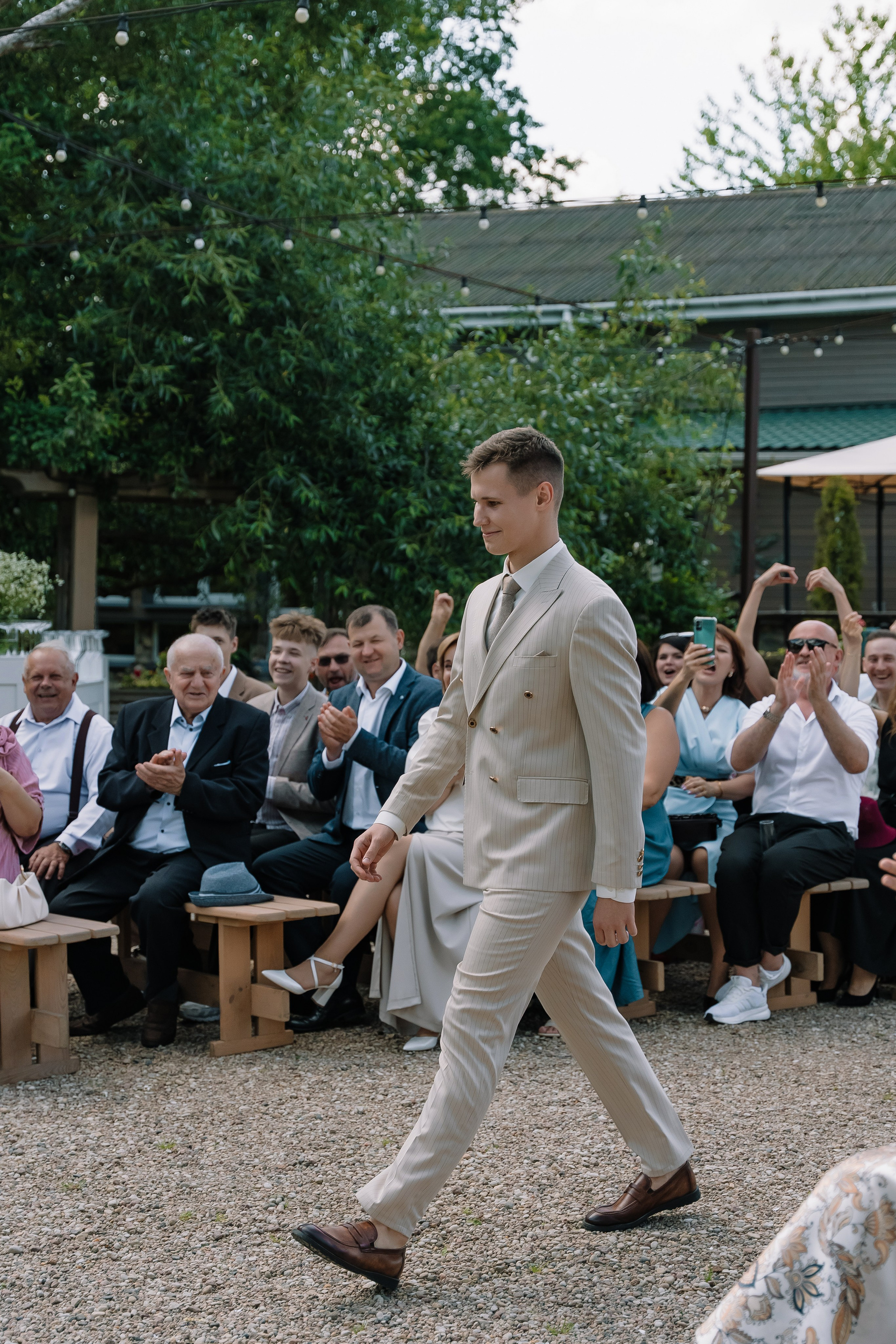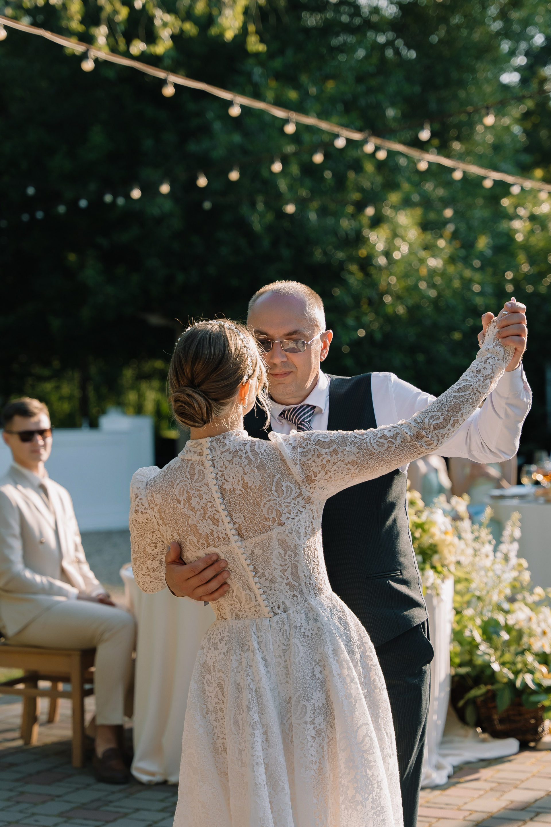 Свадьба под открытым небом в середине июля — это всегда одновременно романтично и рискованно. Перед торжеством пара переживали за погоду: неоднократно обсуждали сценарии на случай дождя или сильной жары. Однако, всё сложилось идеально.