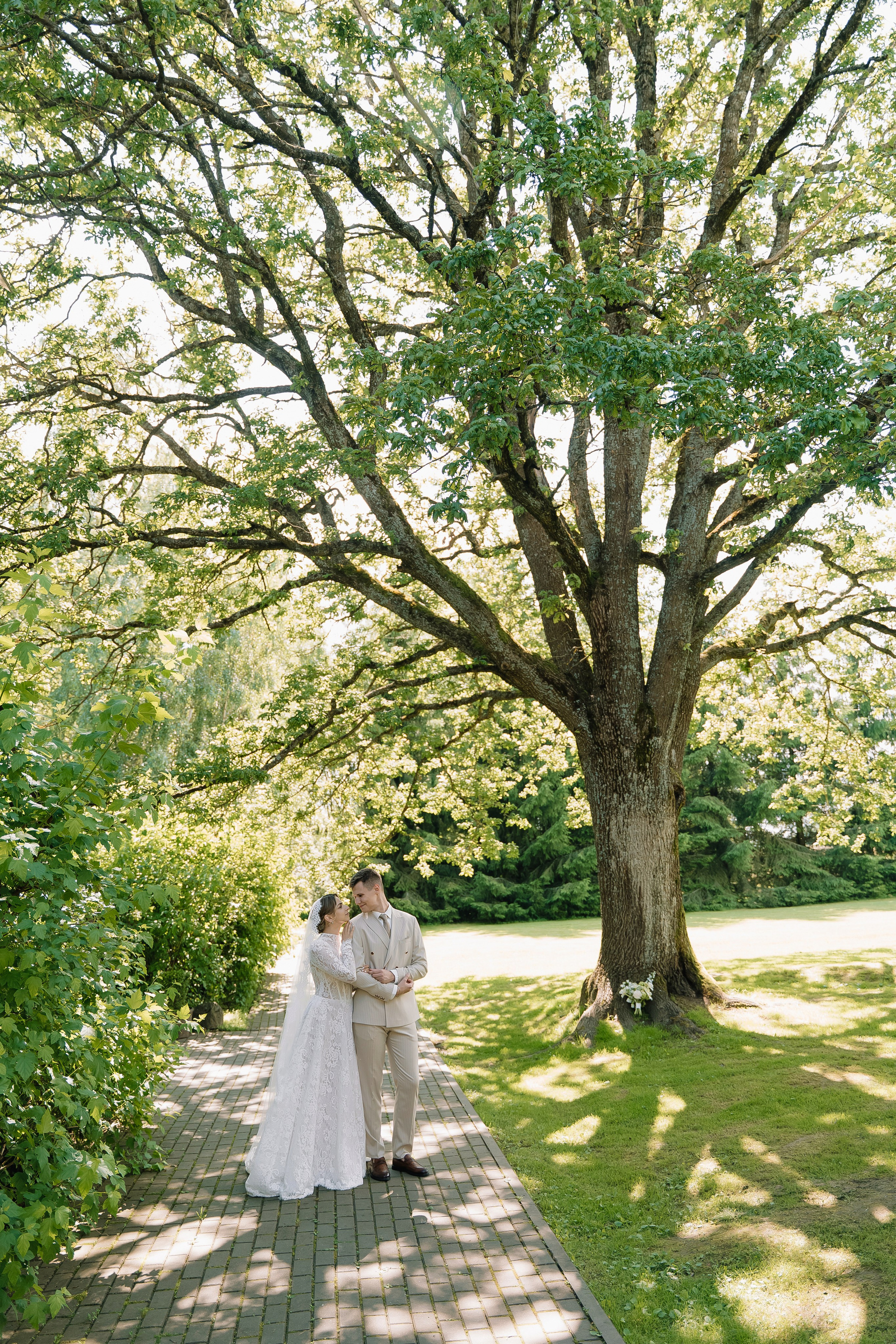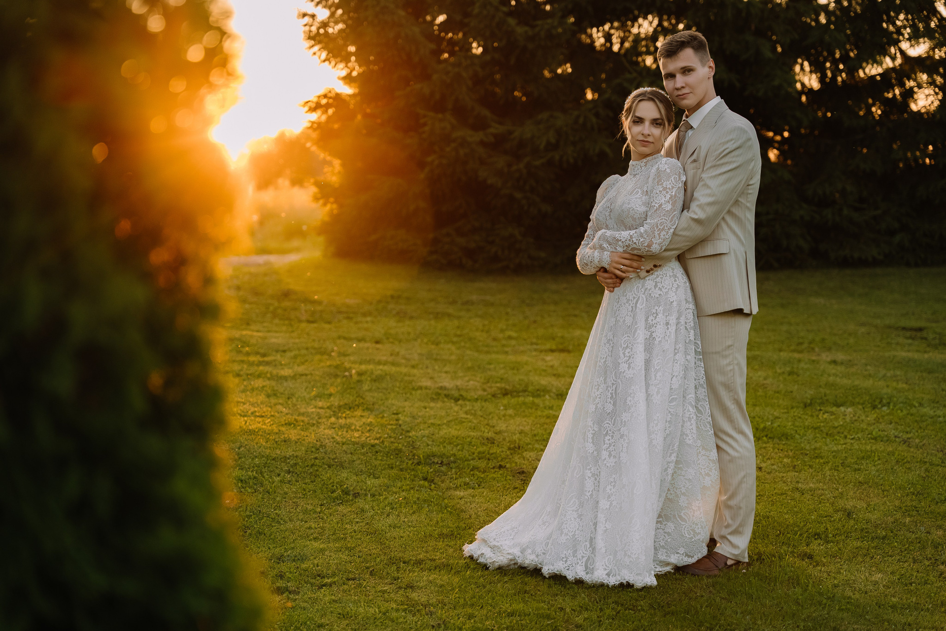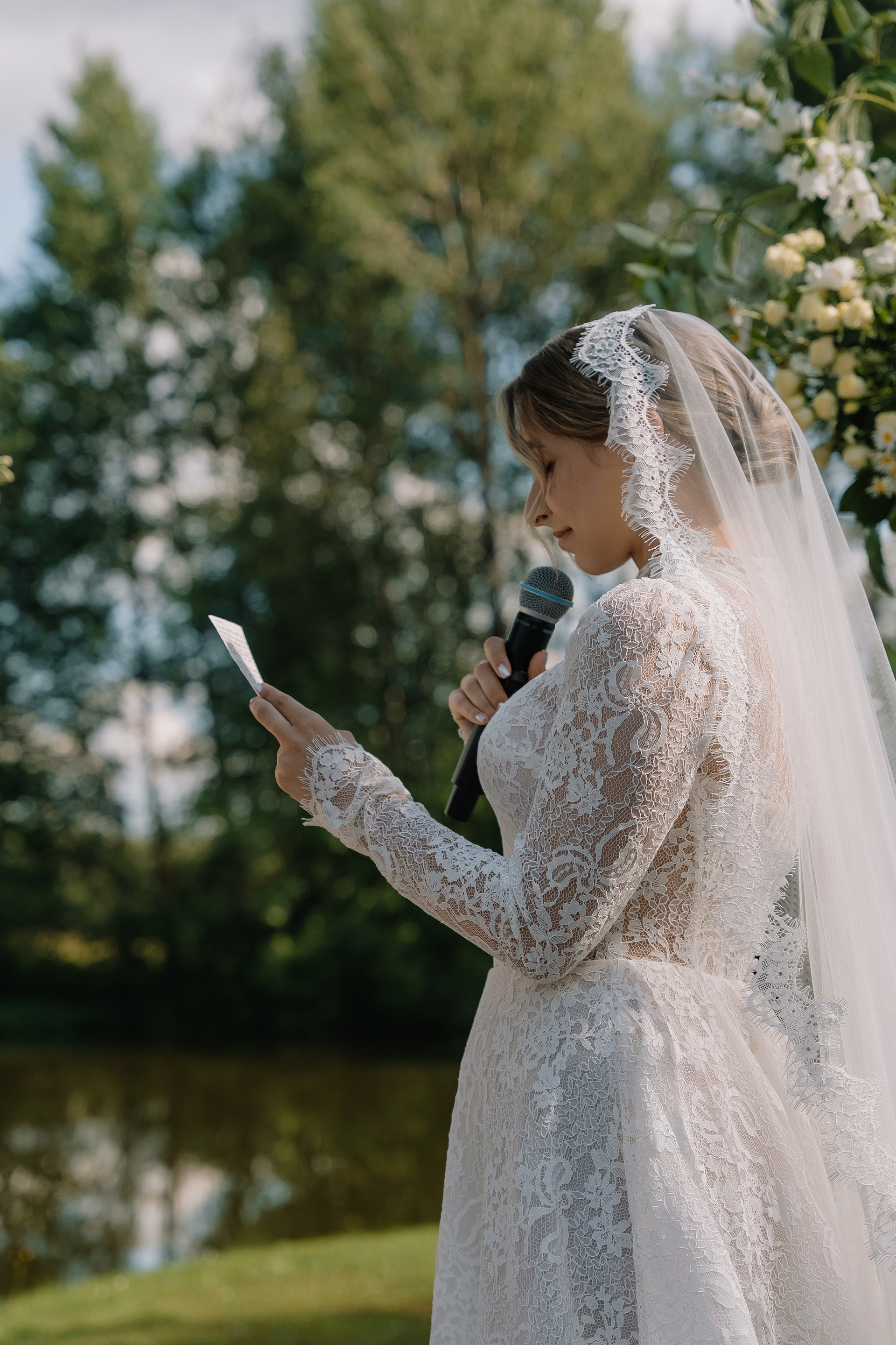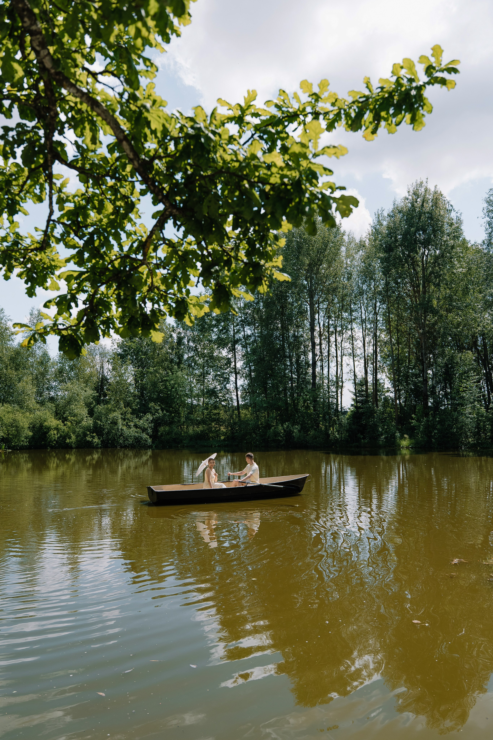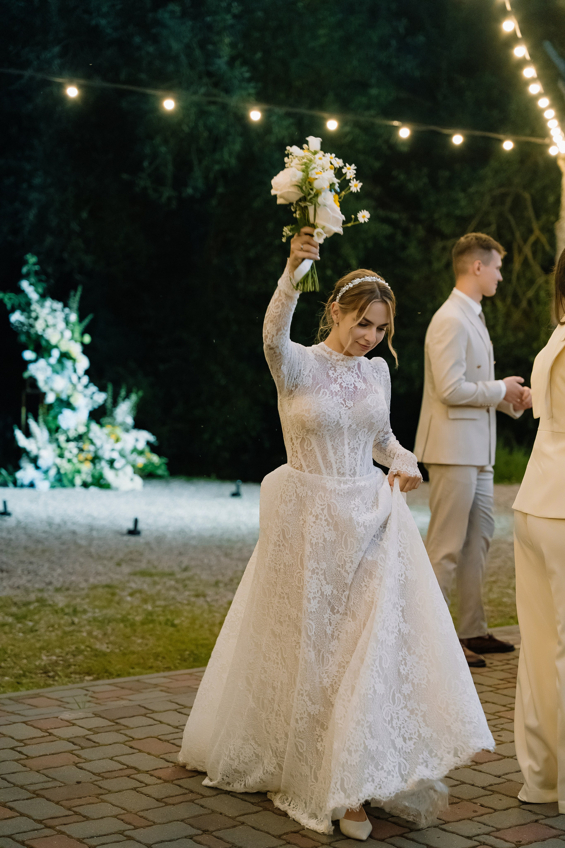 Свадьба под открытым небом в середине июля — это всегда одновременно романтично и рискованно. Перед торжеством пара переживали за погоду: неоднократно обсуждали сценарии на случай дождя или сильной жары. Однако, всё сложилось идеально.
