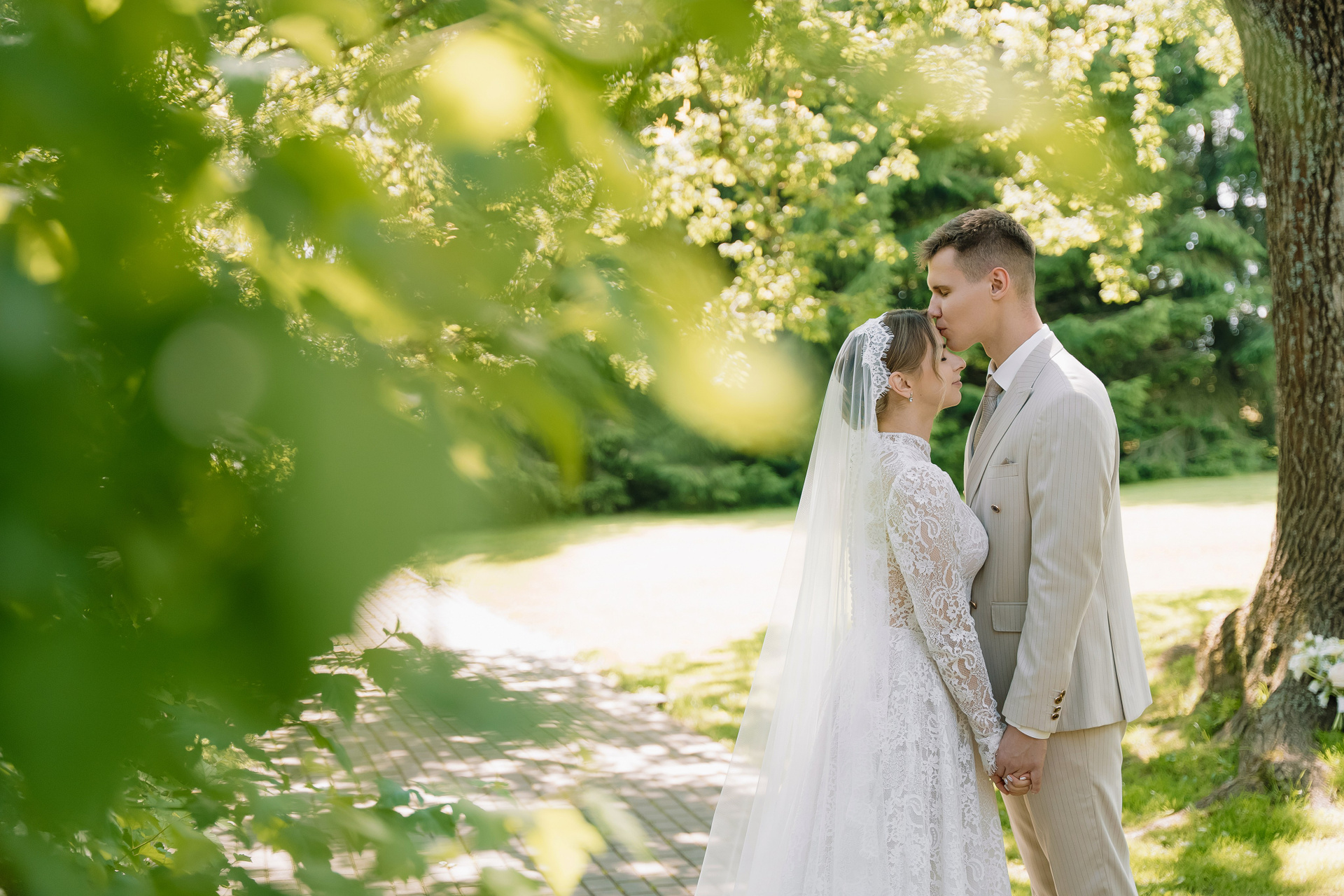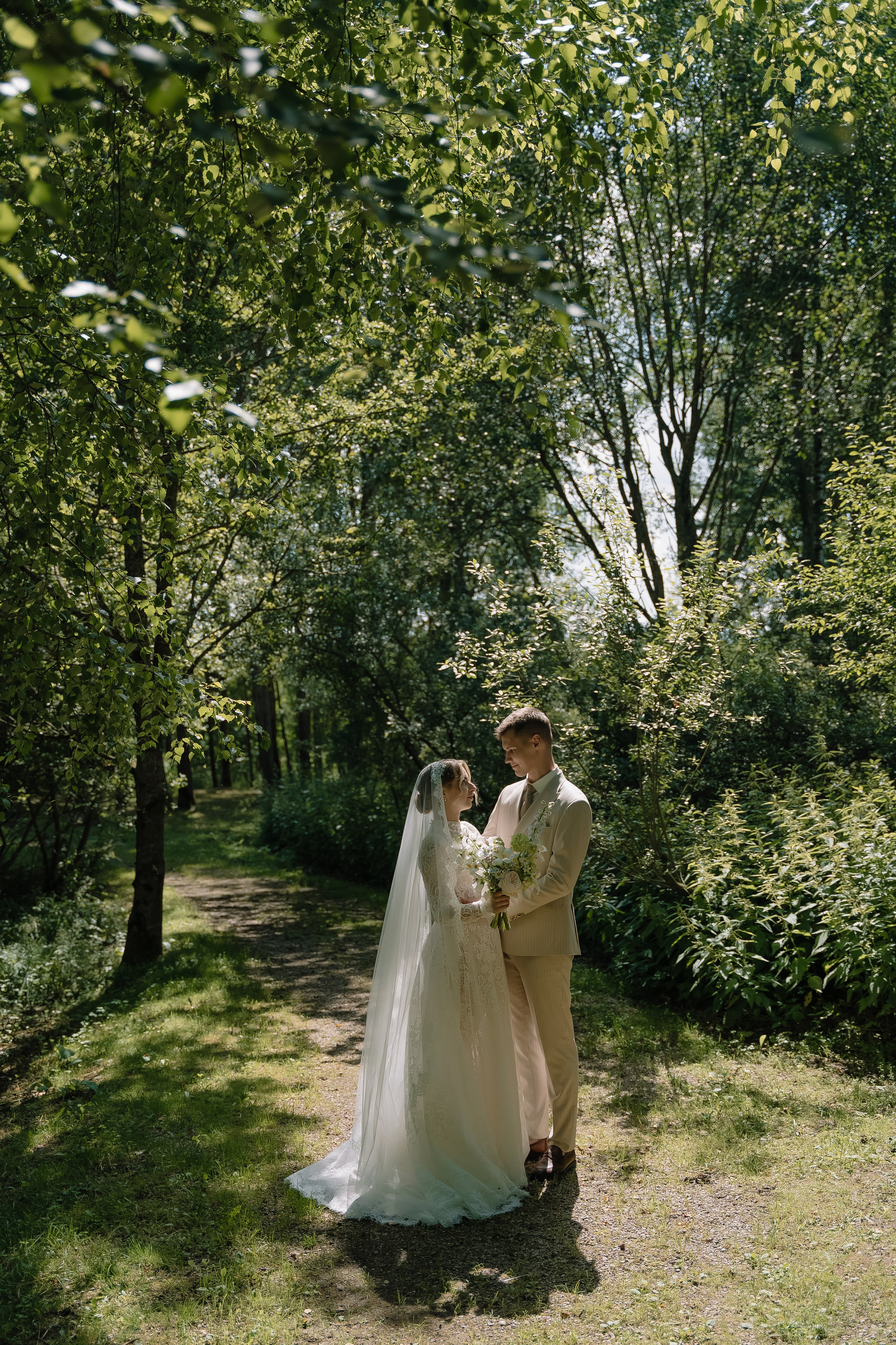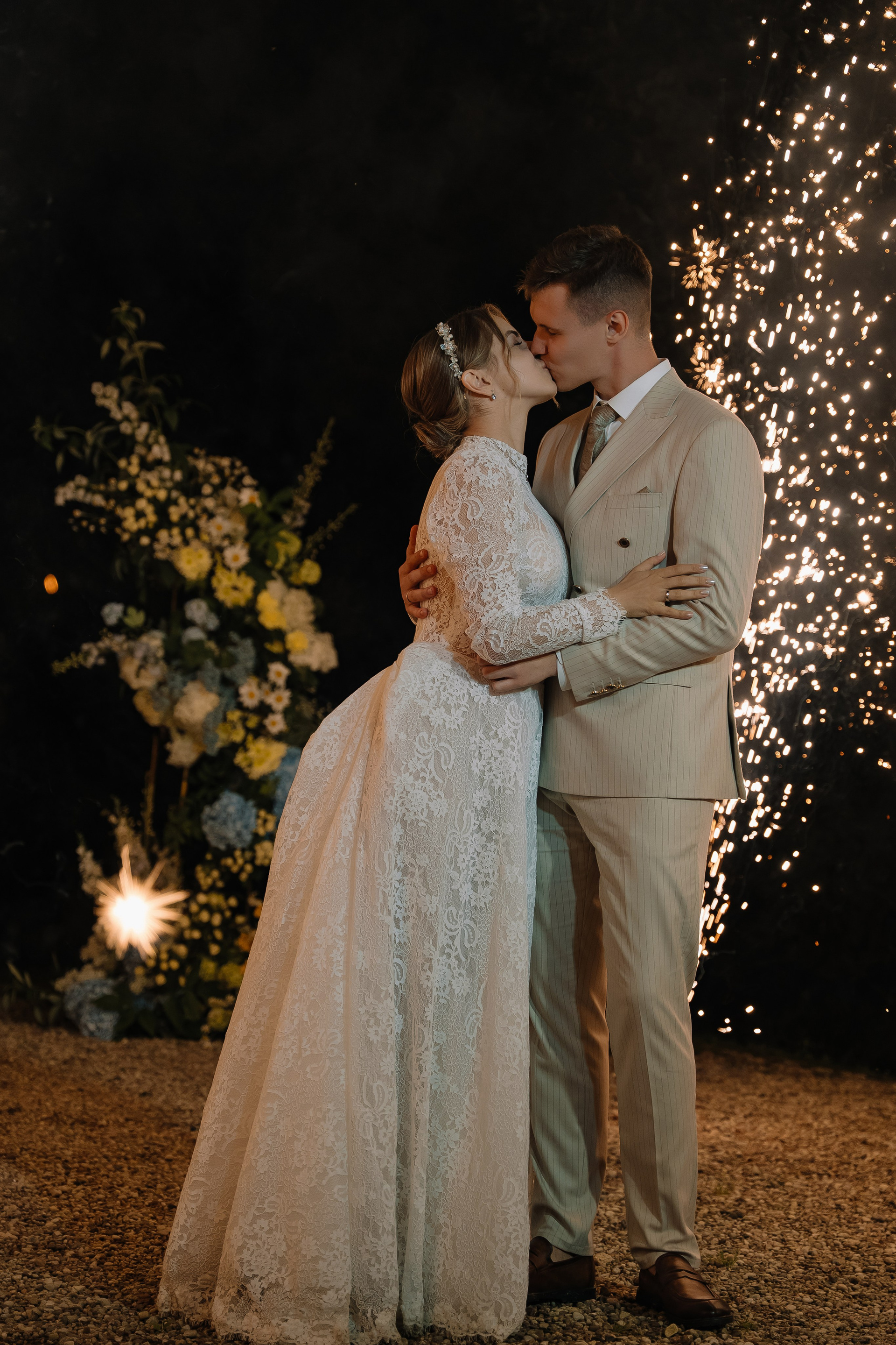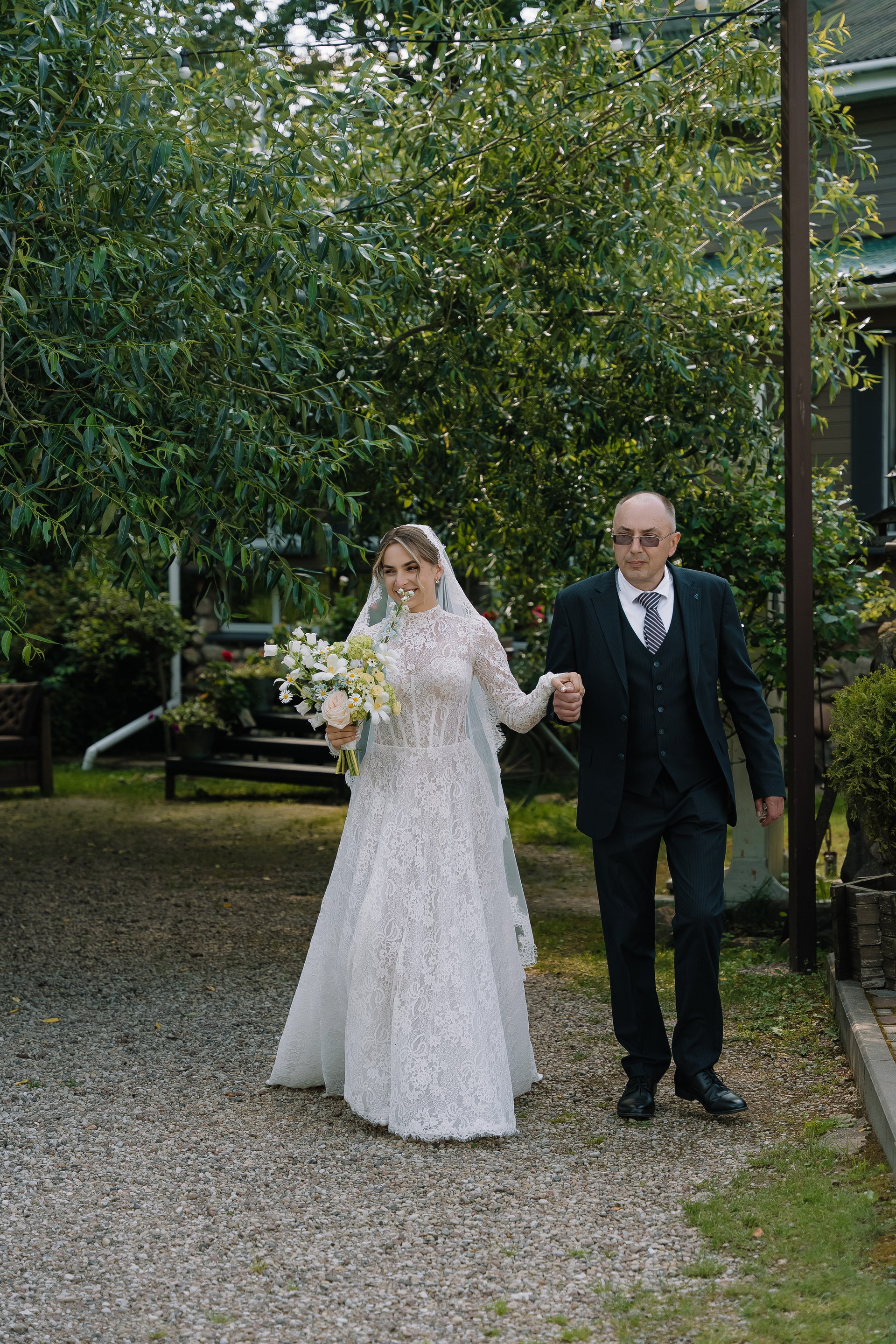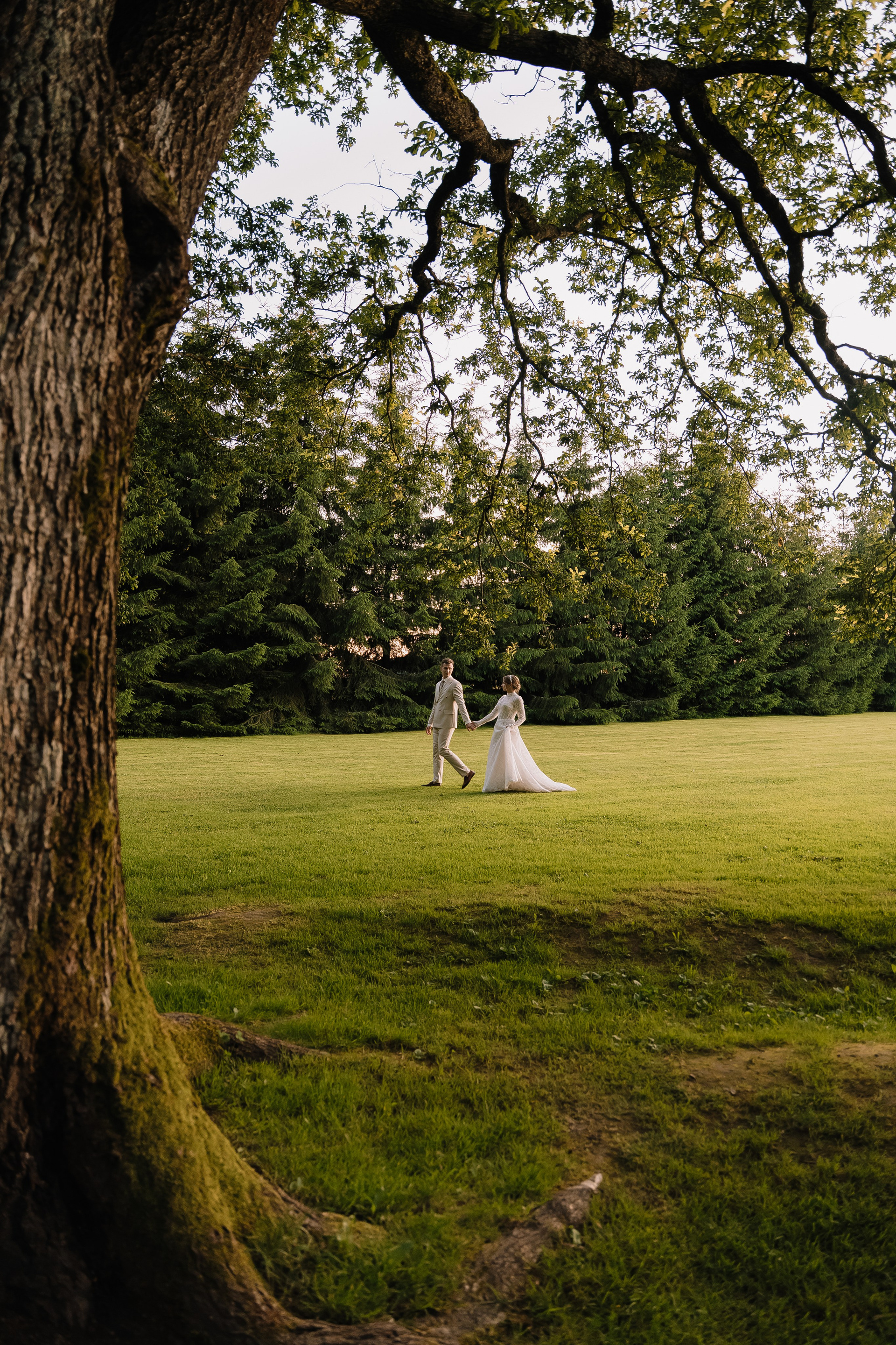 Свадьба под открытым небом в середине июля — это всегда одновременно романтично и рискованно. Перед торжеством пара переживали за погоду: неоднократно обсуждали сценарии на случай дождя или сильной жары. Однако, всё сложилось идеально.