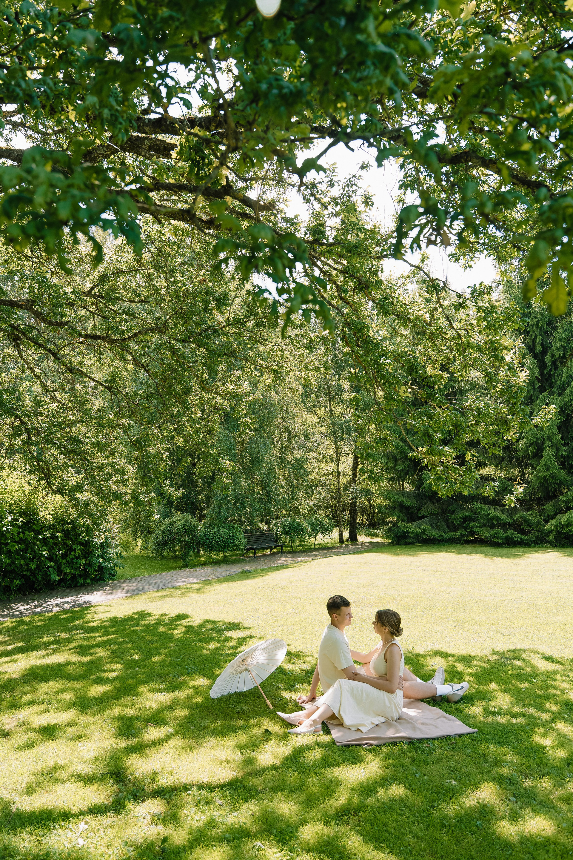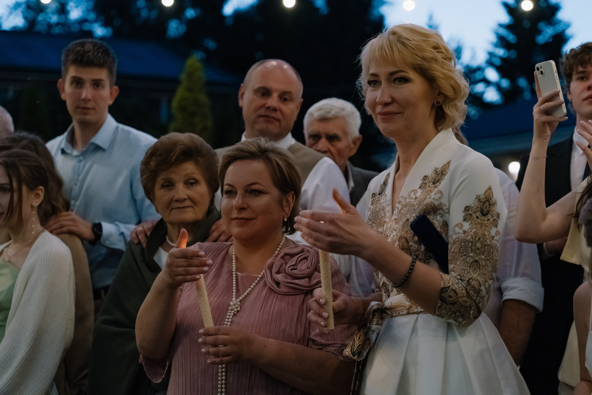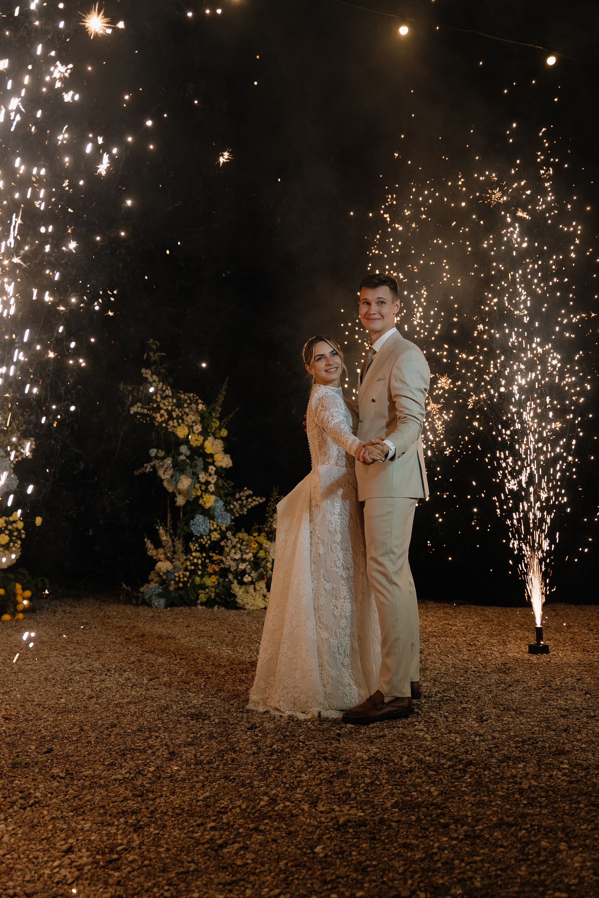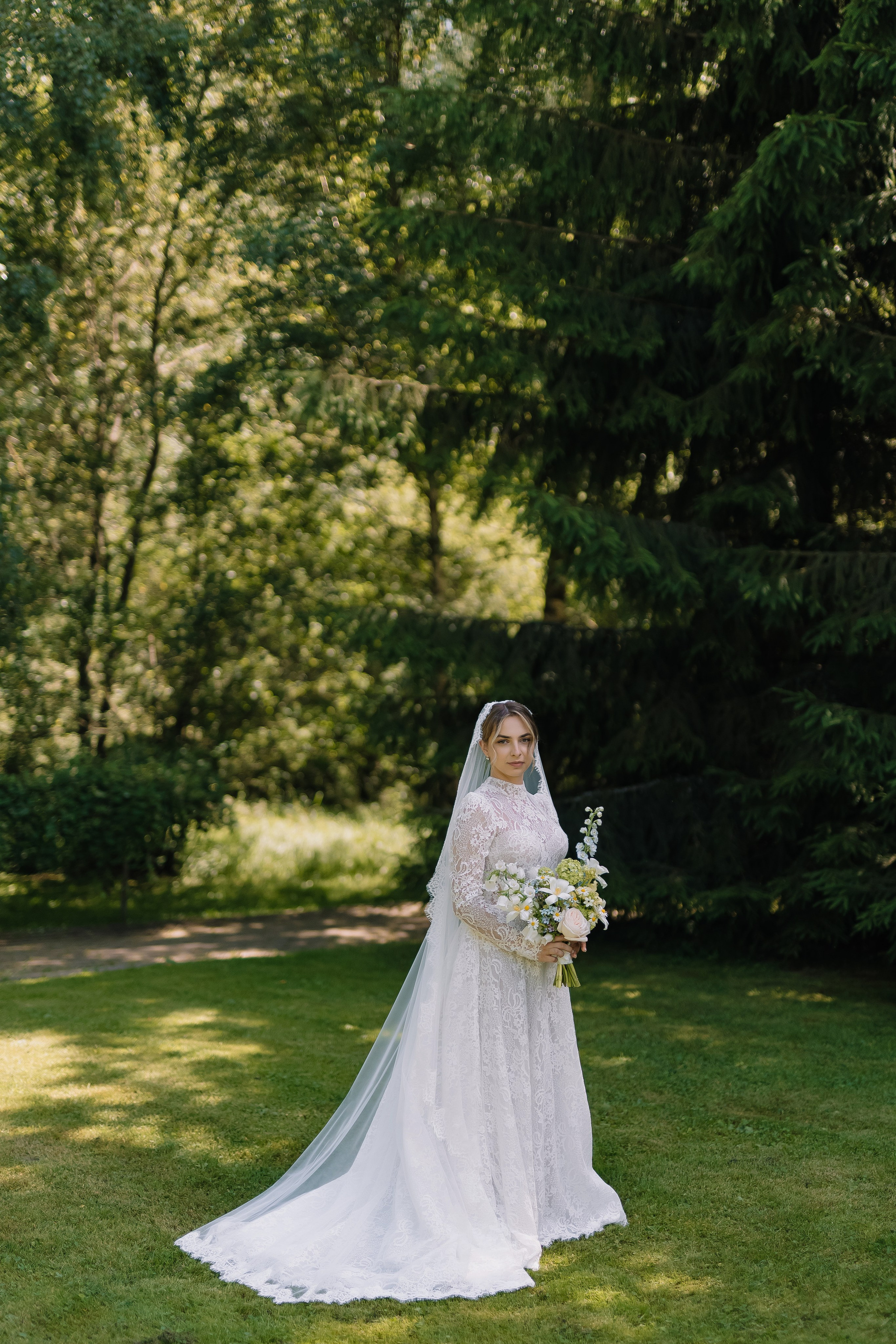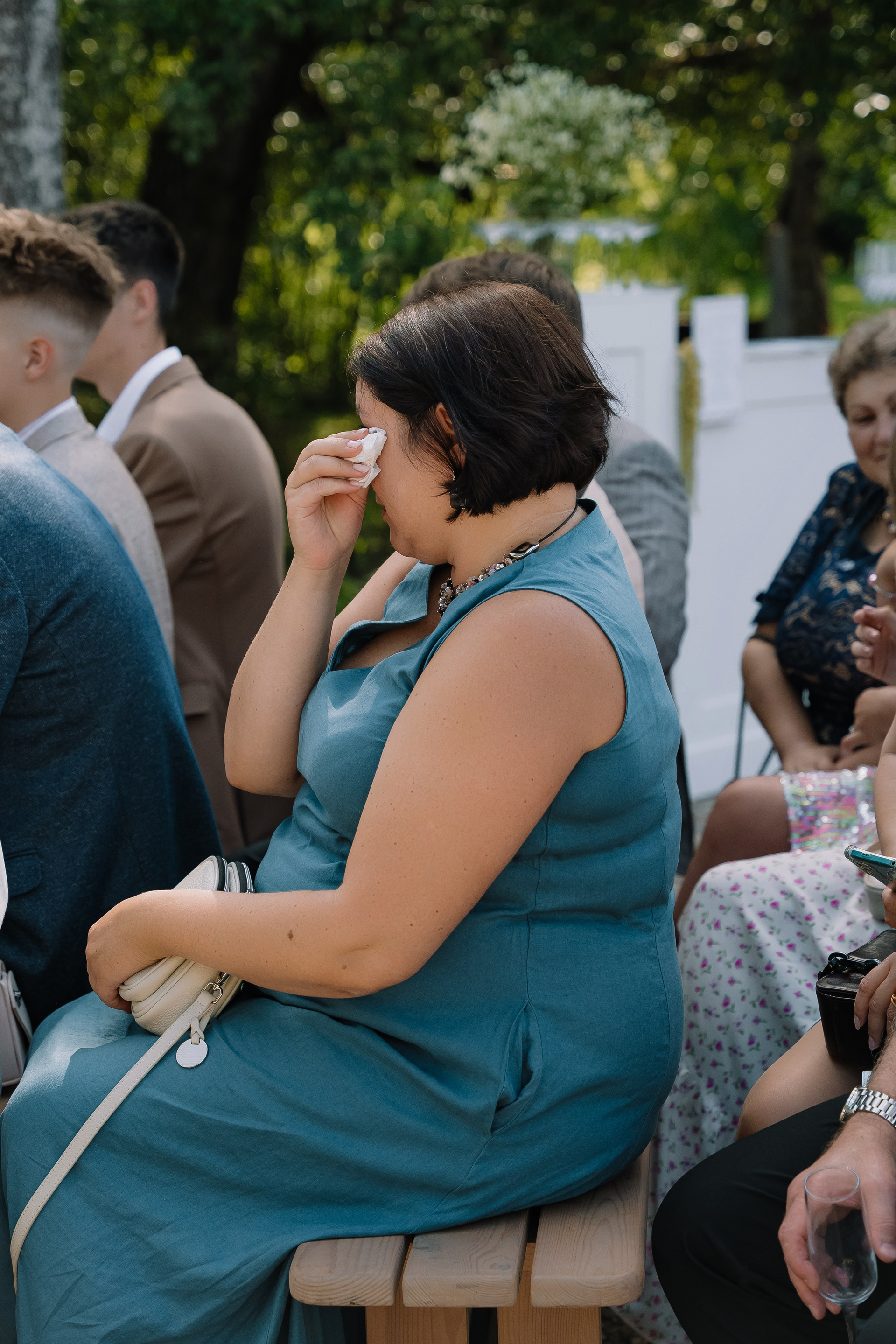 Свадьба под открытым небом в середине июля — это всегда одновременно романтично и рискованно. Перед торжеством пара переживали за погоду: неоднократно обсуждали сценарии на случай дождя или сильной жары. Однако, всё сложилось идеально.