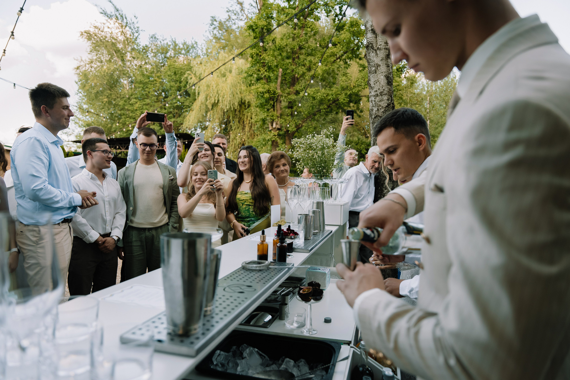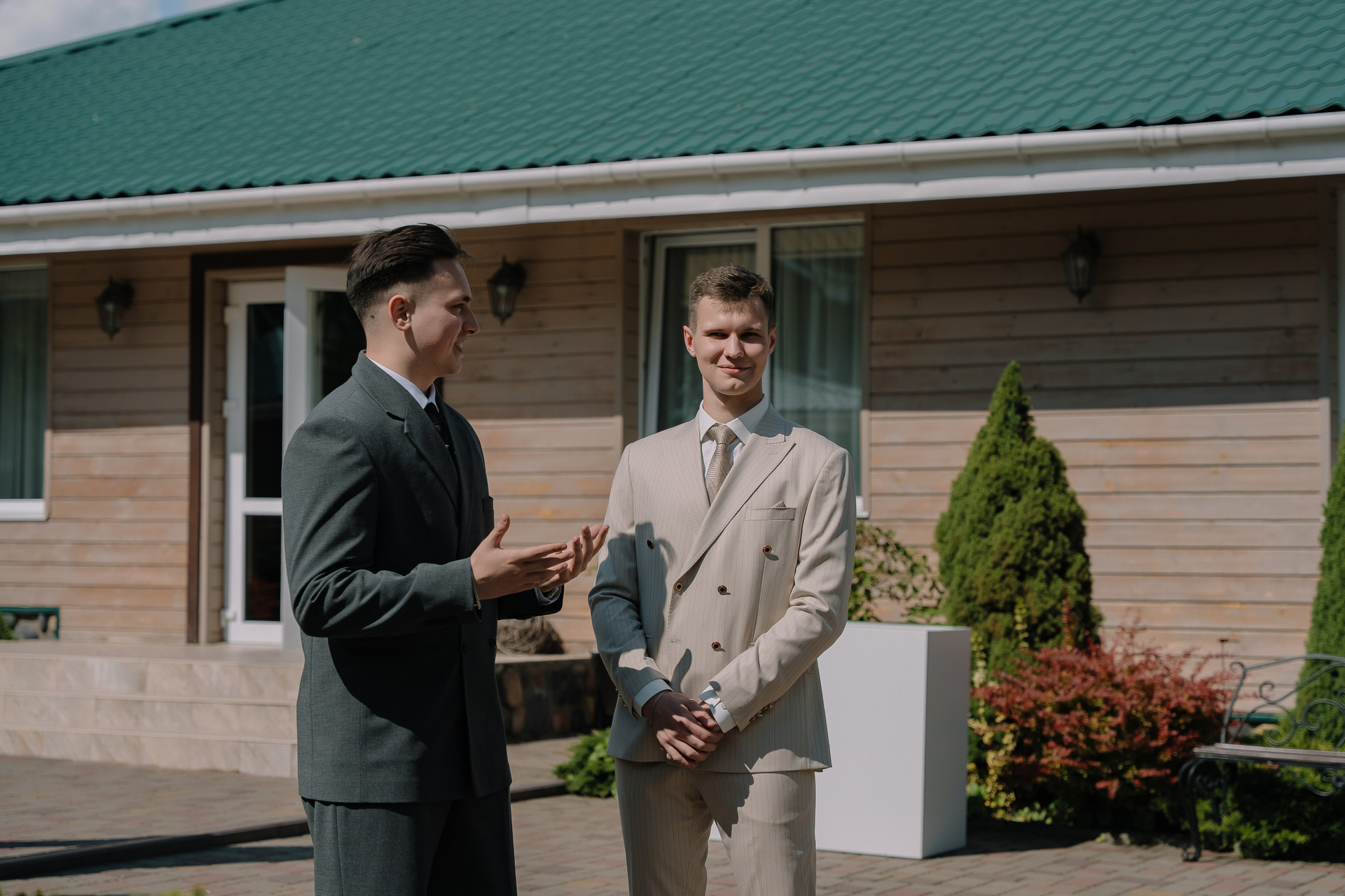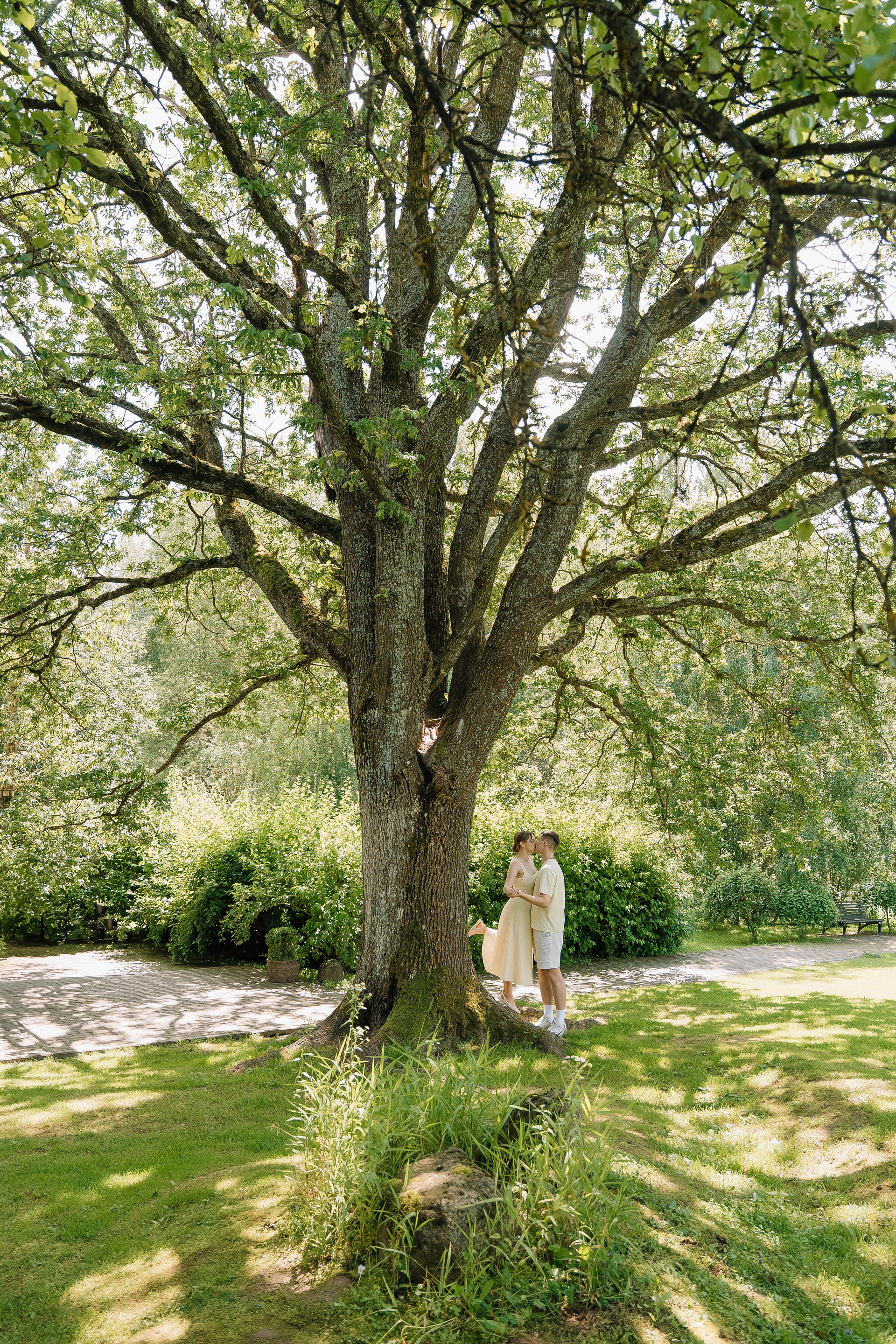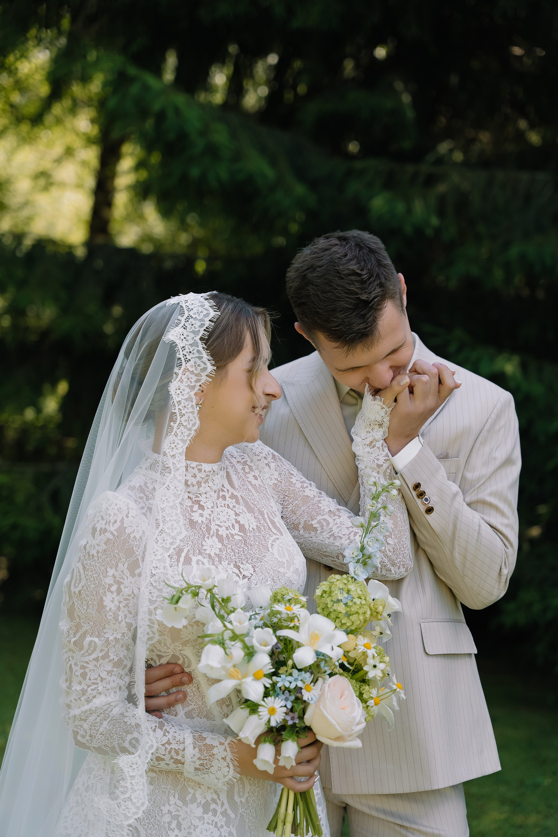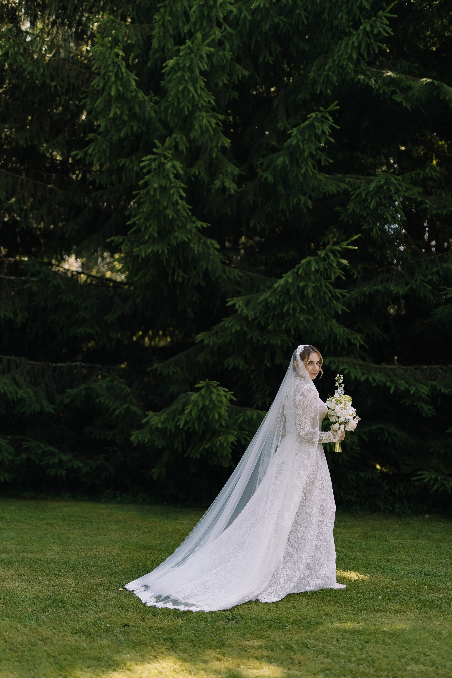 Свадьба под открытым небом в середине июля — это всегда одновременно романтично и рискованно. Перед торжеством пара переживали за погоду: неоднократно обсуждали сценарии на случай дождя или сильной жары. Однако, всё сложилось идеально.