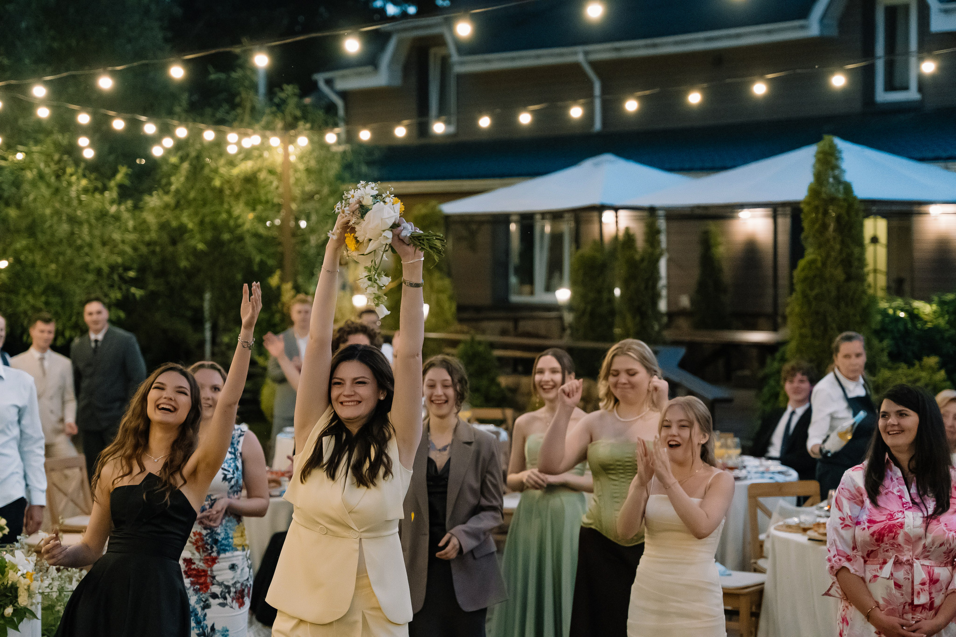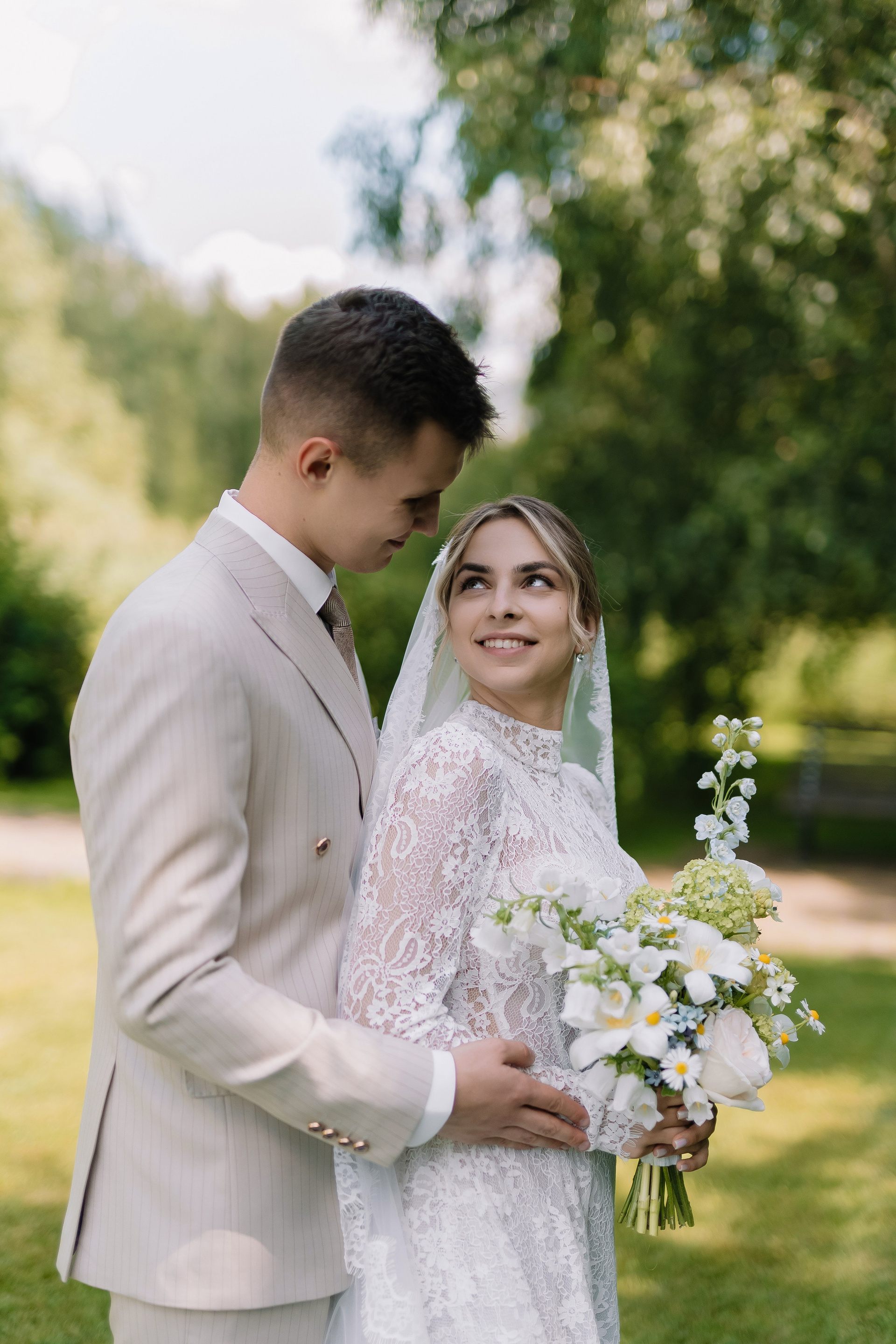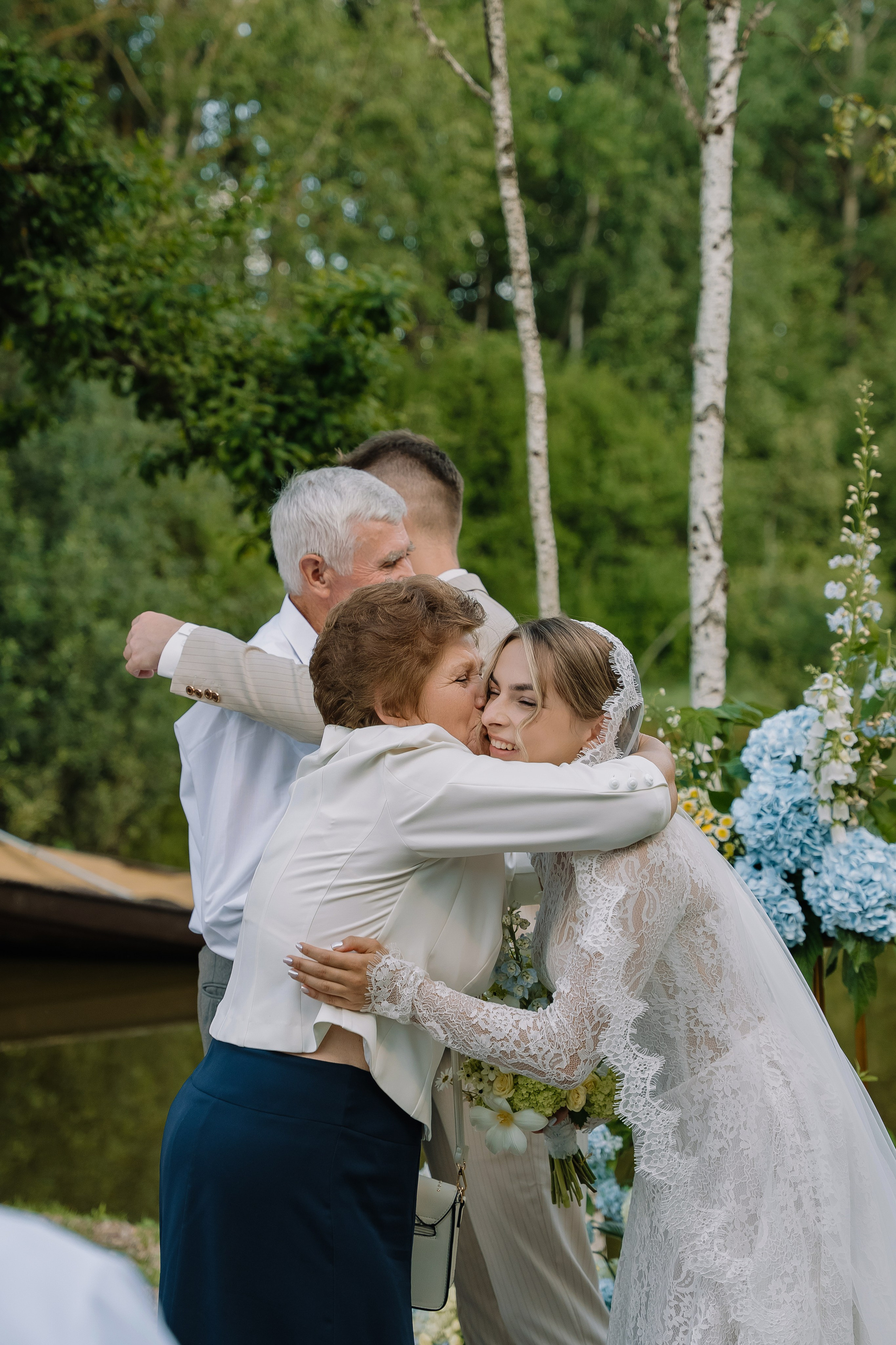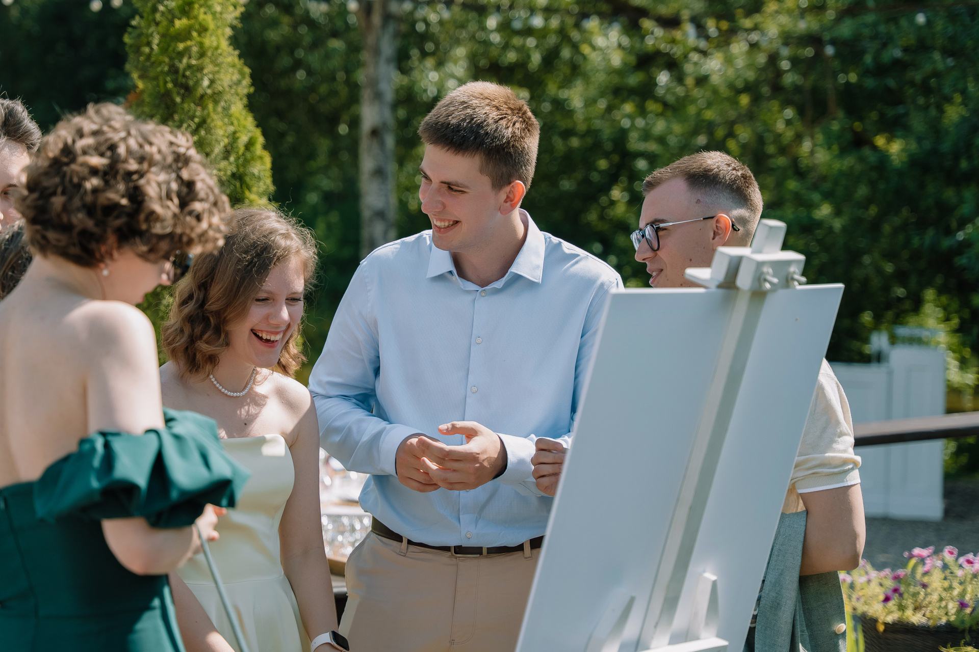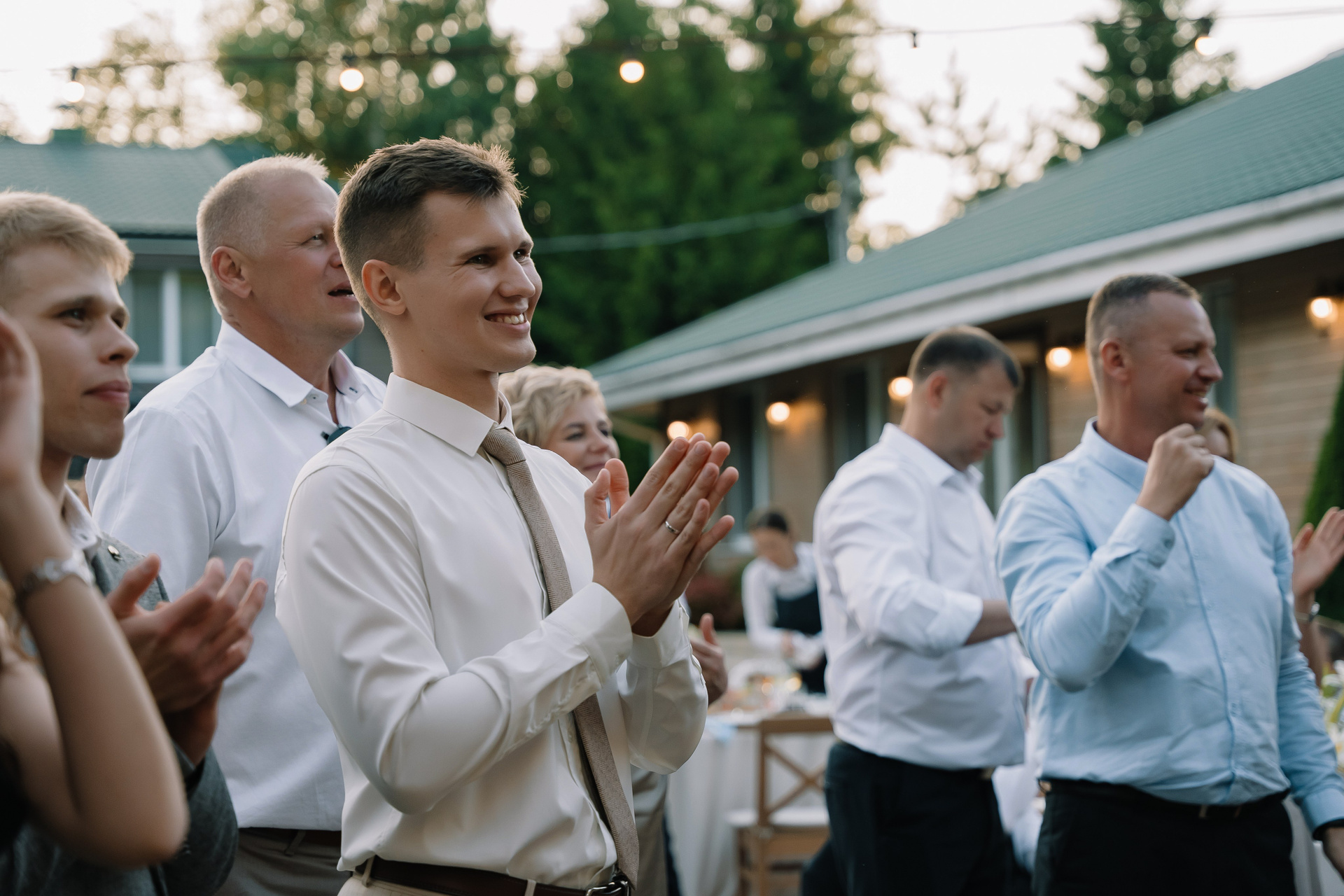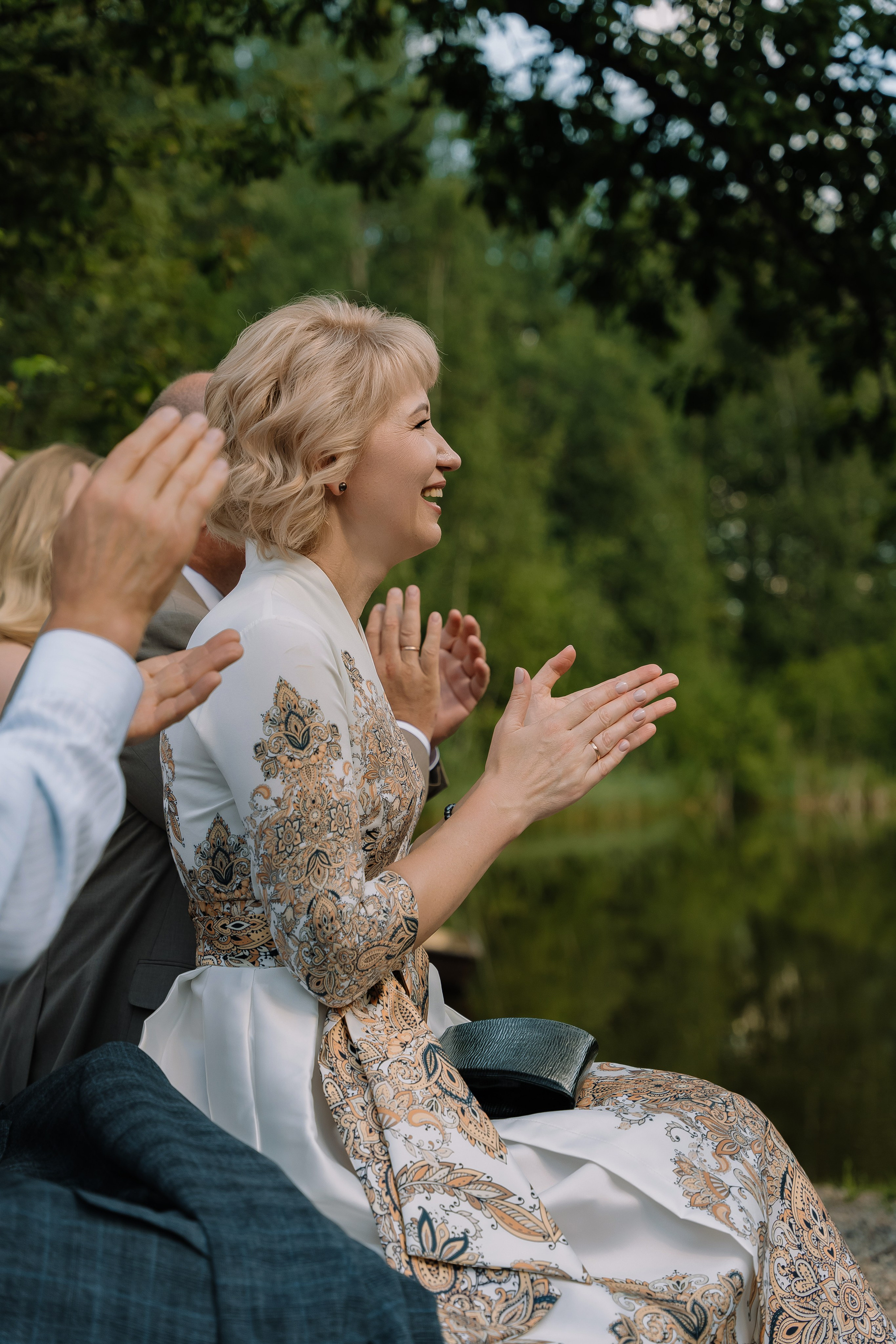 Свадьба под открытым небом в середине июля — это всегда одновременно романтично и рискованно. Перед торжеством пара переживали за погоду: неоднократно обсуждали сценарии на случай дождя или сильной жары. Однако, всё сложилось идеально.