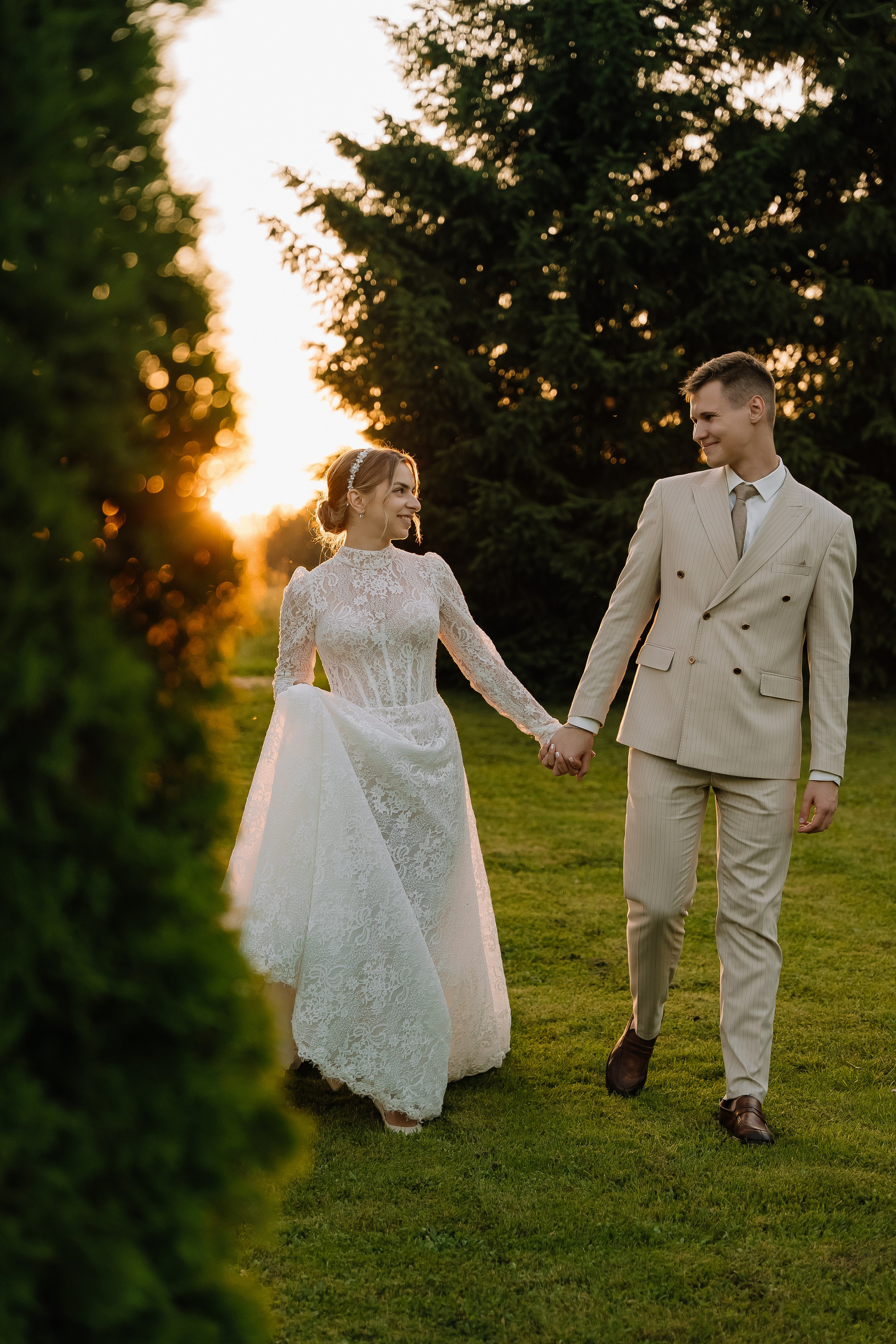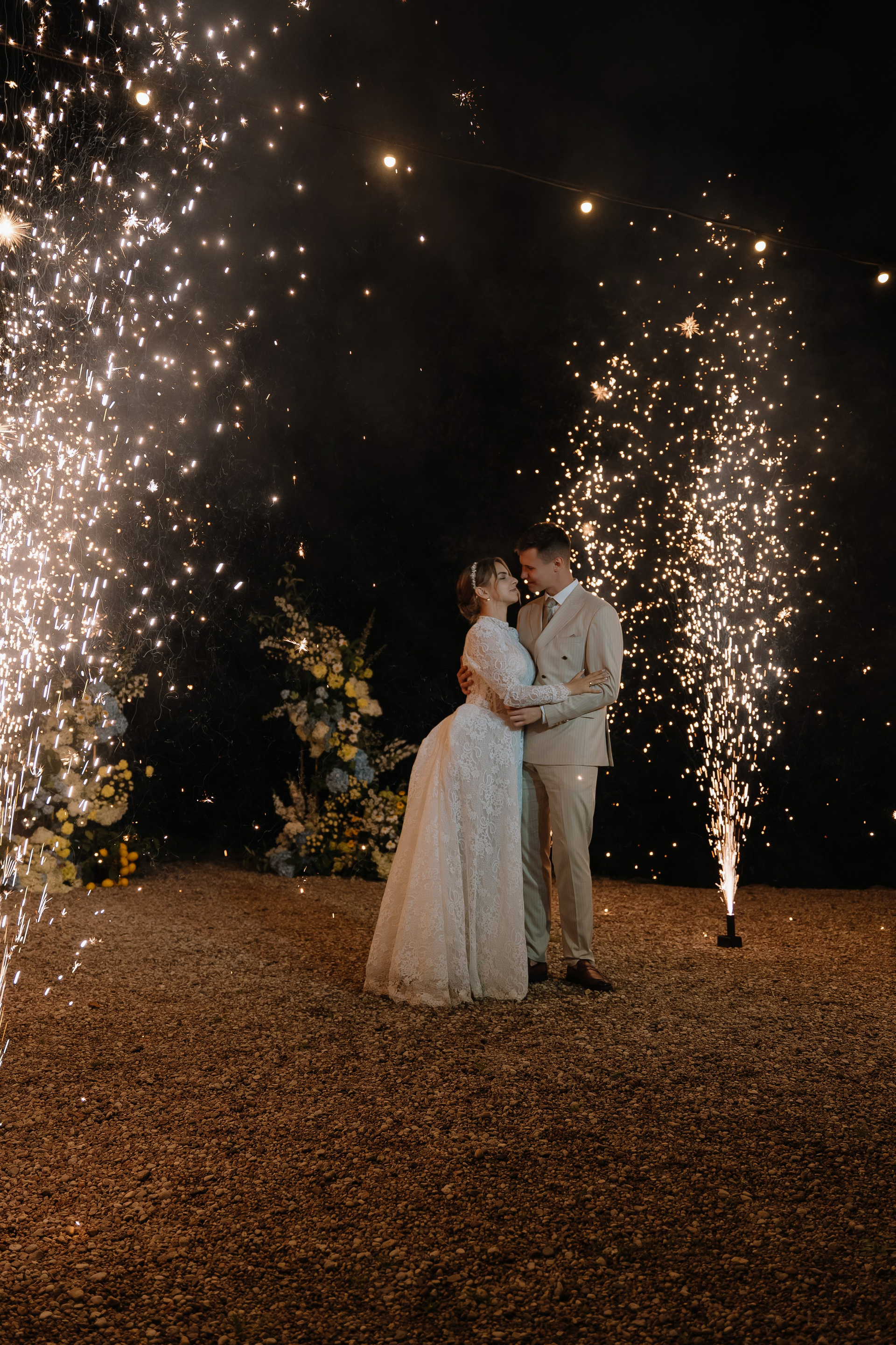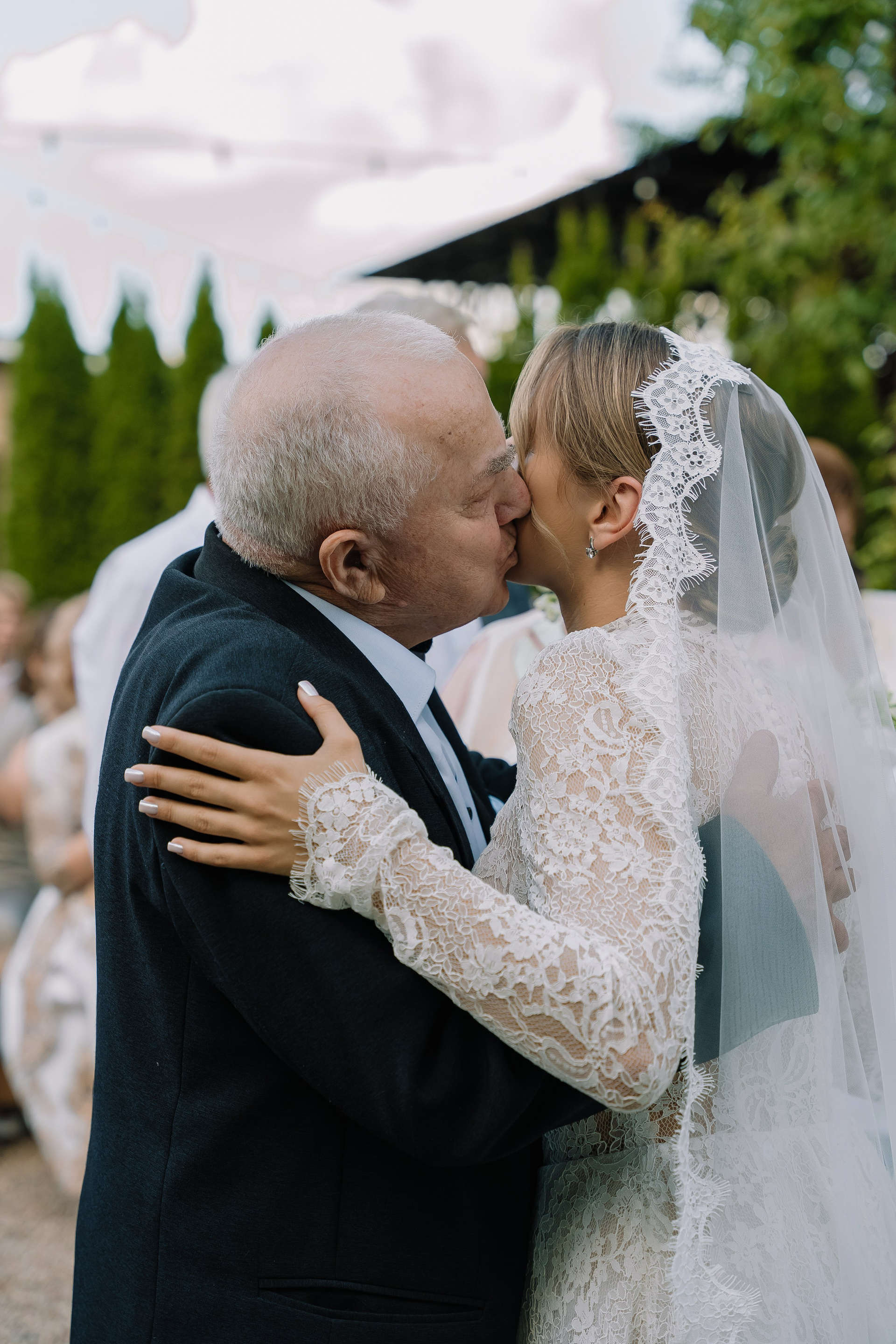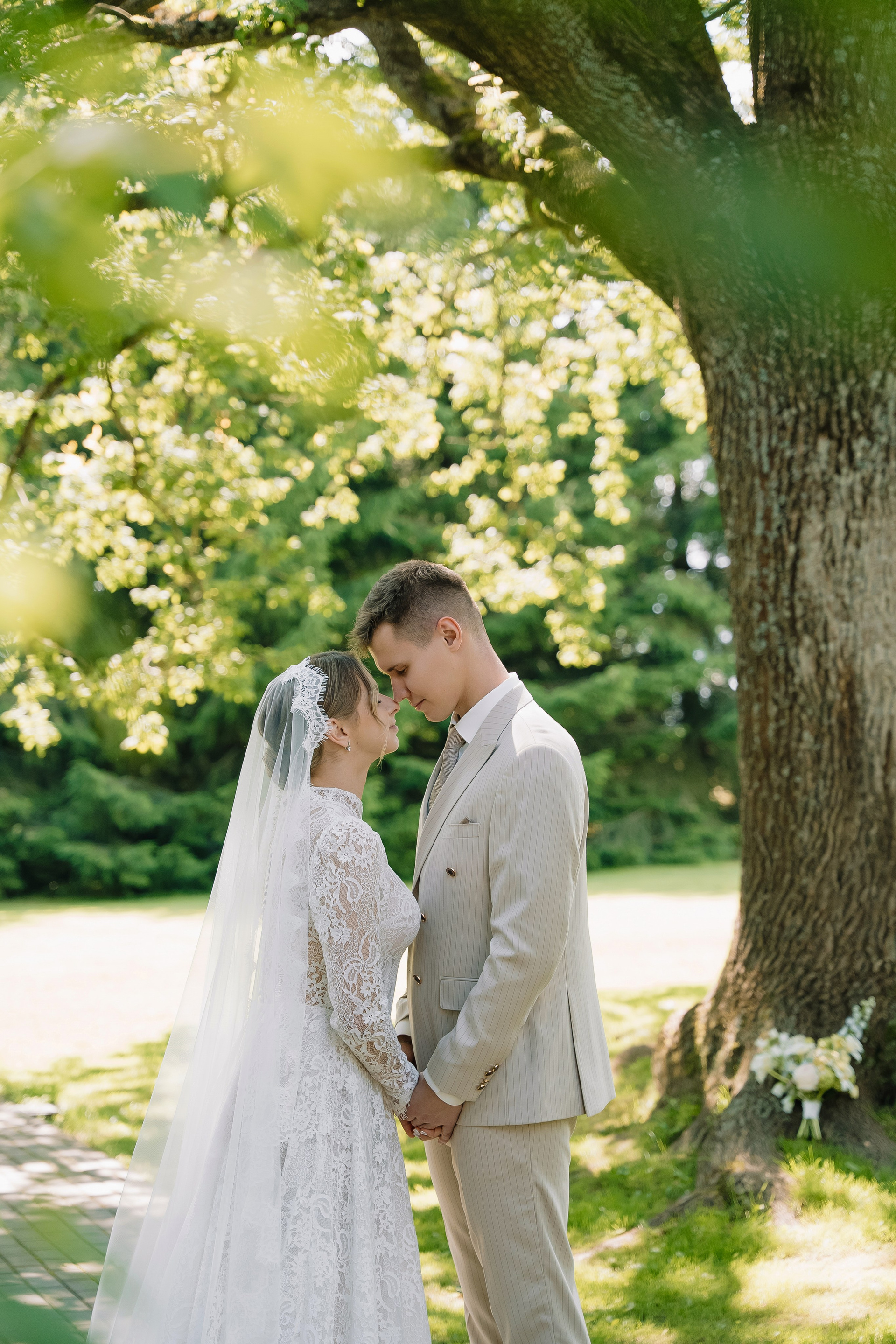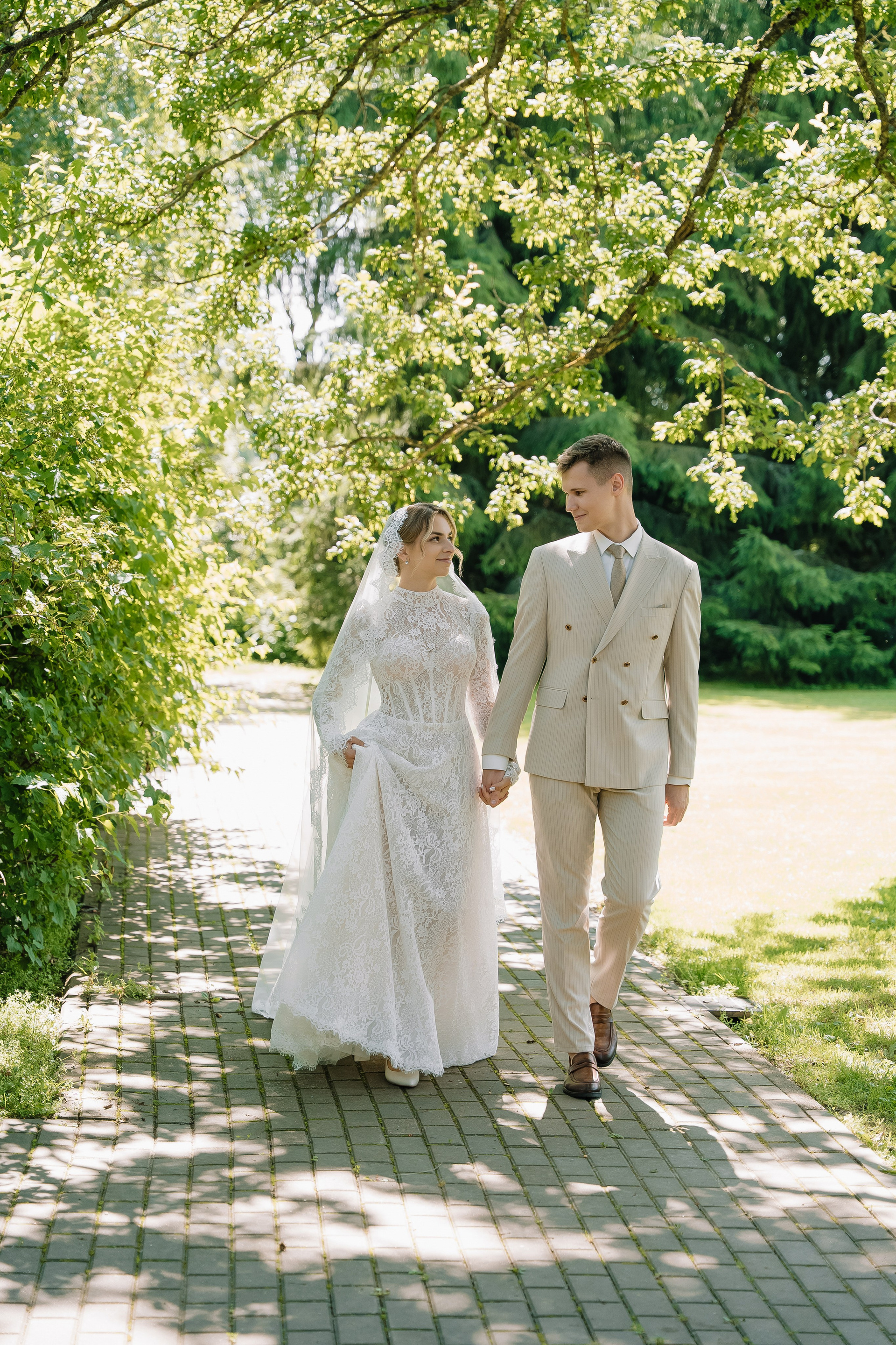 Свадьба под открытым небом в середине июля — это всегда одновременно романтично и рискованно. Перед торжеством пара переживали за погоду: неоднократно обсуждали сценарии на случай дождя или сильной жары. Однако, всё сложилось идеально.