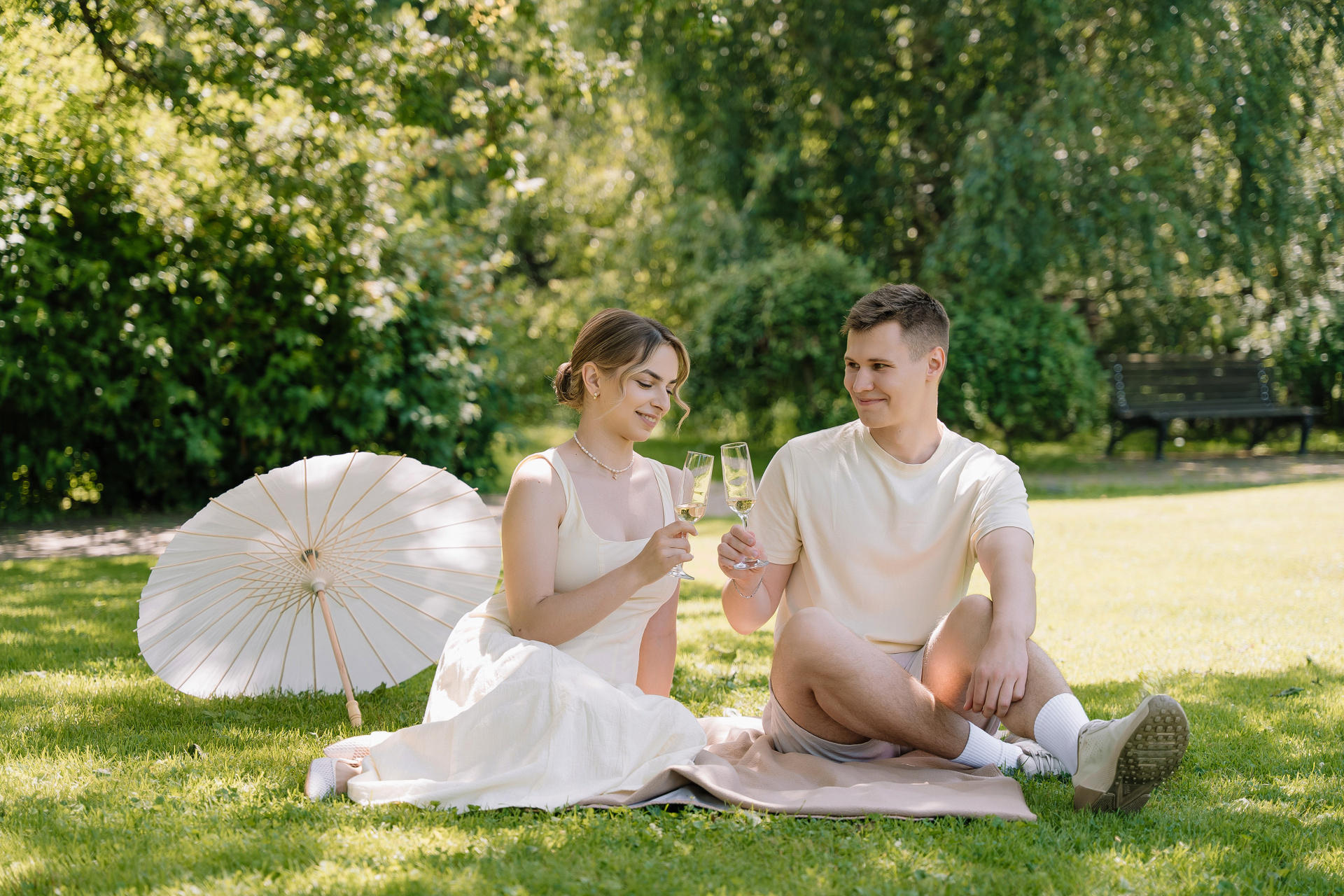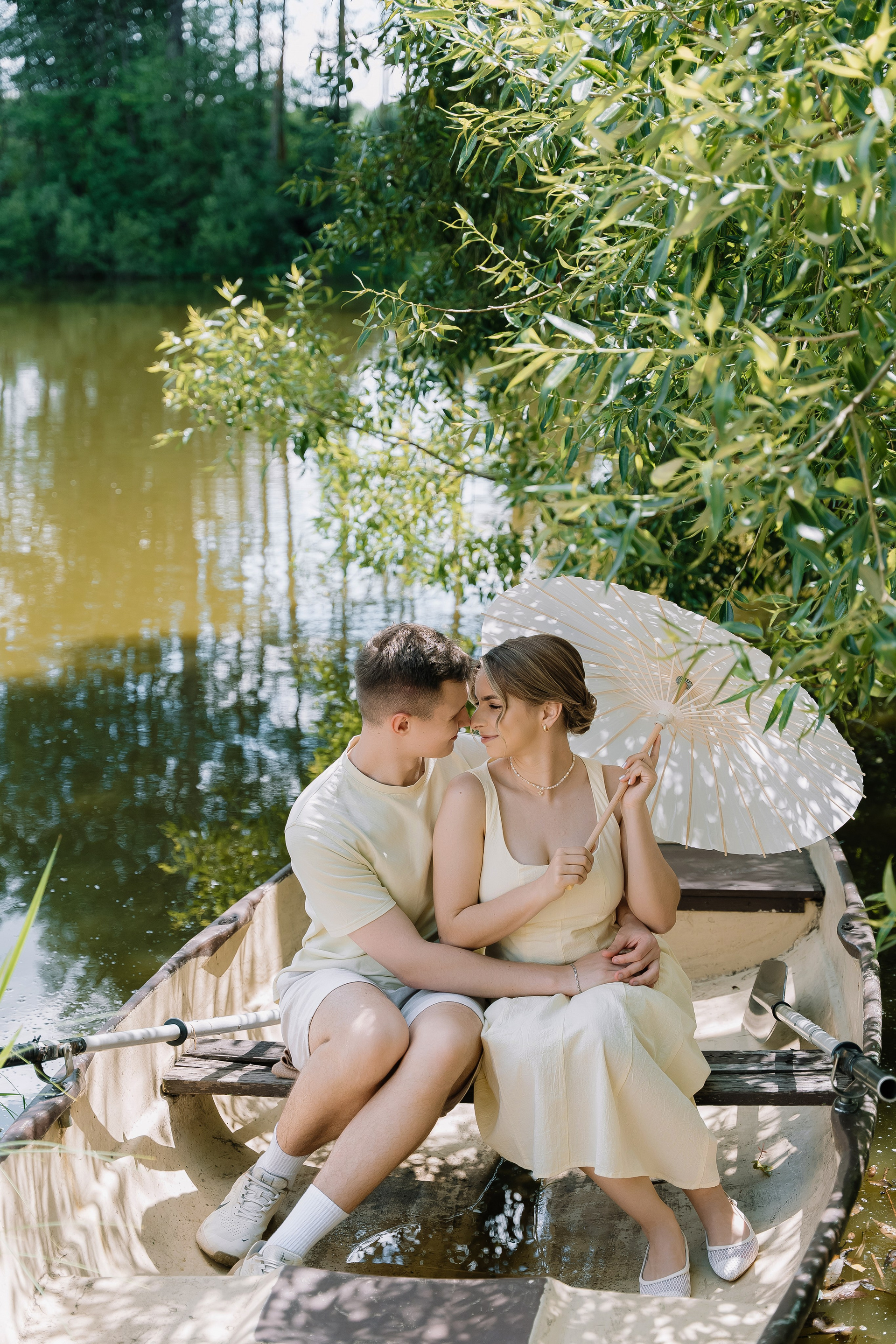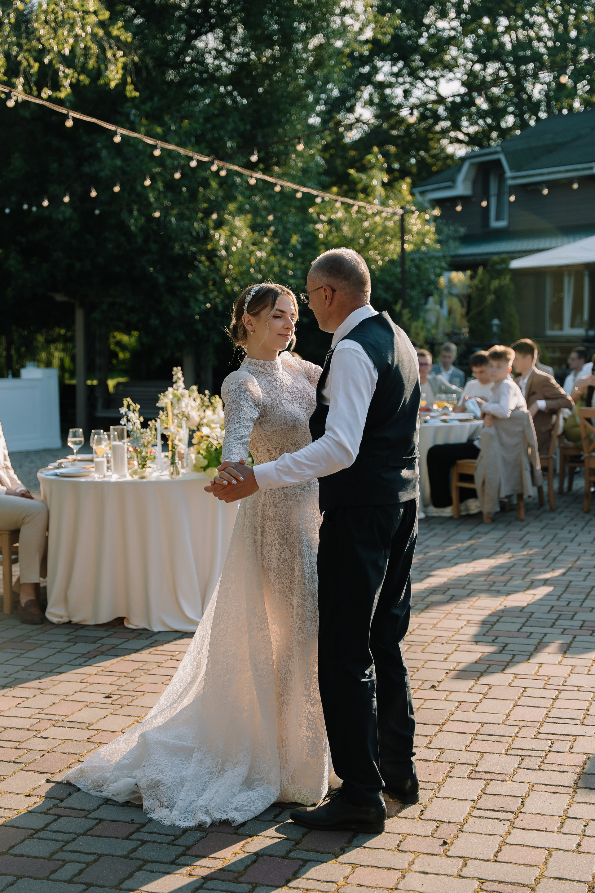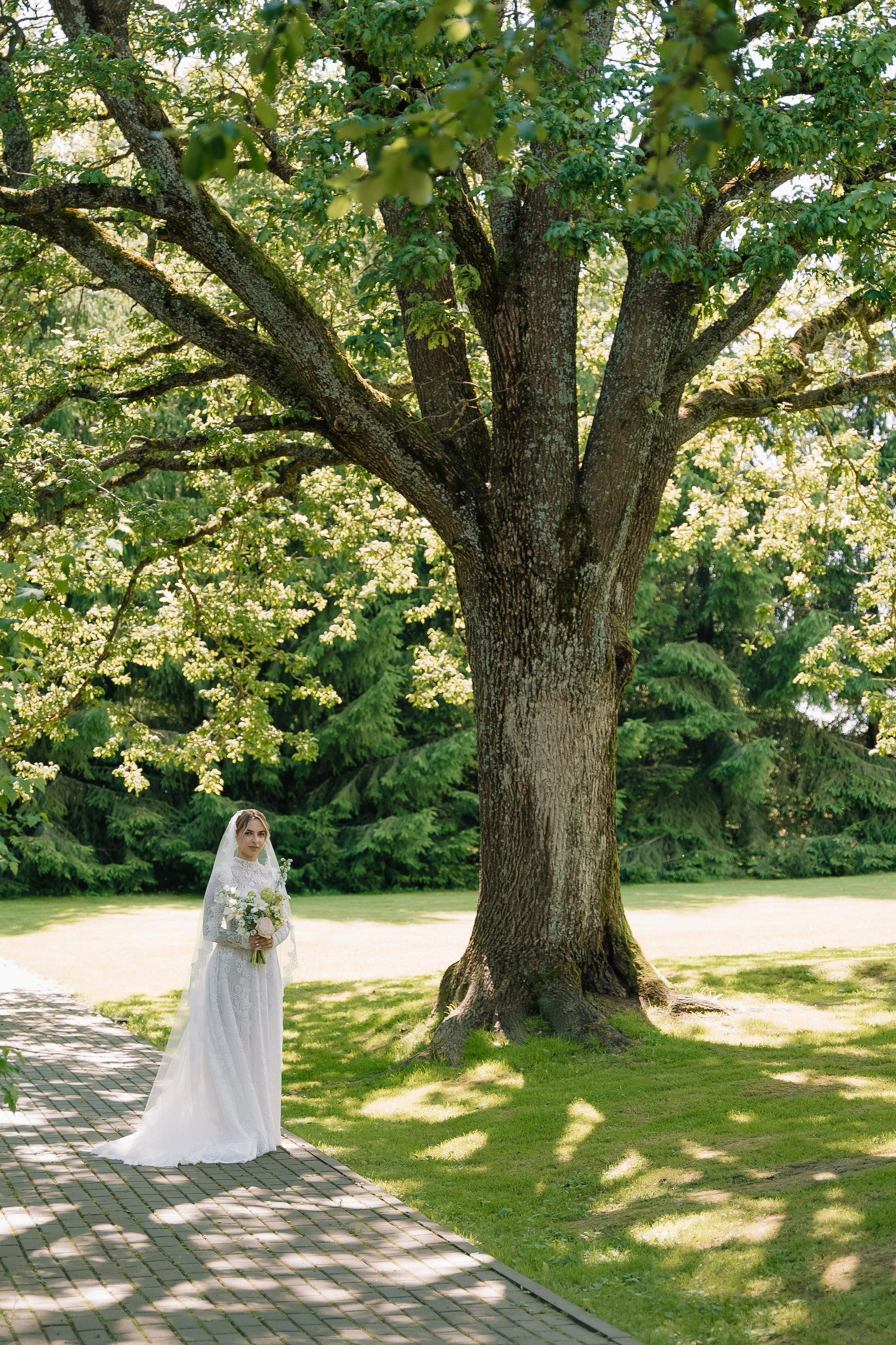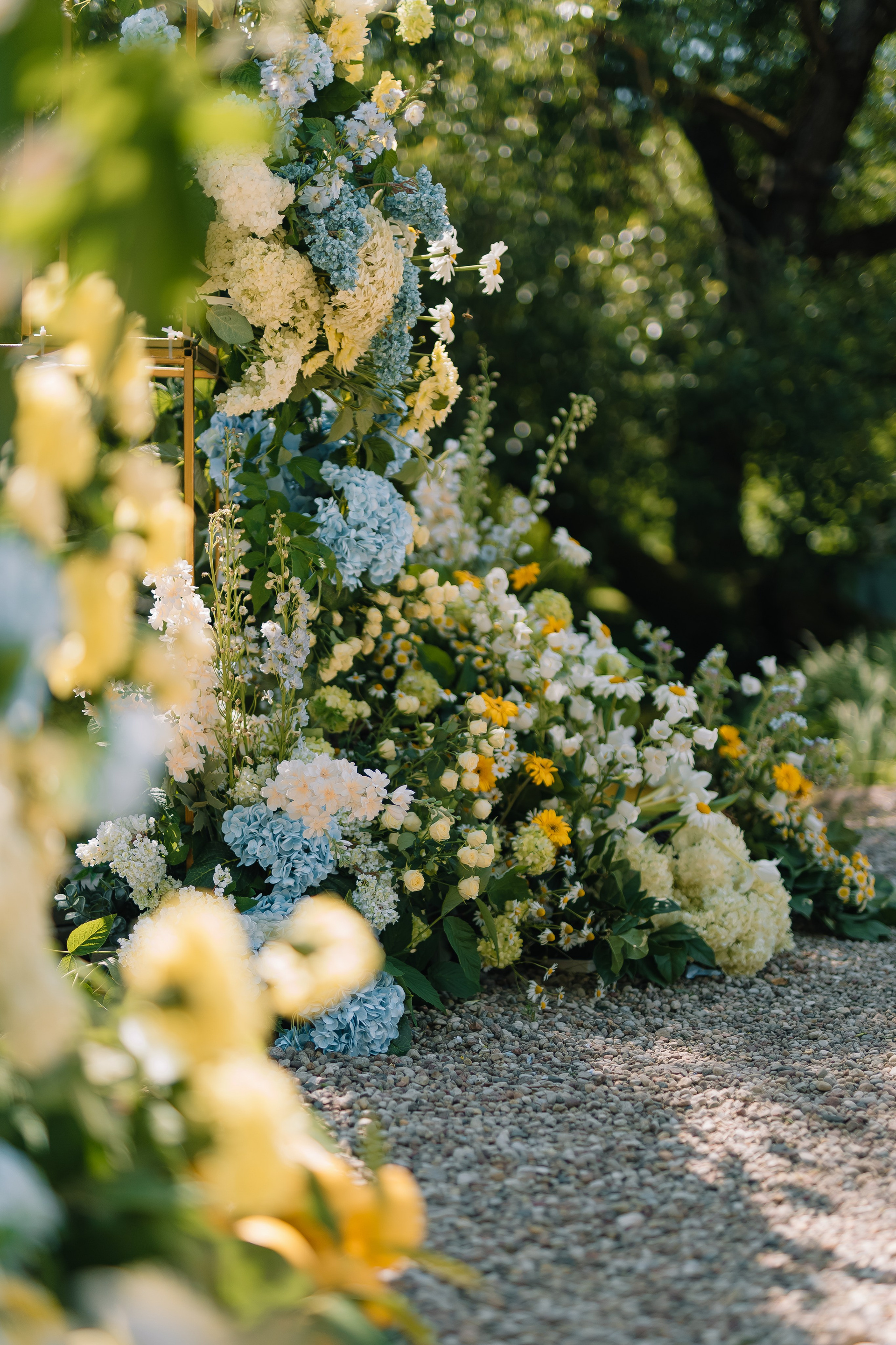 Свадьба под открытым небом в середине июля — это всегда одновременно романтично и рискованно. Перед торжеством пара переживали за погоду: неоднократно обсуждали сценарии на случай дождя или сильной жары. Однако, всё сложилось идеально.