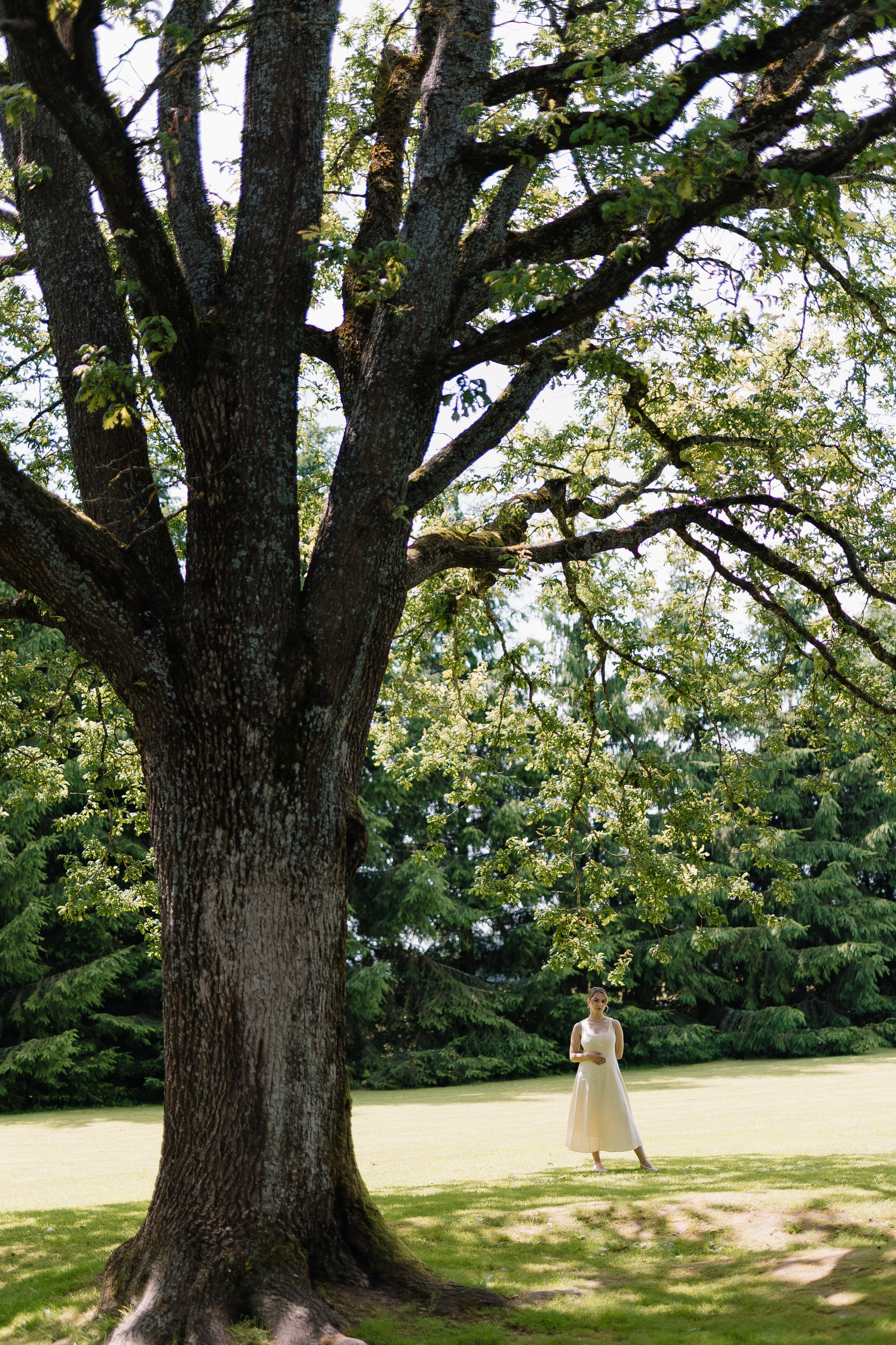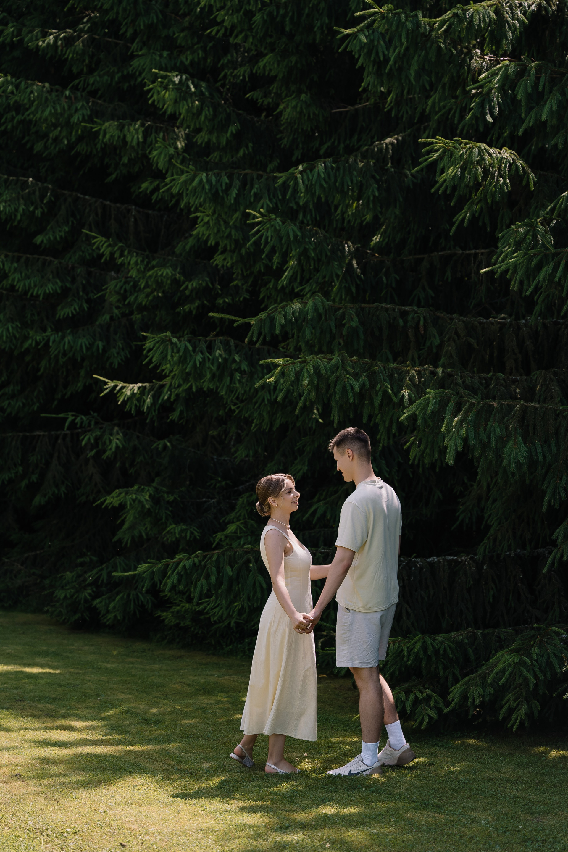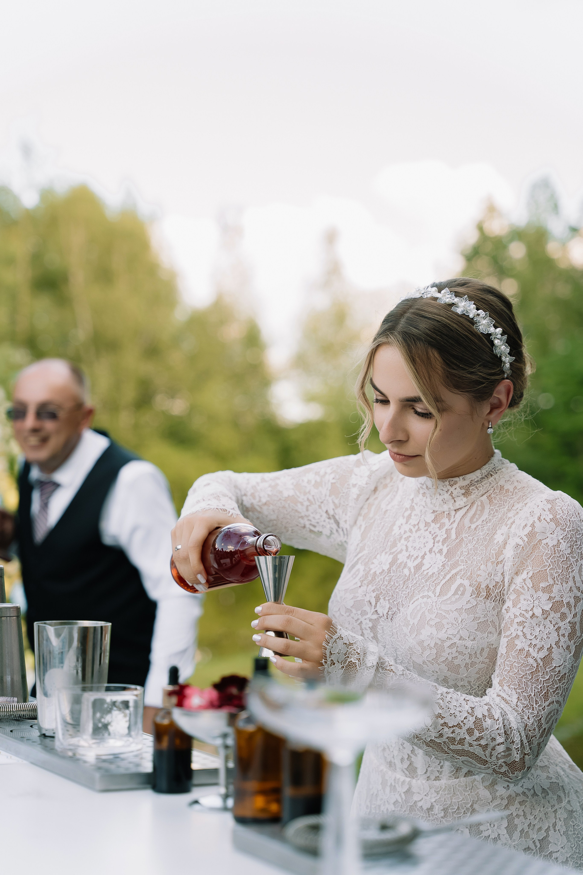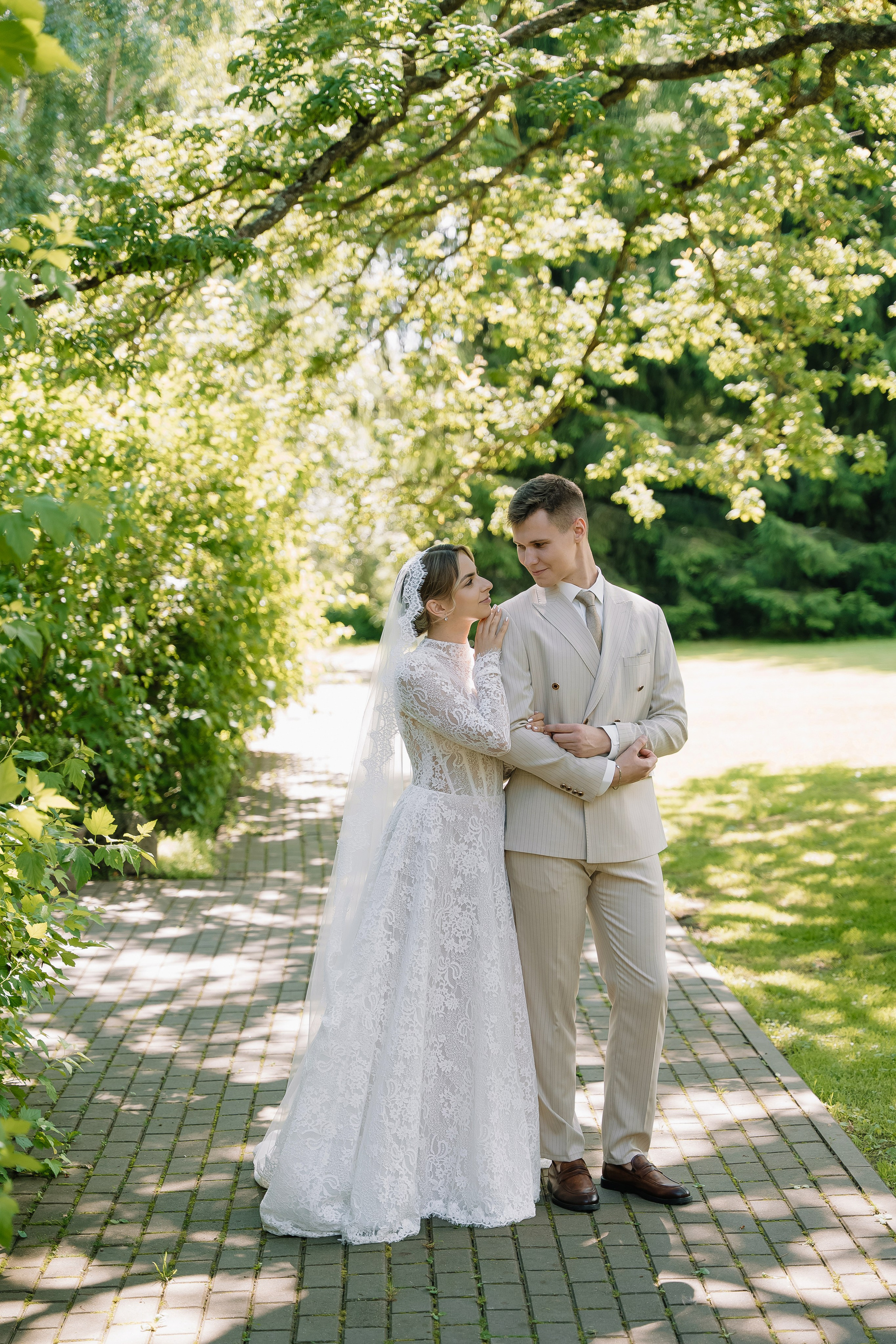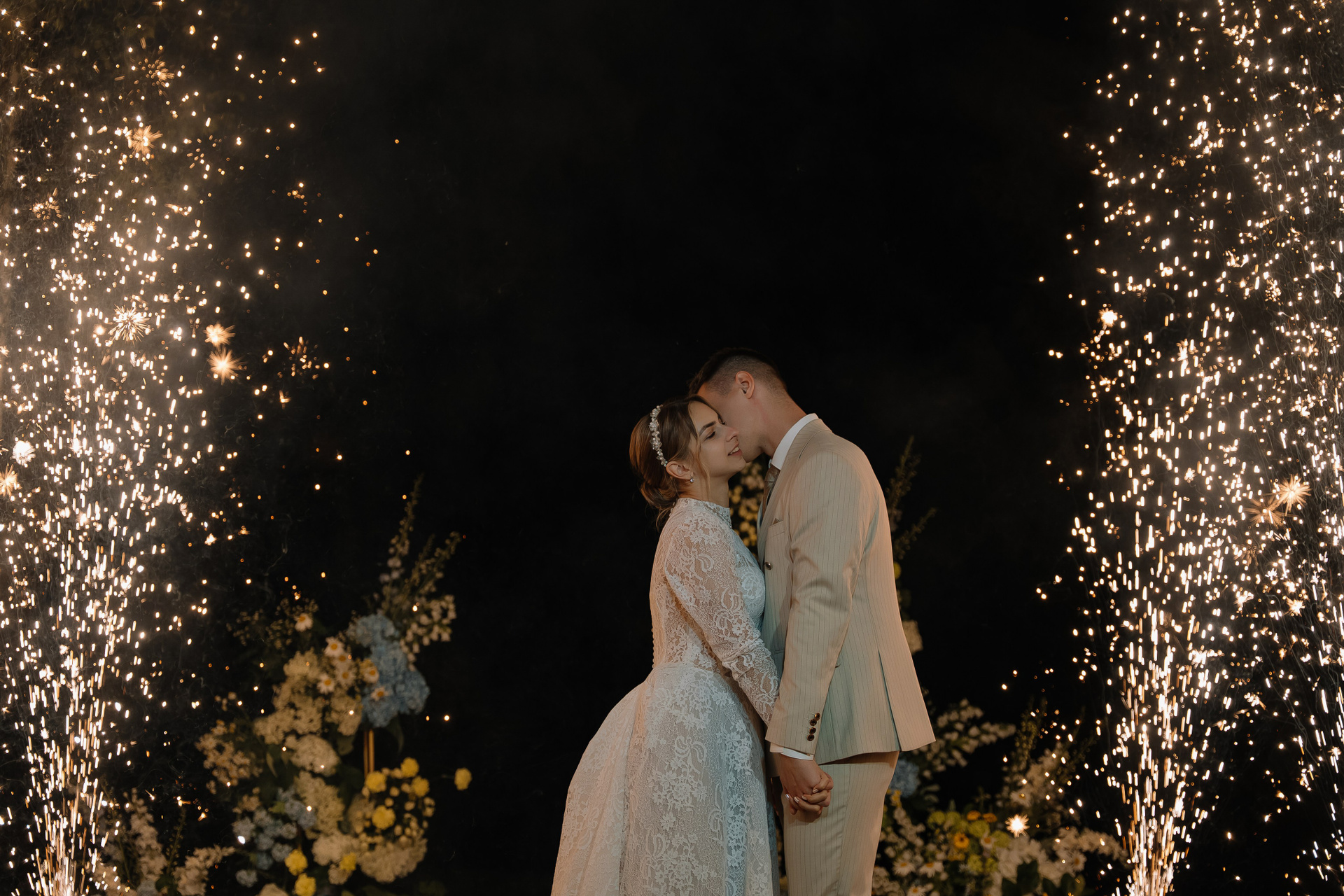 Свадьба под открытым небом в середине июля — это всегда одновременно романтично и рискованно. Перед торжеством пара переживали за погоду: неоднократно обсуждали сценарии на случай дождя или сильной жары. Однако, всё сложилось идеально.