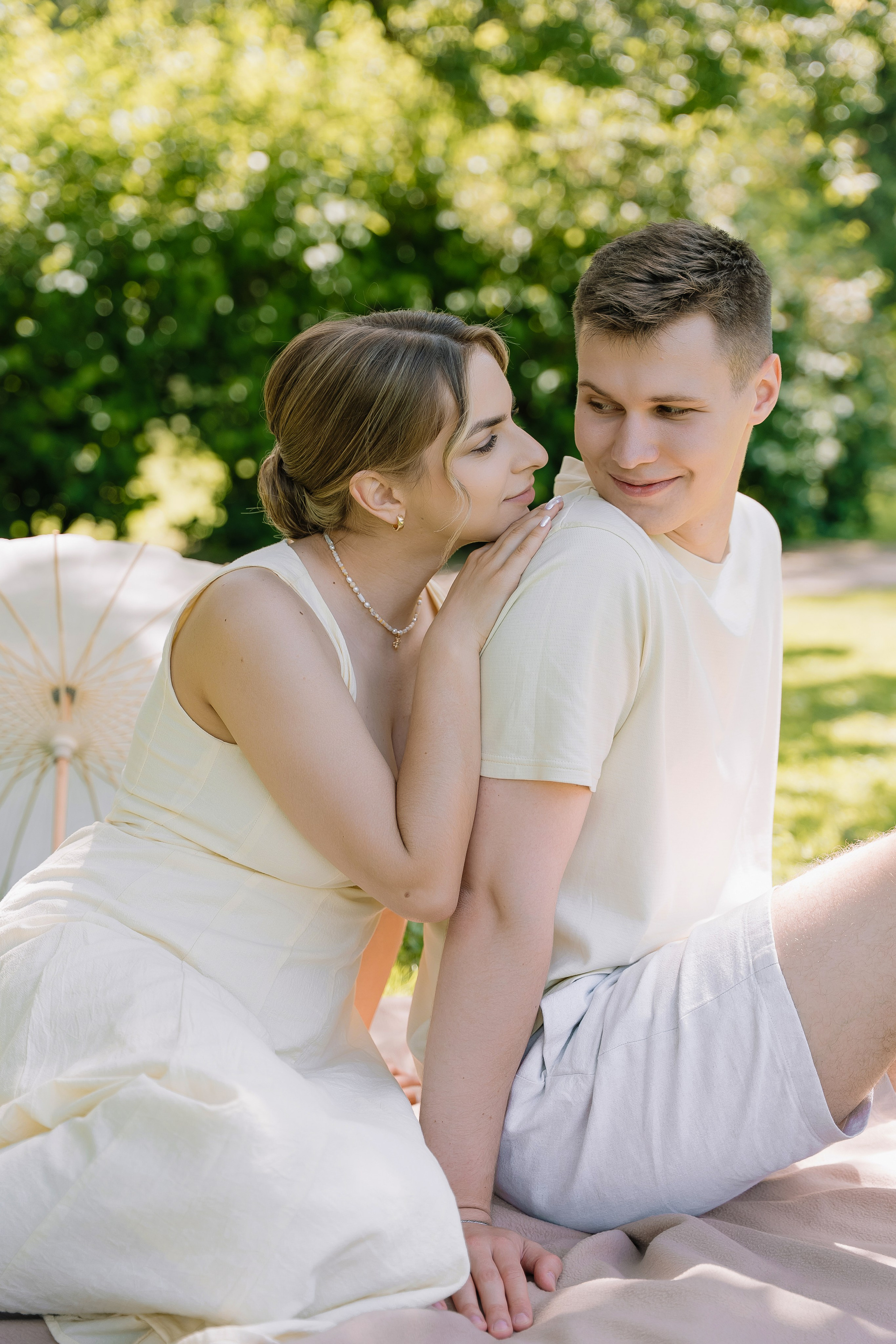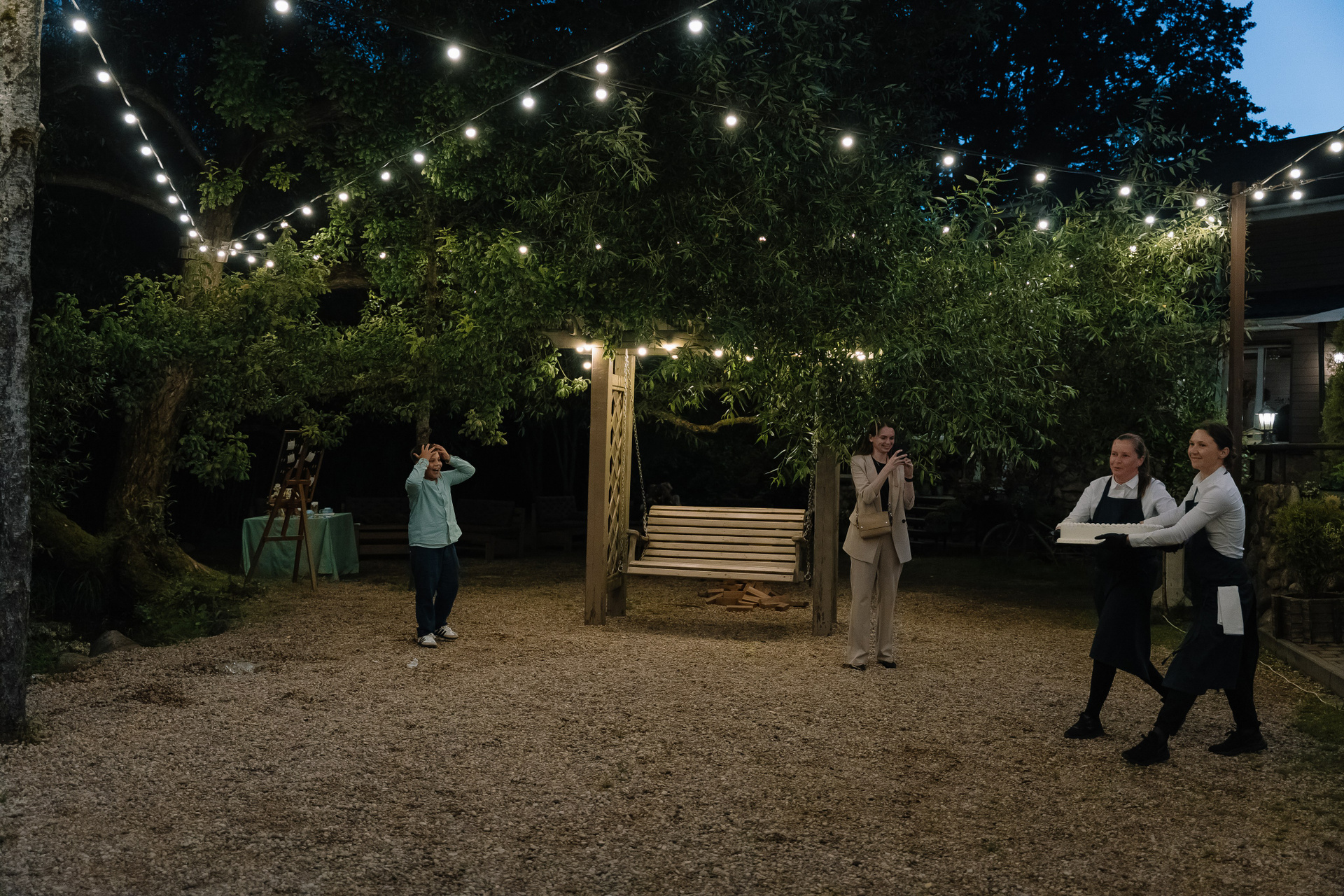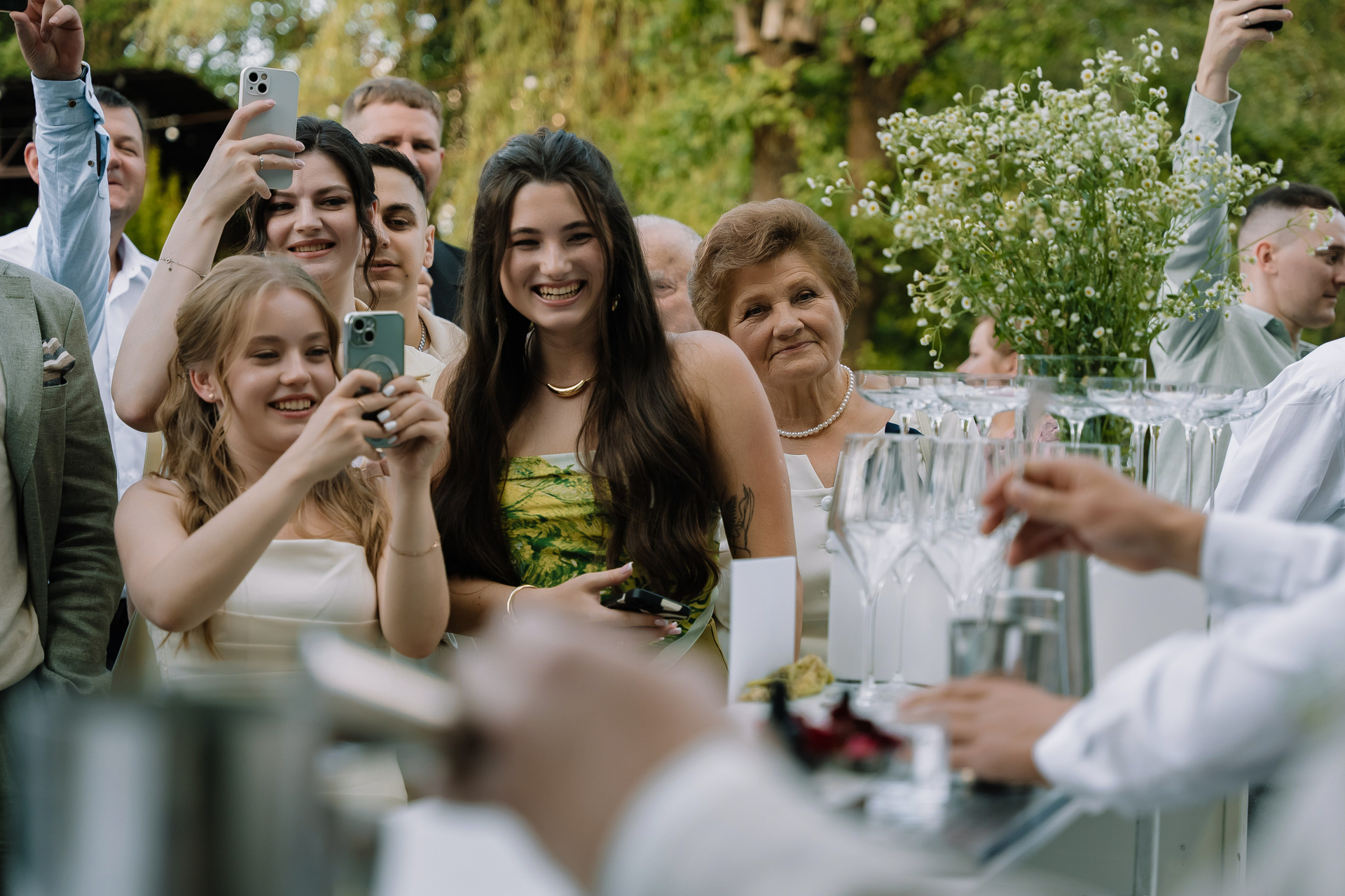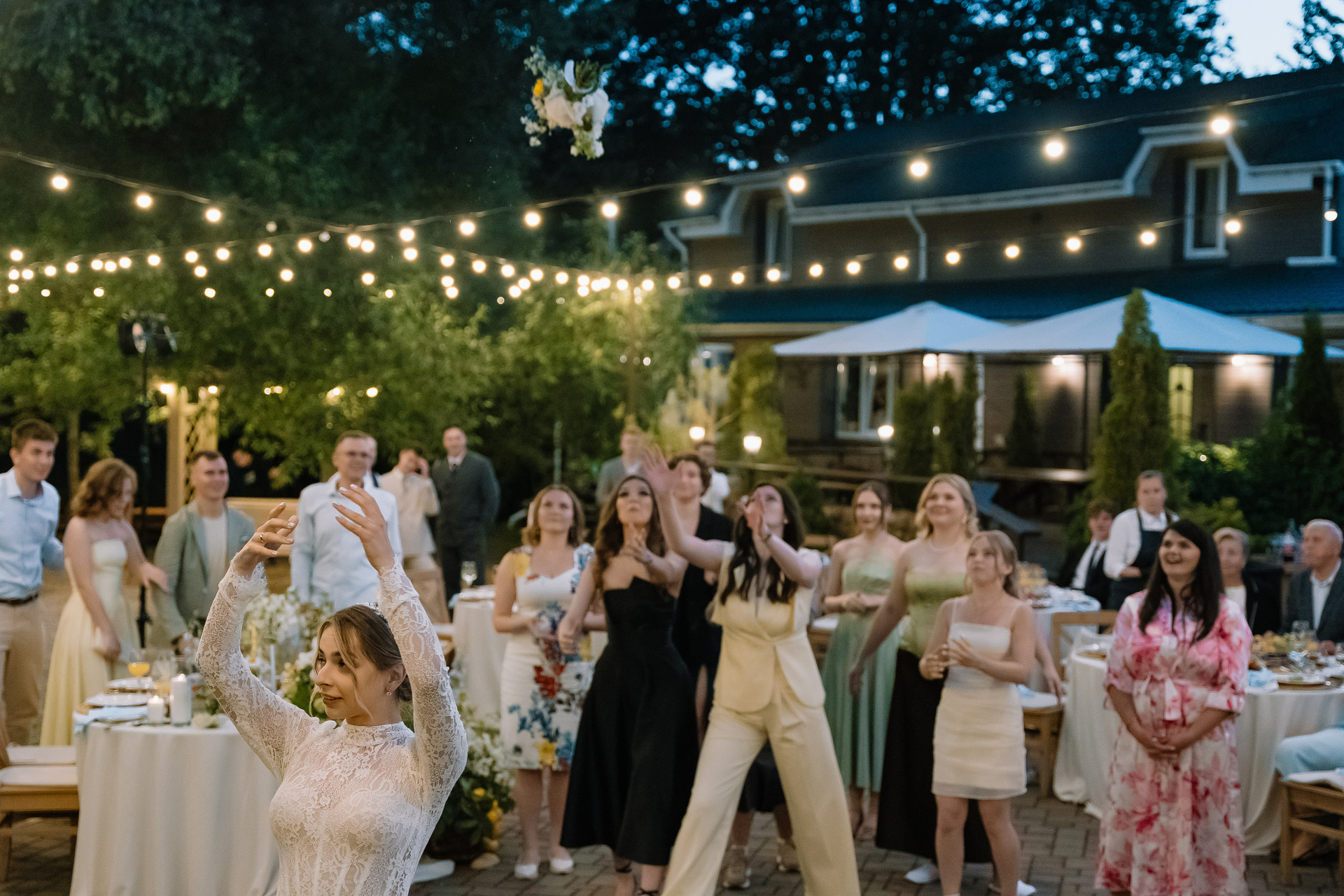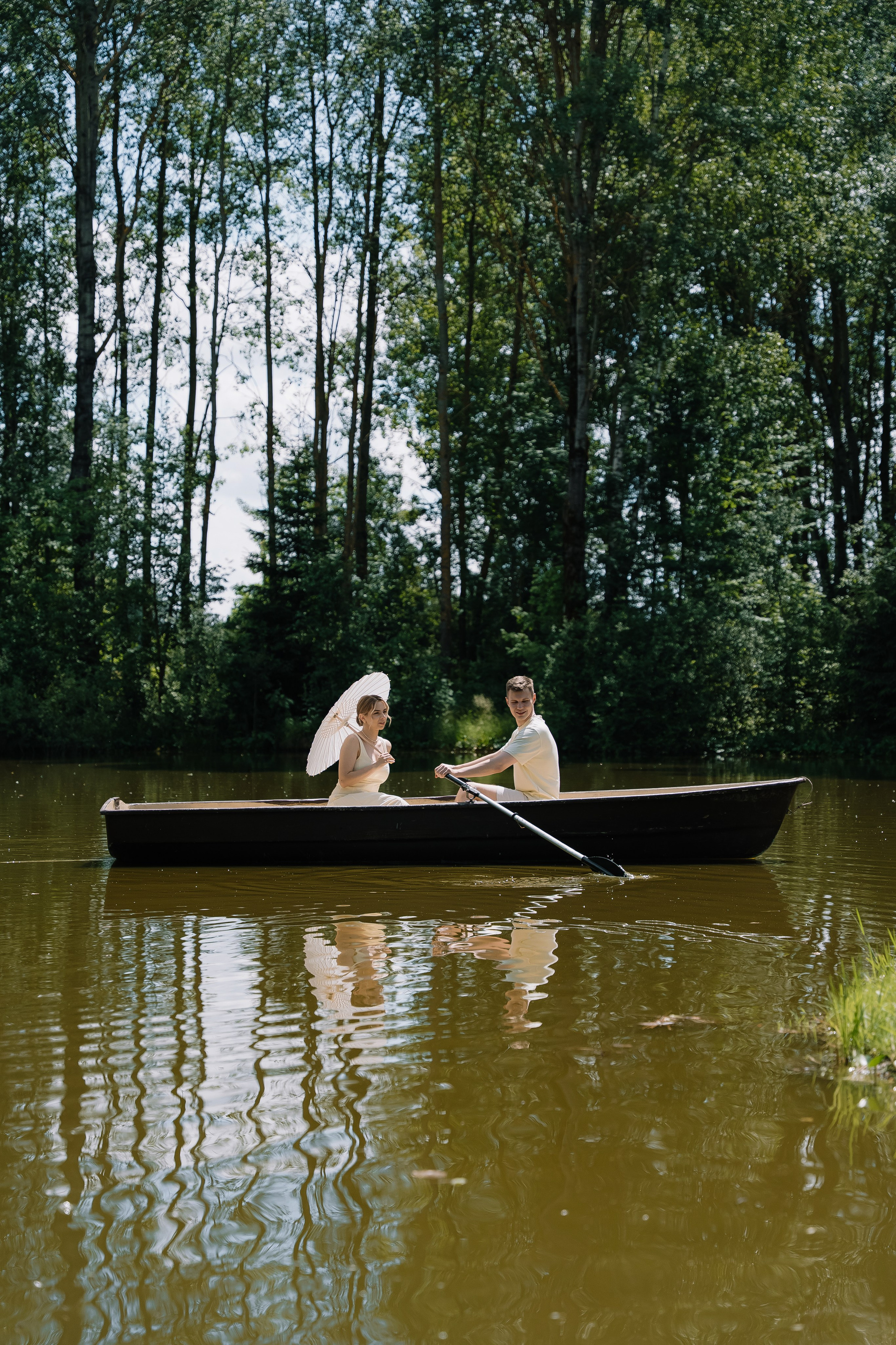 Свадьба под открытым небом в середине июля — это всегда одновременно романтично и рискованно. Перед торжеством пара переживали за погоду: неоднократно обсуждали сценарии на случай дождя или сильной жары. Однако, всё сложилось идеально.