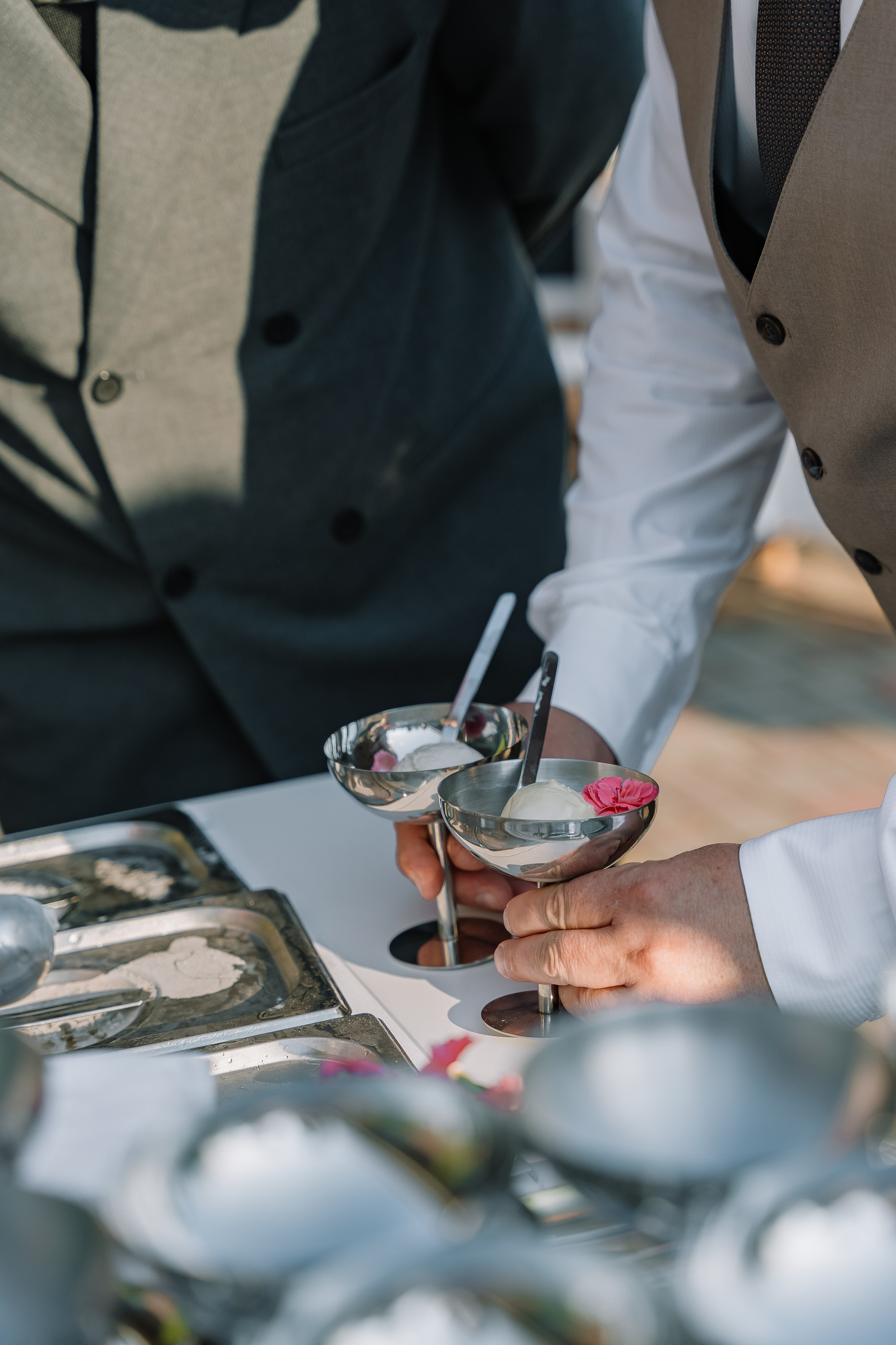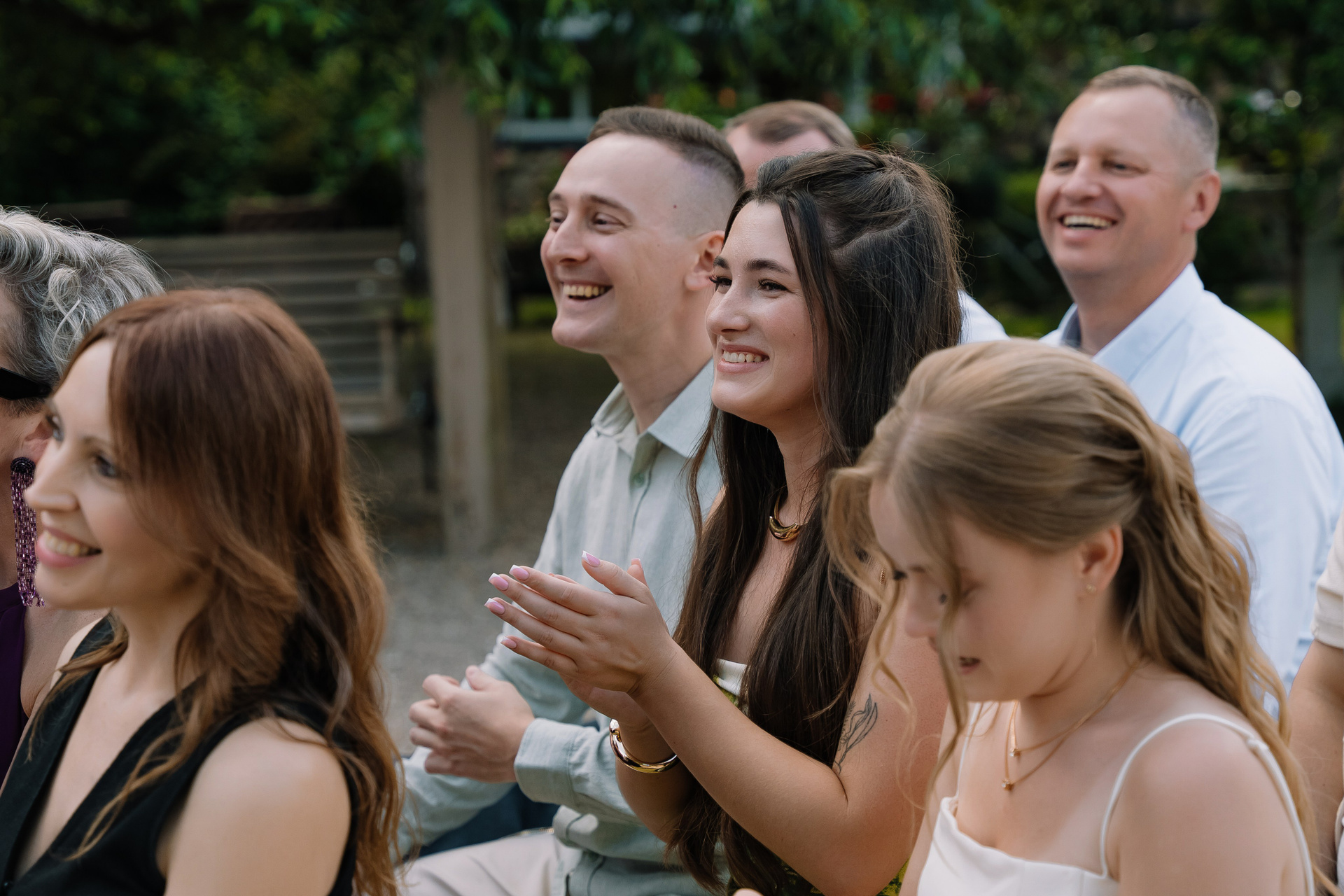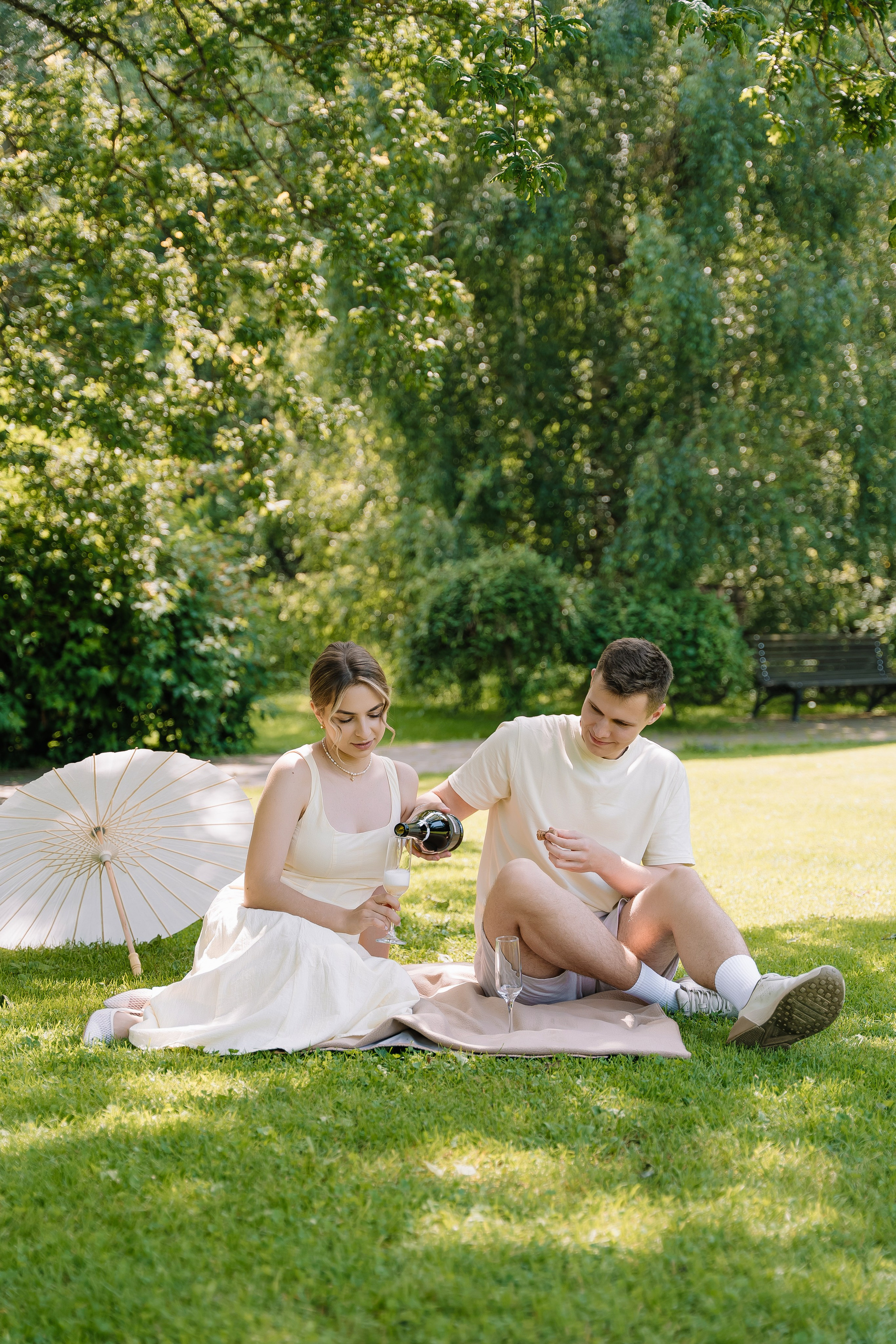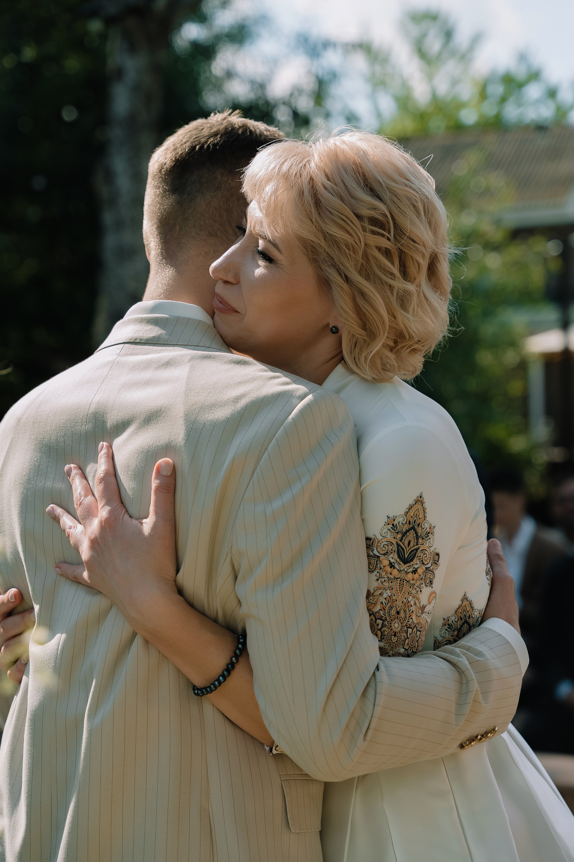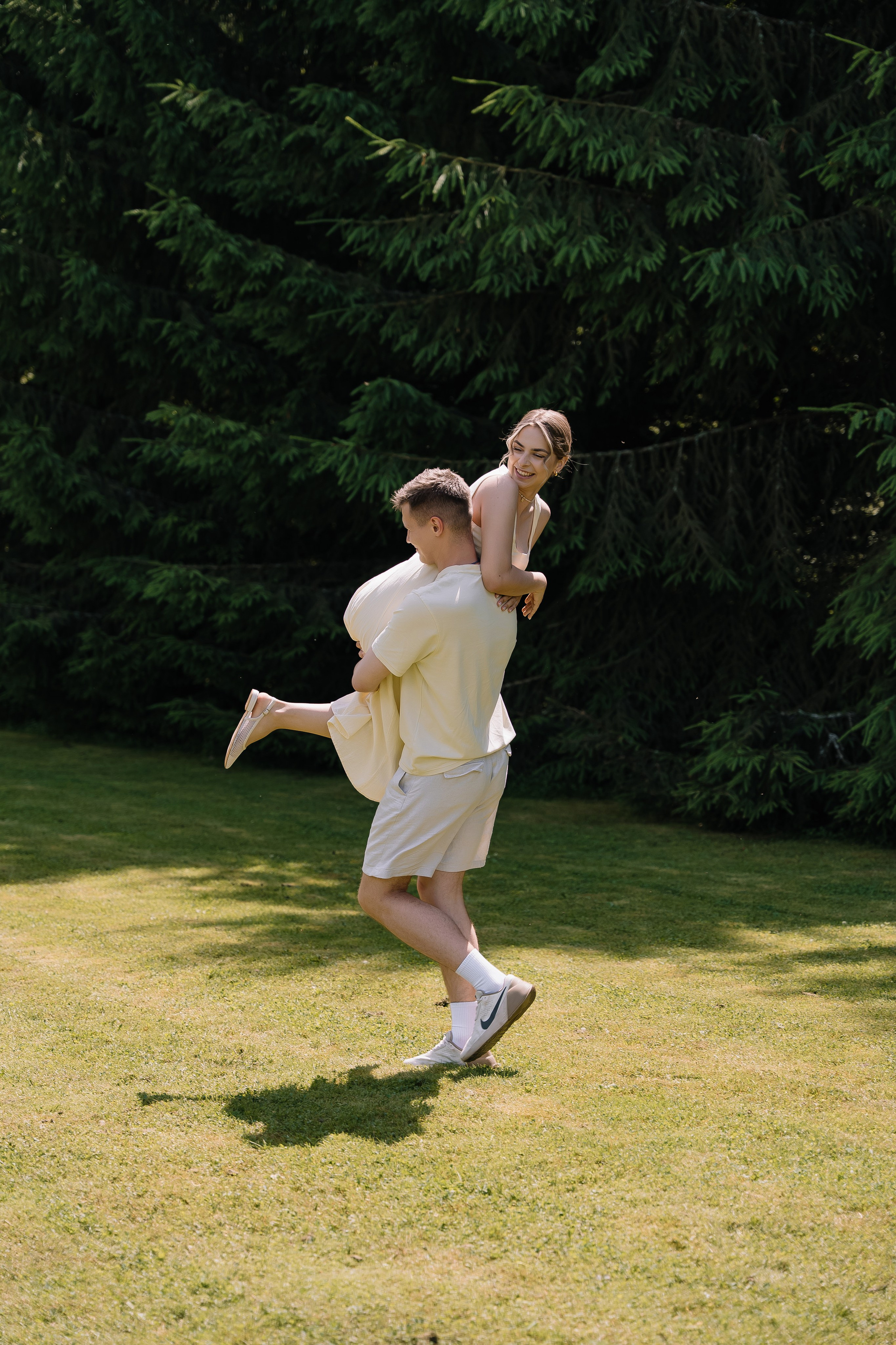 Свадьба под открытым небом в середине июля — это всегда одновременно романтично и рискованно. Перед торжеством пара переживали за погоду: неоднократно обсуждали сценарии на случай дождя или сильной жары. Однако, всё сложилось идеально.